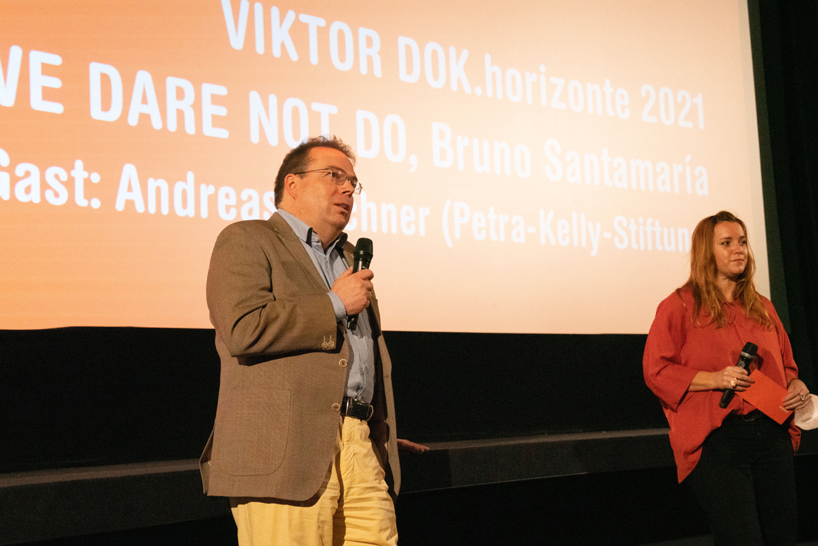 • Andreas Buchner (Petra-Kelly Stiftung) und Adele Kohout (stv. Festivalleitung) bei THINGS WE DARE NOT DO im Rio Filmpalast (c) DOK.fest München / Kathi Seemann