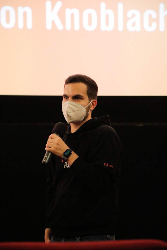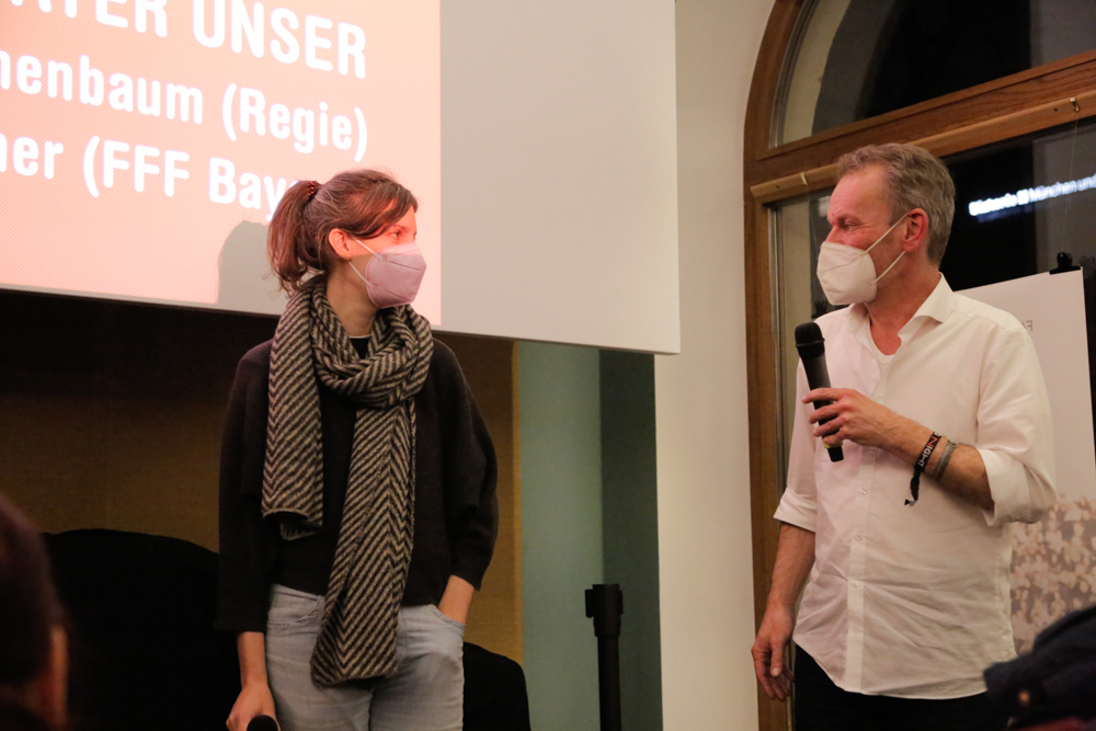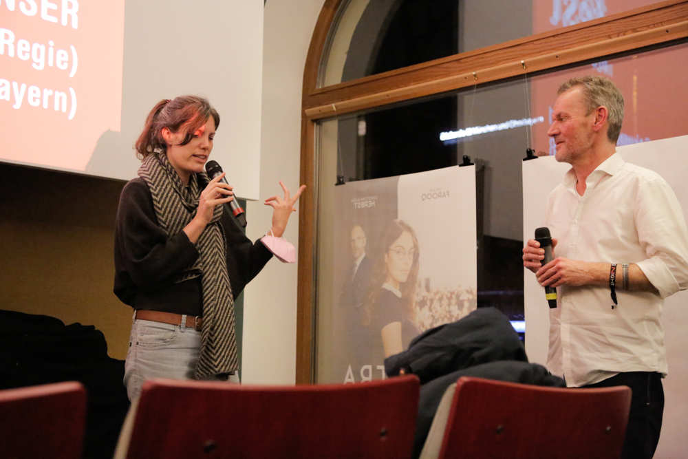• Regisseurin Sophie Linnenbaum und Moderator Jan Sebening (Leitung Student Award) bei VÄTER UNSER im Neuen Maxim (c) DOK.fest München / Alexandra Müller