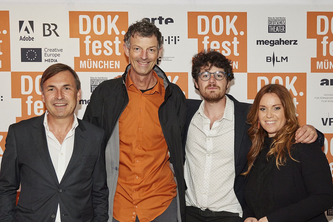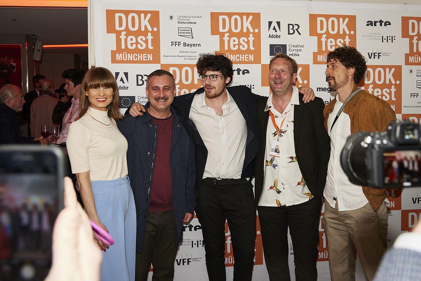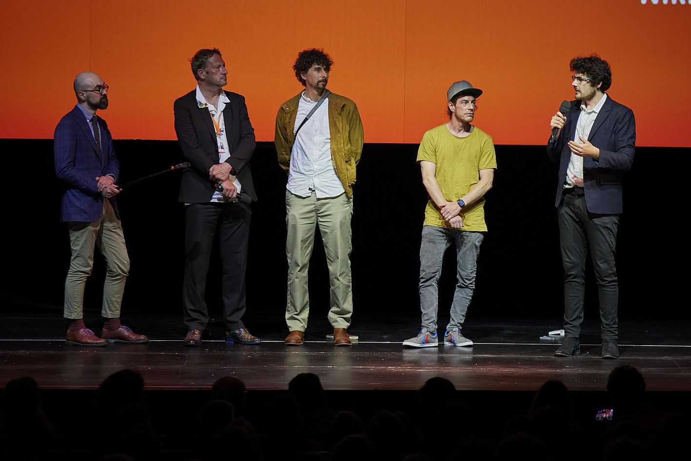 Eröffnung DOK.fest München 2022, Regisseur Daniel Roher mit Kameramann Niki Waltl, Tonmeister Marcus Vetter und Team (c) DOK.fest München
