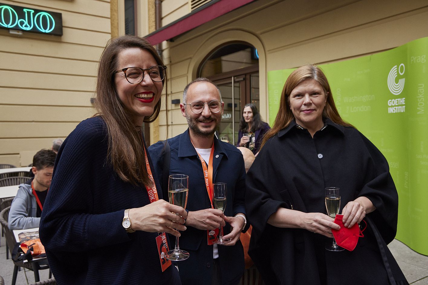Empfang des Goethe-Instituts, Ameer Masoud (Jury), Eva Lautenschlager (Goethe-Institut, Jury), Diana El Jeiroudi (Jury) (c) DOK.fest München