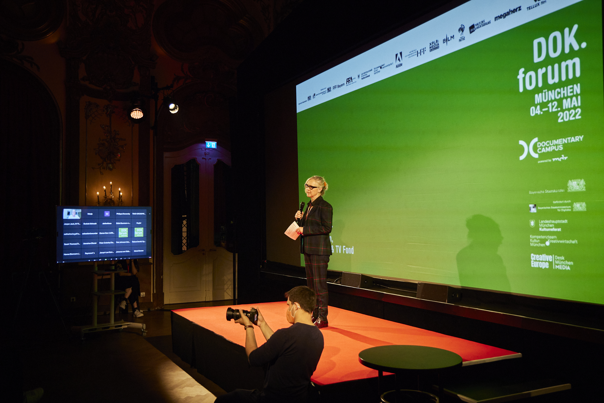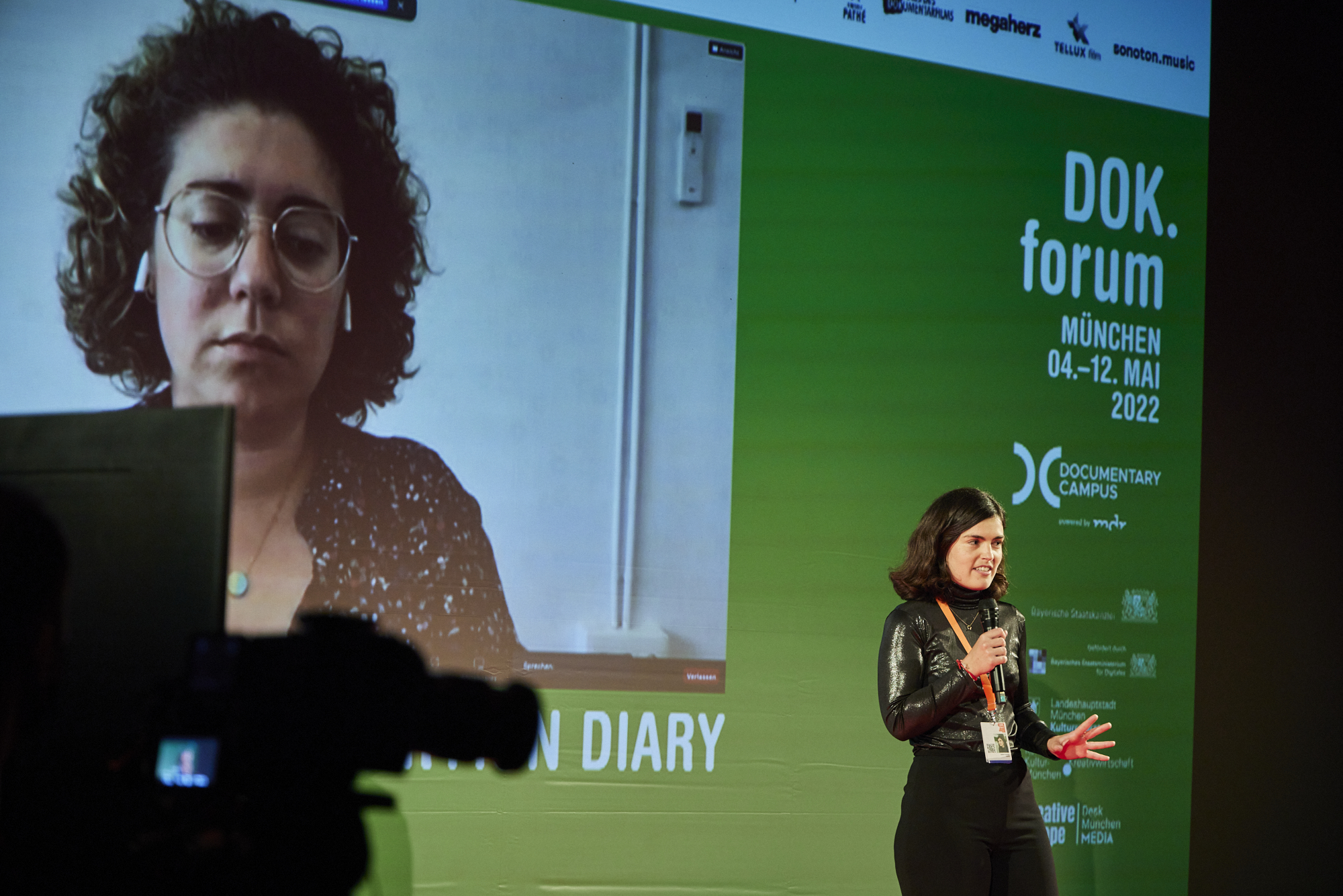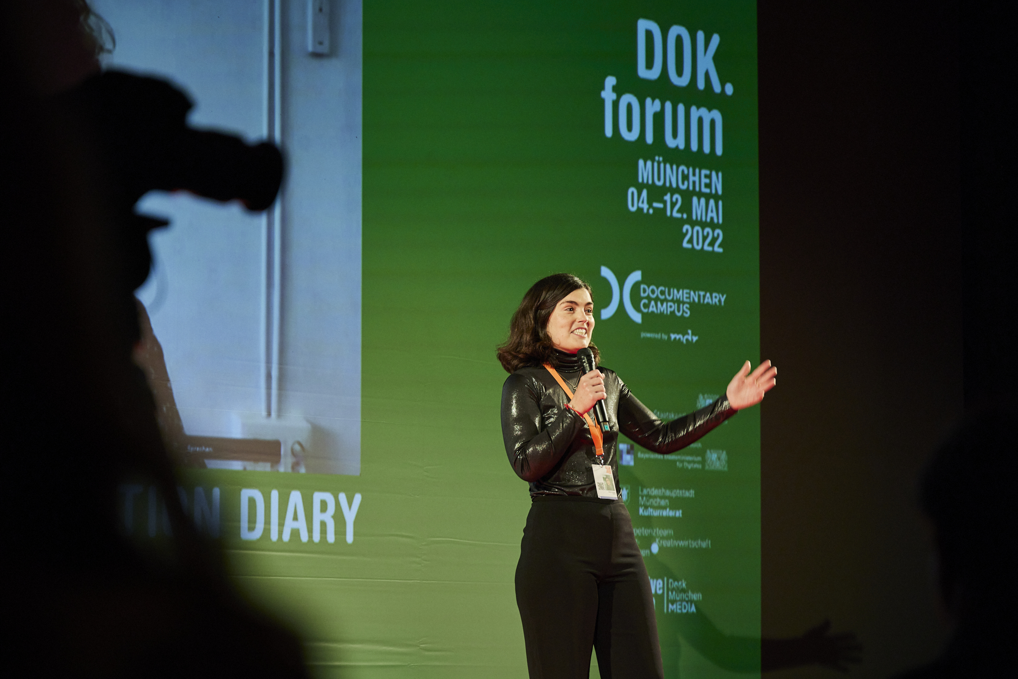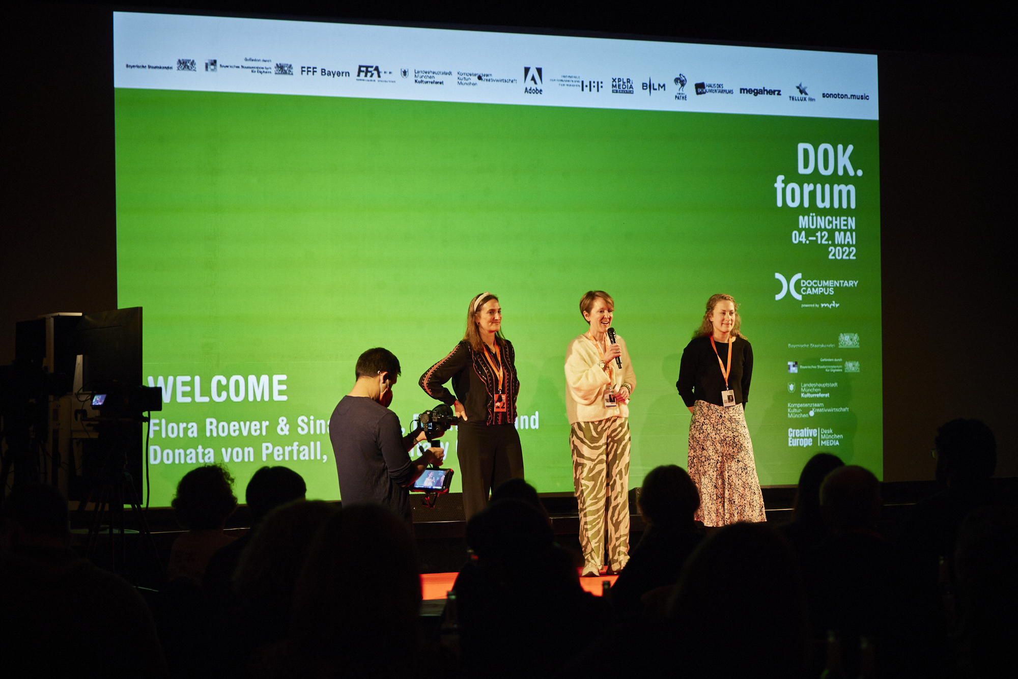 Marktplatz Master's Pitch, Flora Roever (DOK.forum Marktplatz), Donata von Perfall (Documentary Campus), Sina Weber (DOK.forum Marktplatz) (c) DOK.fest München