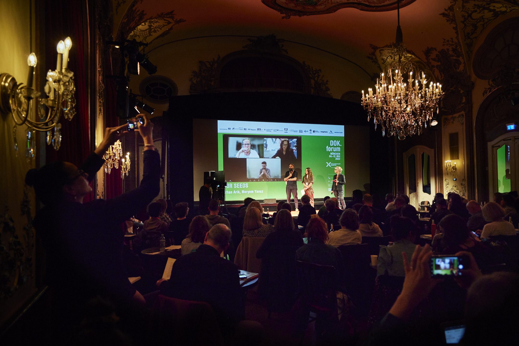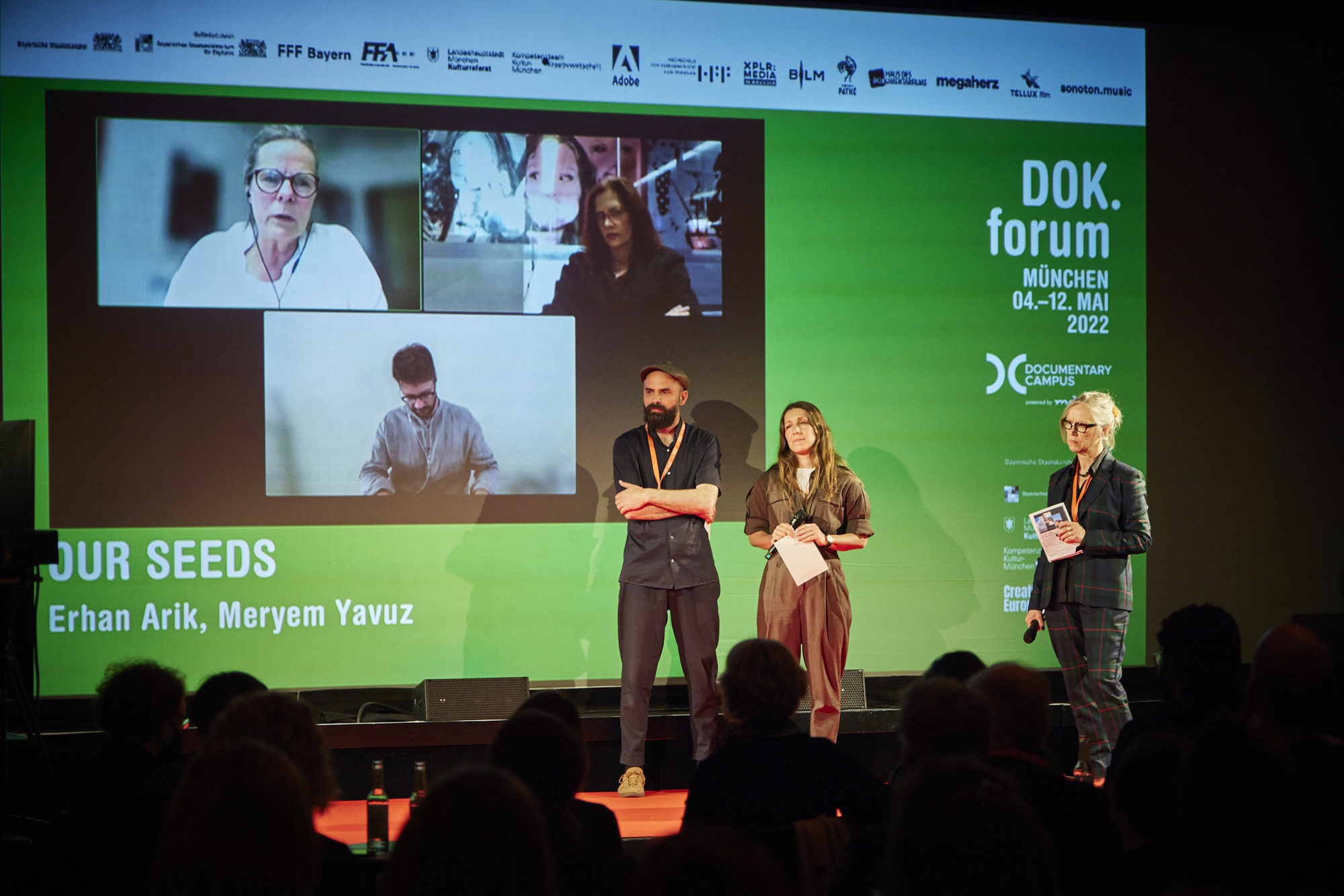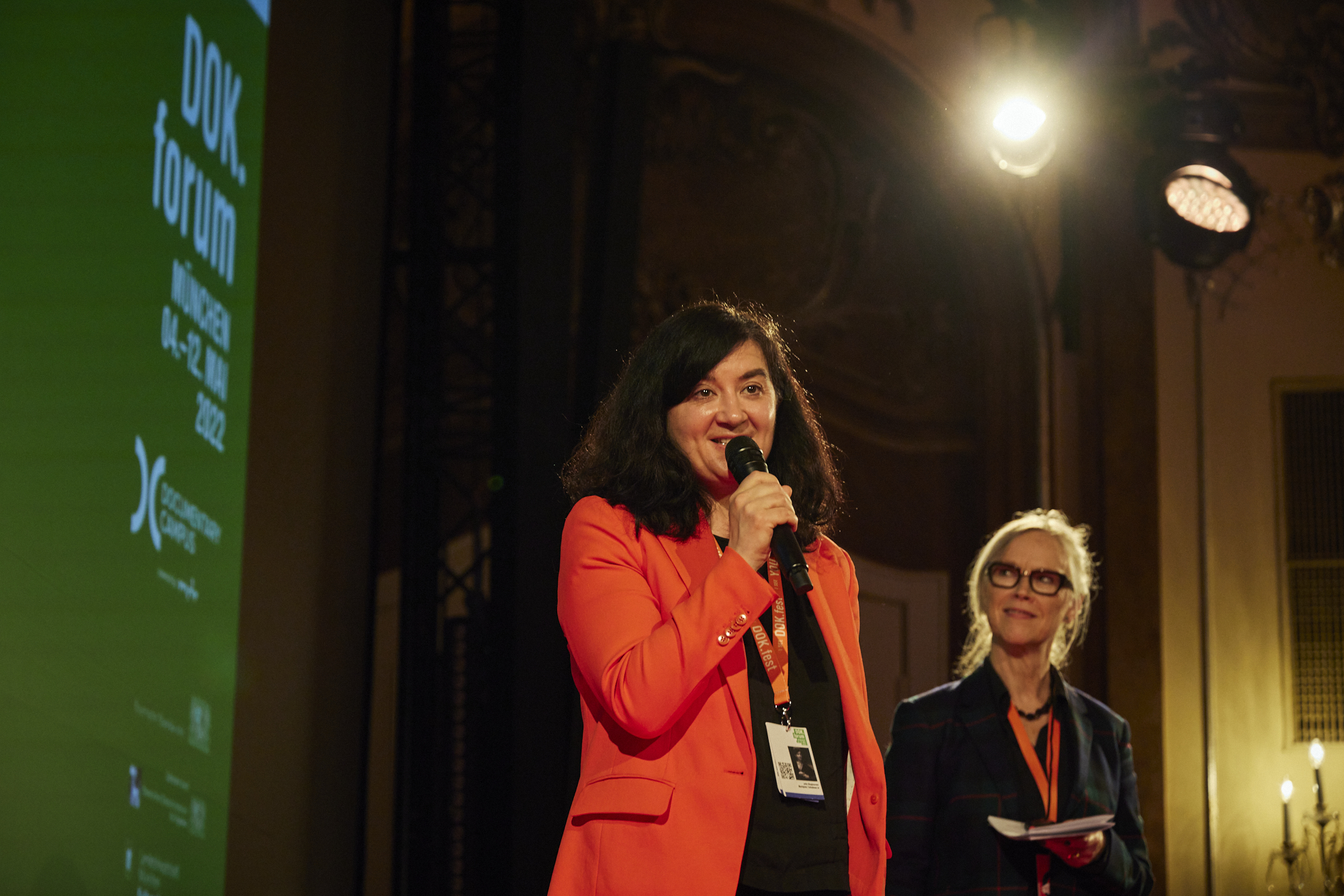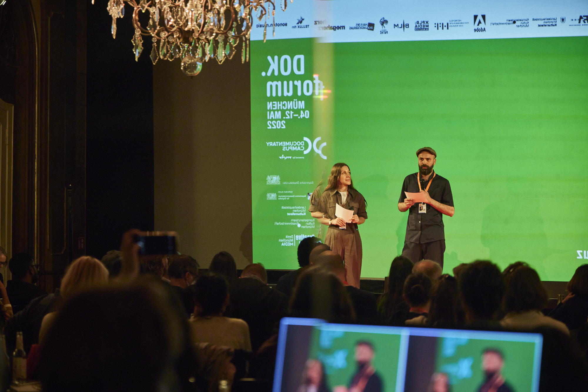 Marktplatz Master's Pitch, Flora Roever (DOK.forum Marktplatz), Donata von Perfall (Documentary Campus), Sina Weber (DOK.forum Marktplatz) (c) DOK.fest München