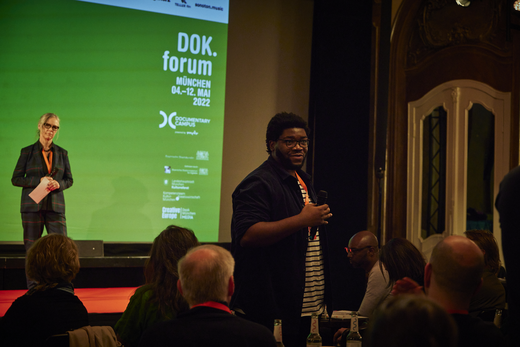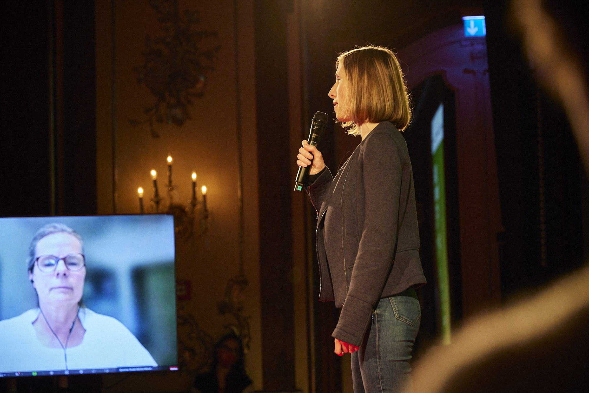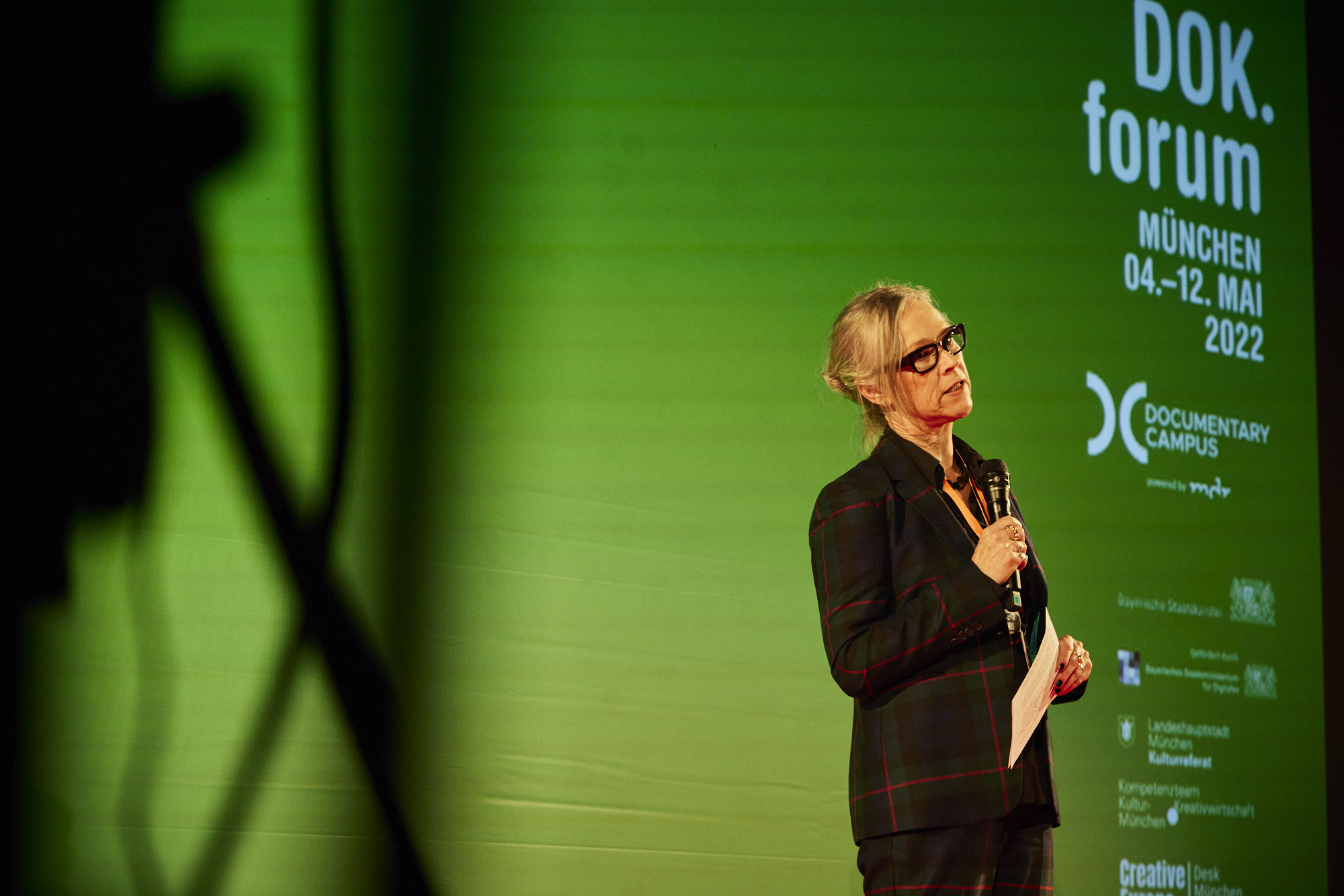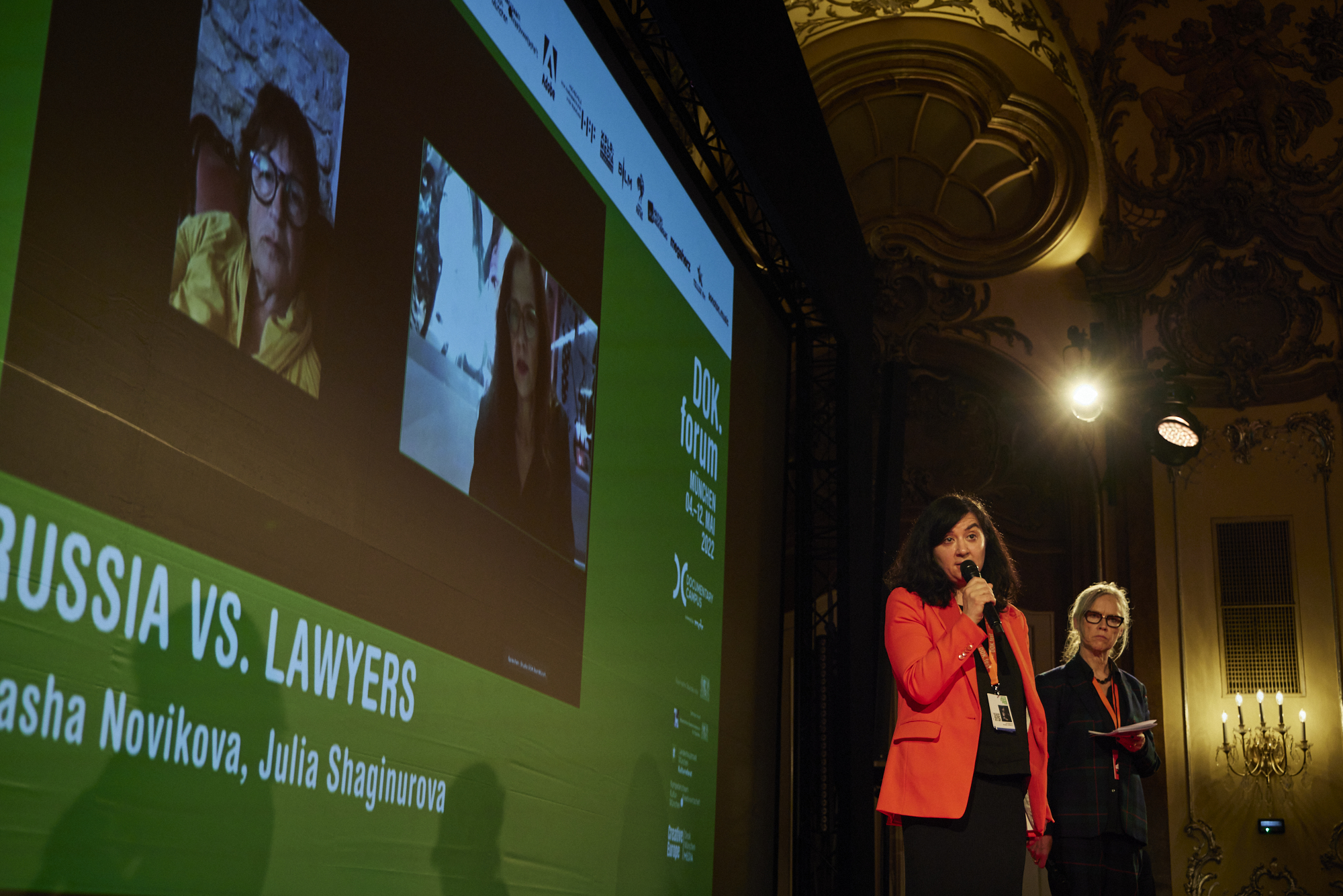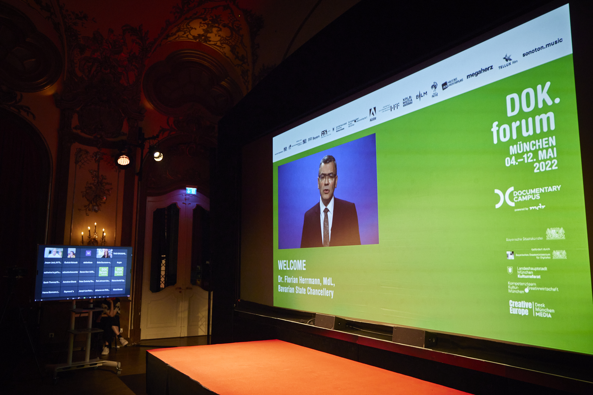 Marktplatz Master's Pitch, Flora Roever (DOK.forum Marktplatz), Donata von Perfall (Documentary Campus), Sina Weber (DOK.forum Marktplatz) (c) DOK.fest München