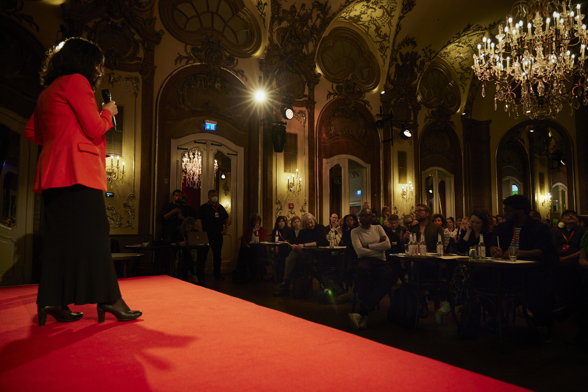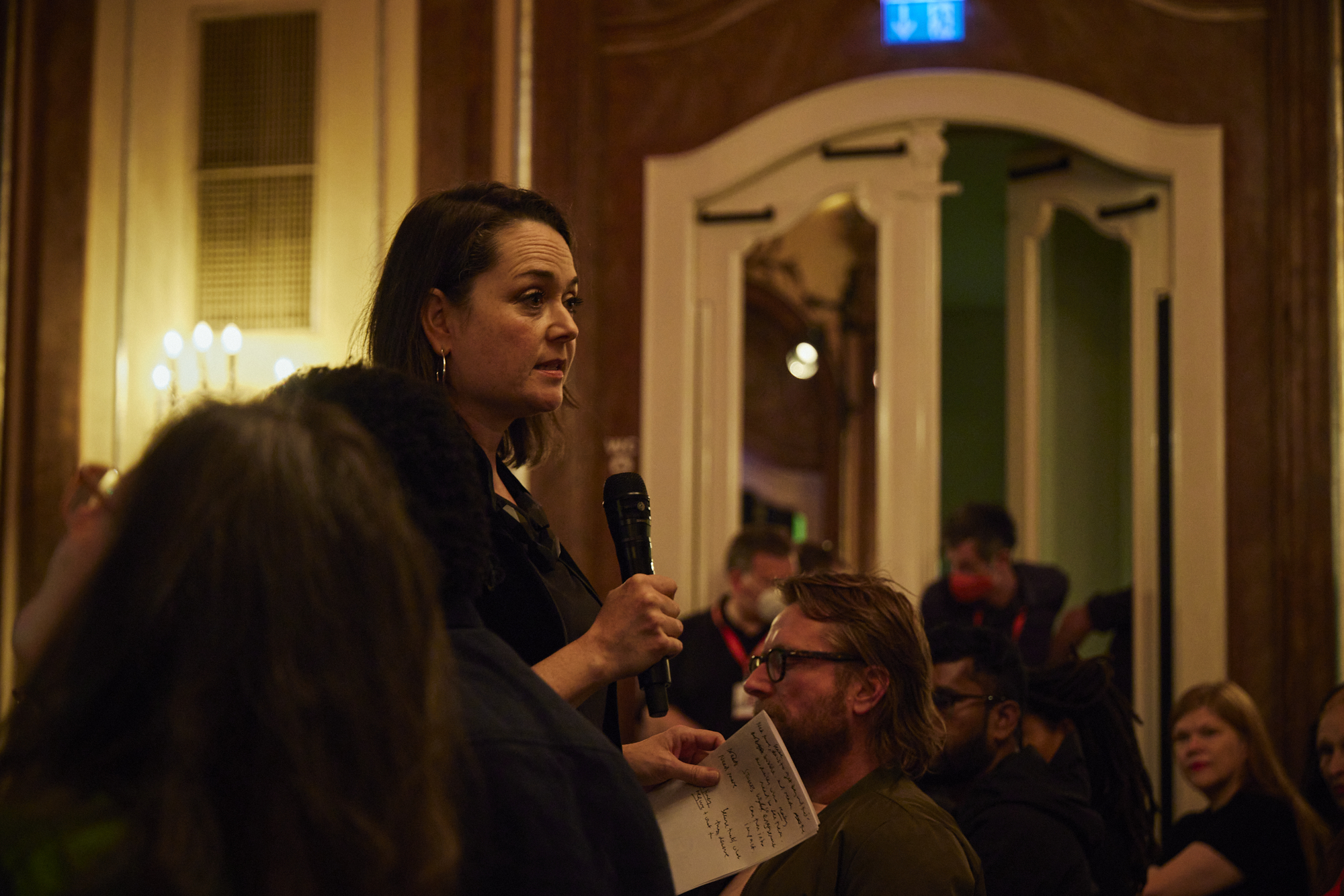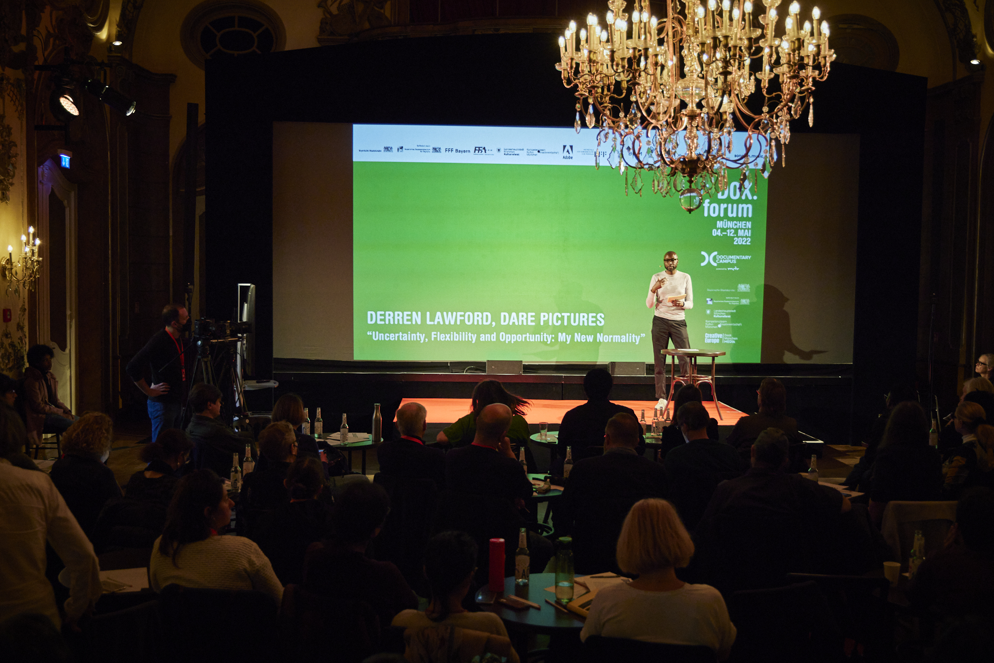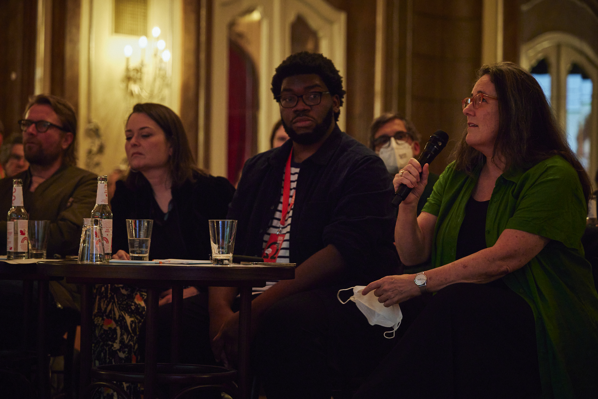 Marktplatz Master's Pitch, Flora Roever (DOK.forum Marktplatz), Donata von Perfall (Documentary Campus), Sina Weber (DOK.forum Marktplatz) (c) DOK.fest München