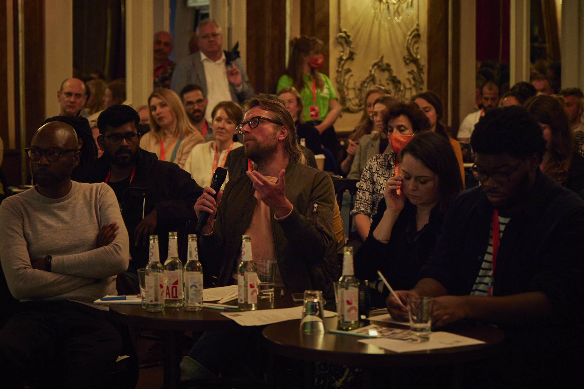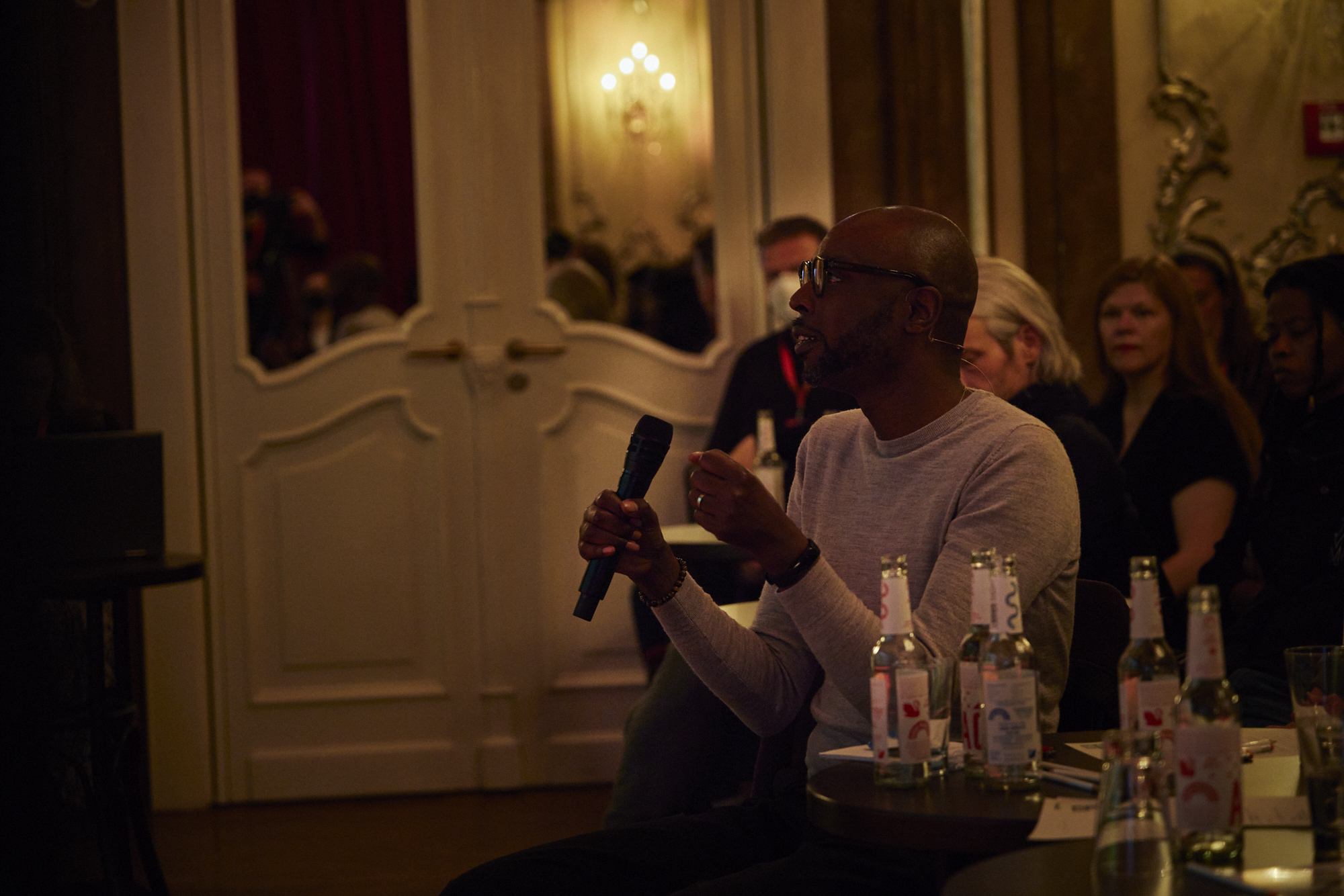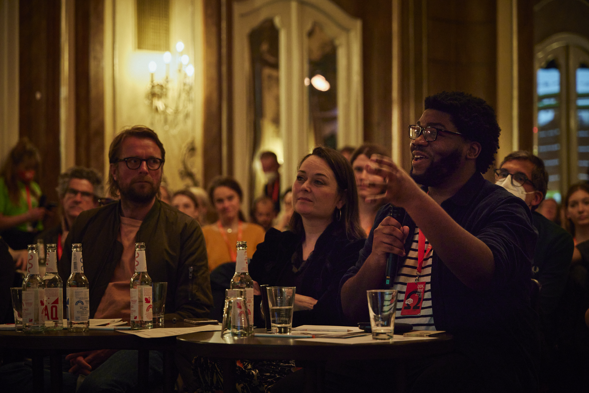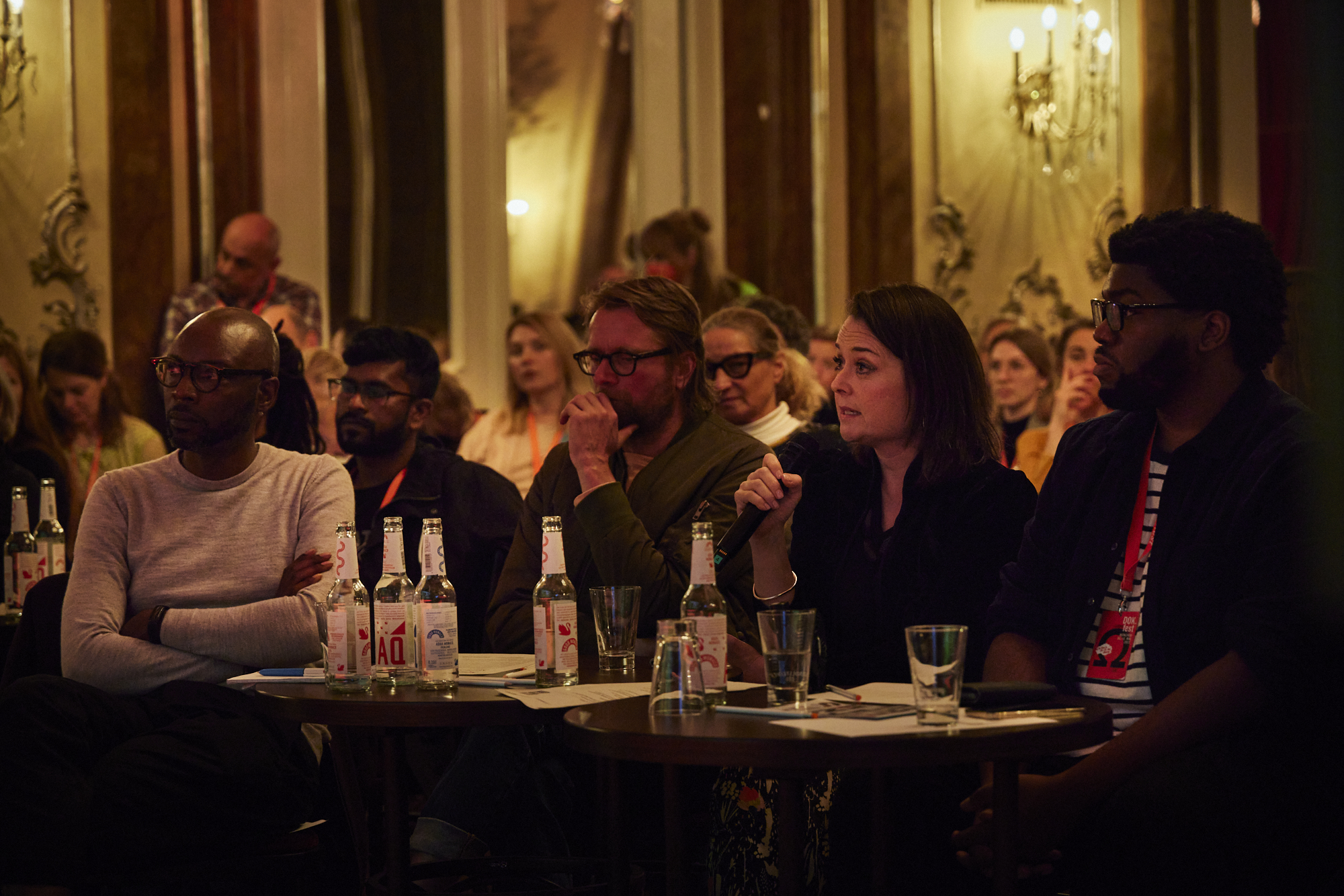 Marktplatz Master's Pitch, Flora Roever (DOK.forum Marktplatz), Donata von Perfall (Documentary Campus), Sina Weber (DOK.forum Marktplatz) (c) DOK.fest München