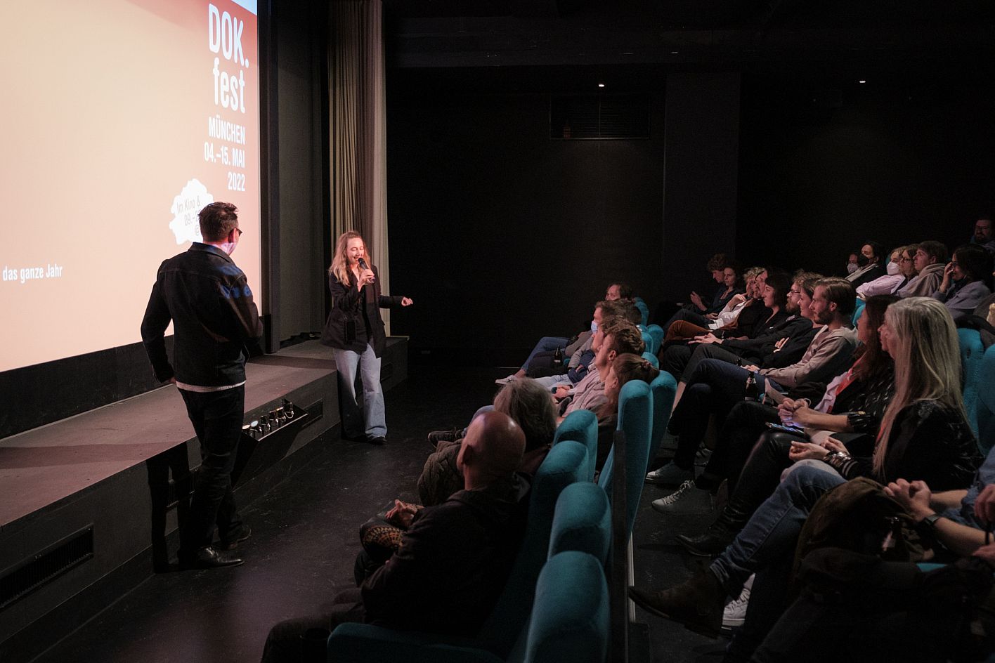 Deutschlandpremiere BLACK MAMBAS in den City Kinos, Sebastian Sorg (Moderator), Lena Karbe (Regie) (c) DOK.fest München