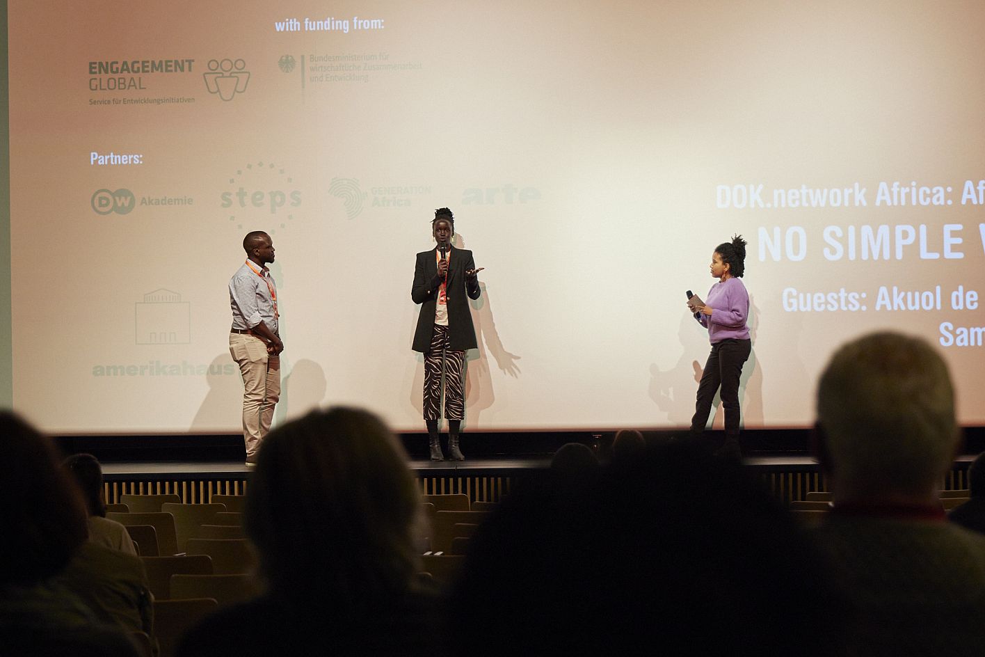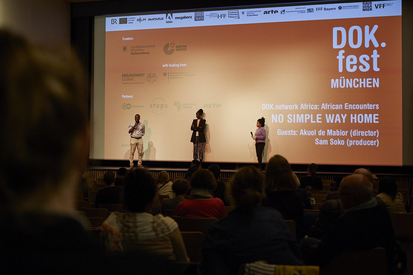 • Screening NO SIMPLE WAY HOME, Sam Soko (Produzent), Akuol de Mabior (Regie), Seggen Mikael (Moderatorin) (c) DOK.fest München