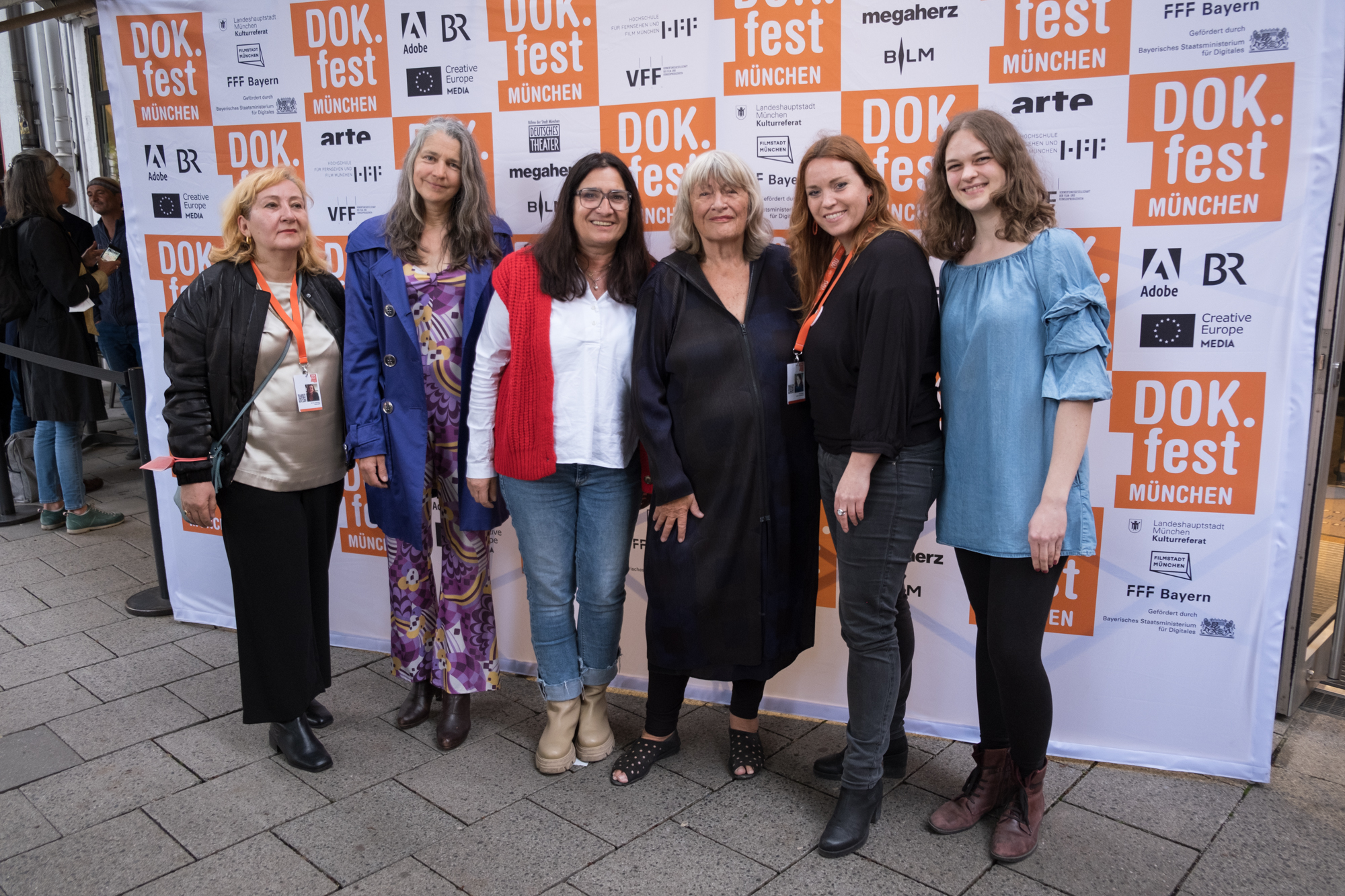 • Internationale Premiere ALICE SCHWARZER, Sabine Derflinger (Regie, 3.v.l.), Alice Schwarzer (Protagonistin, 3.v.r.), Adele Kohout (DOK.fest München, 2.v.r.) & Filmteam (c) DOK.fest München