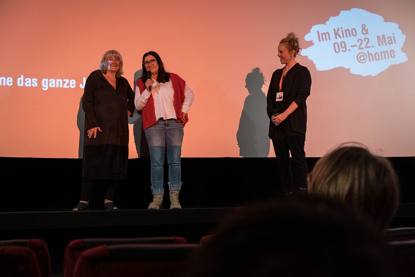 Internationale Premiere ALICE SCHWARZER, Alice Schwarzer (Protagonistin), Sabine Derflinger (Regie), Christina Wolf (Moderatorin) (c) DOK.fest München