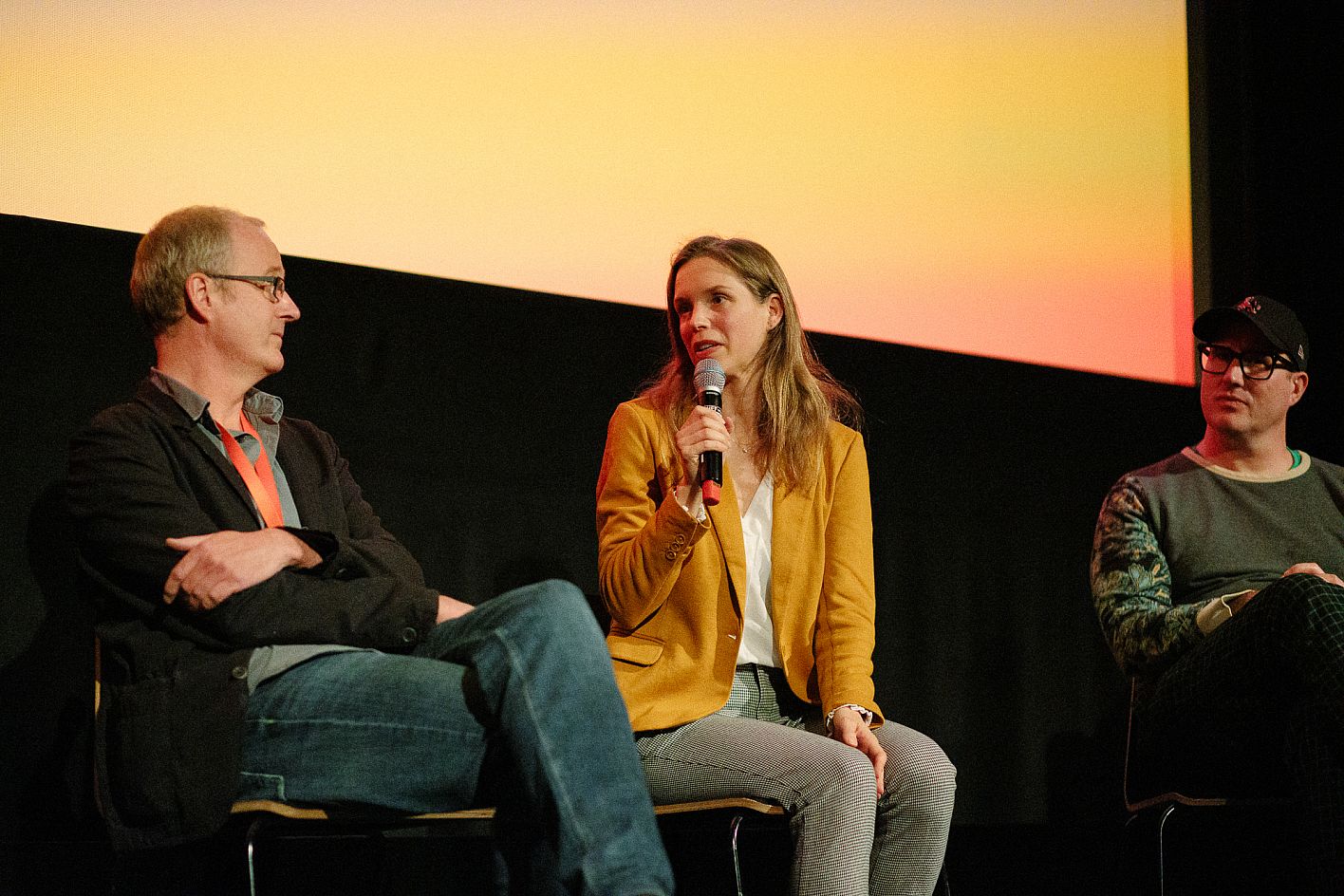Weltpremiere SOMMERFAHRT – ZEIT HEILT KEINE WUNDEN, Petra Morsbach (Autorin), Gereon Wetzel (Regie), Dr. Tinka Schubert (Moderatorin) (c) DOK.fest München