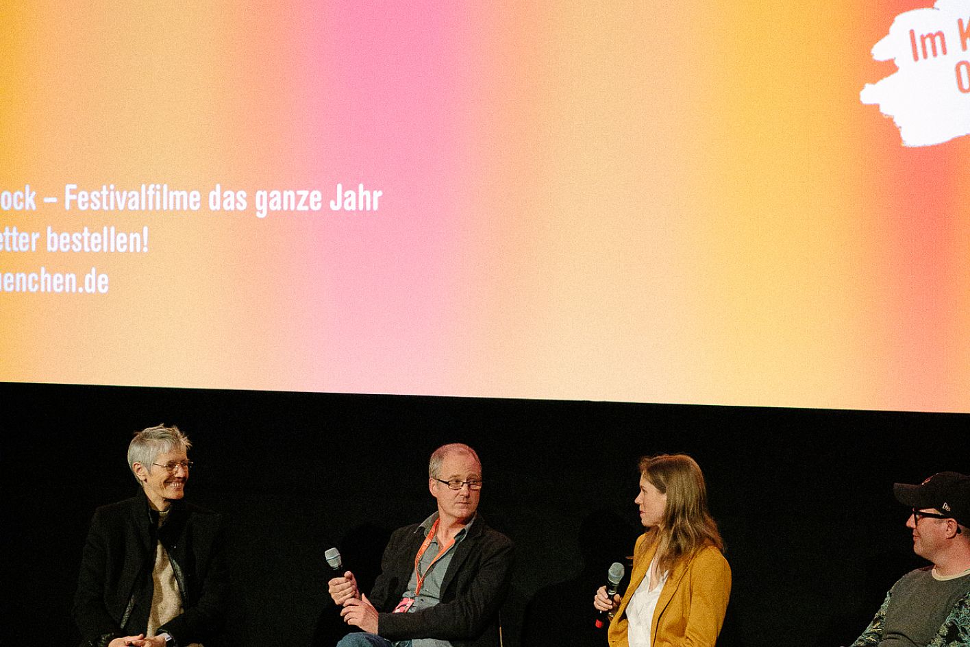Weltpremiere SOMMERFAHRT – ZEIT HEILT KEINE WUNDEN, Petra Morsbach (Autorin), Gereon Wetzel (Regie), Dr. Tinka Schubert (Moderatorin), Christian Brüser (Protagonist) (c) DOK.fest München