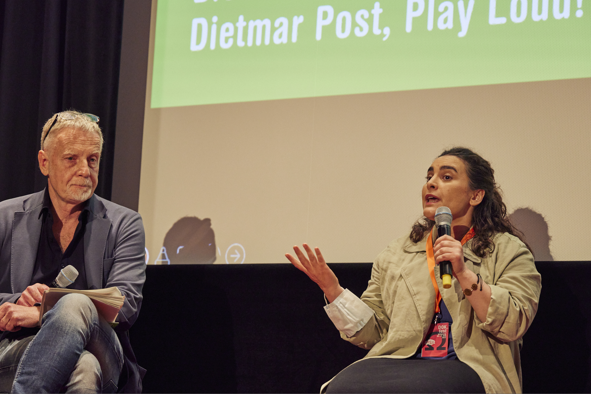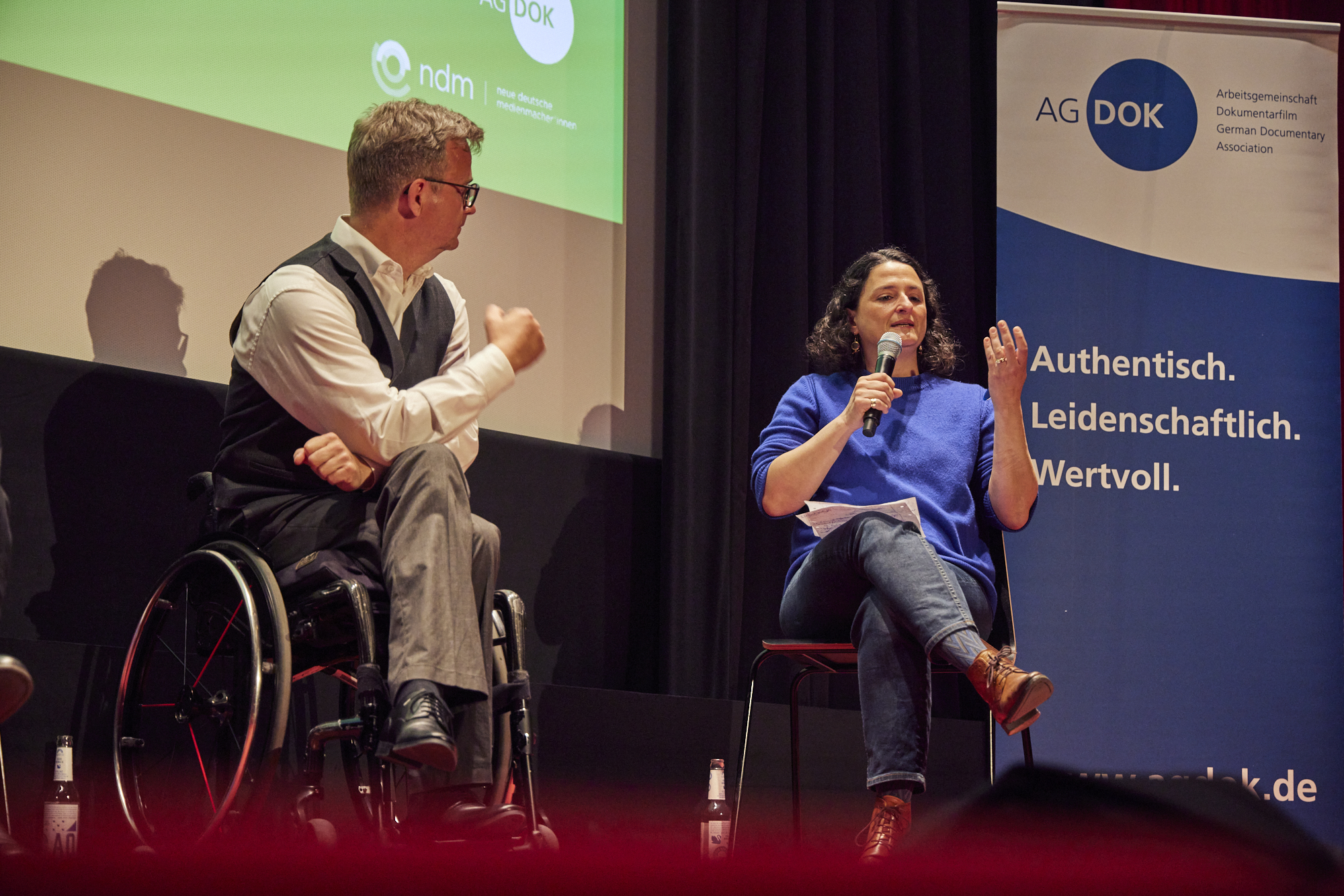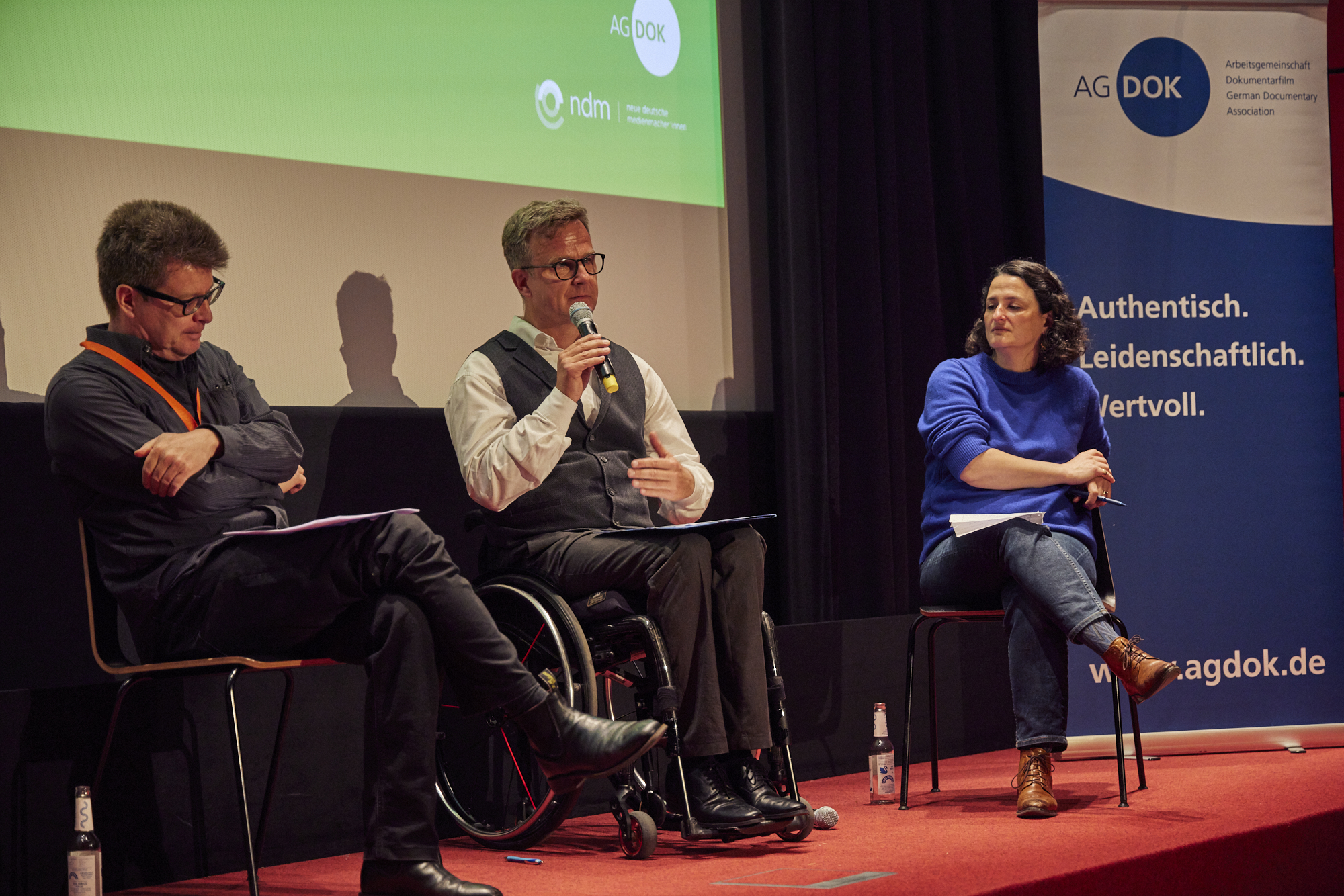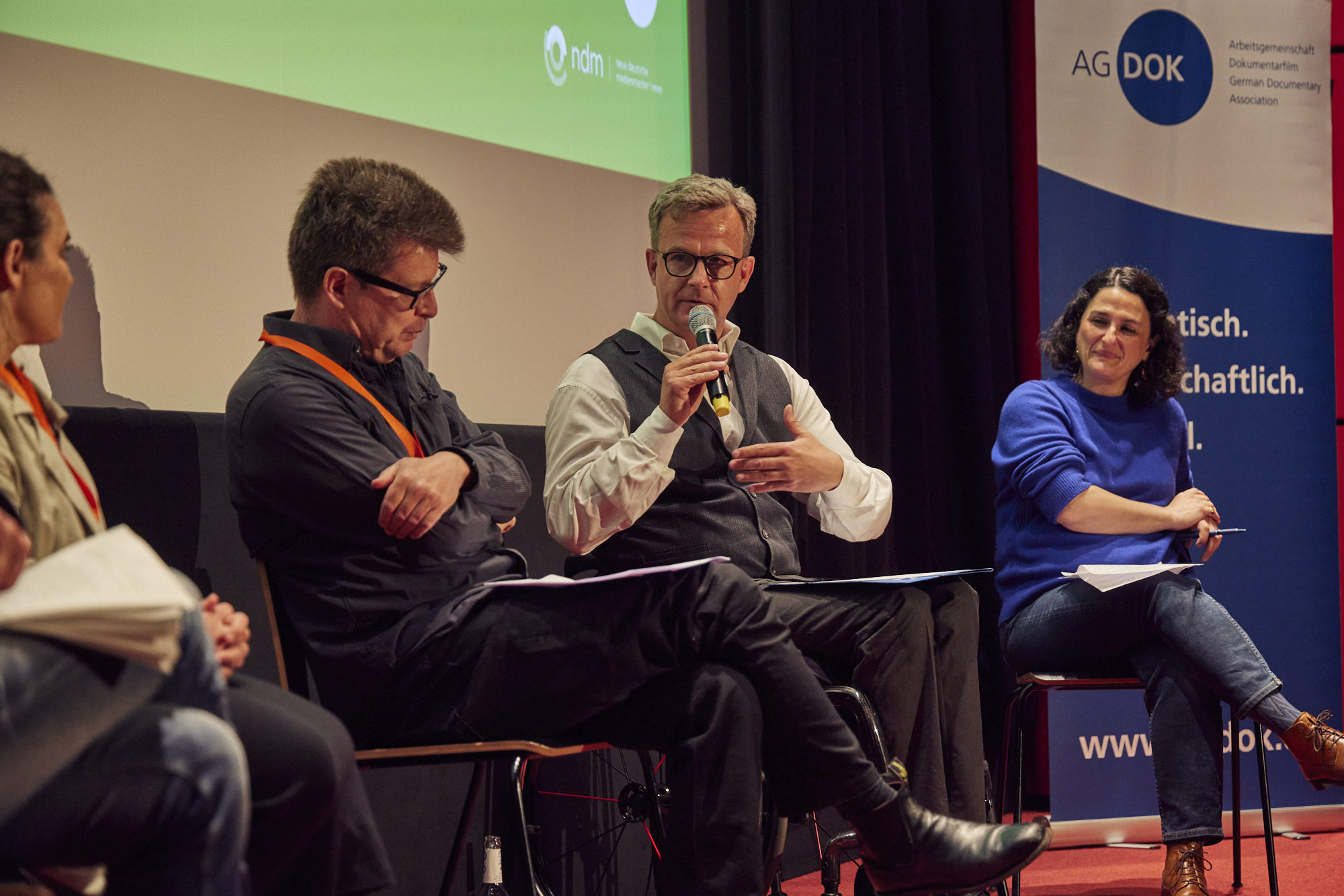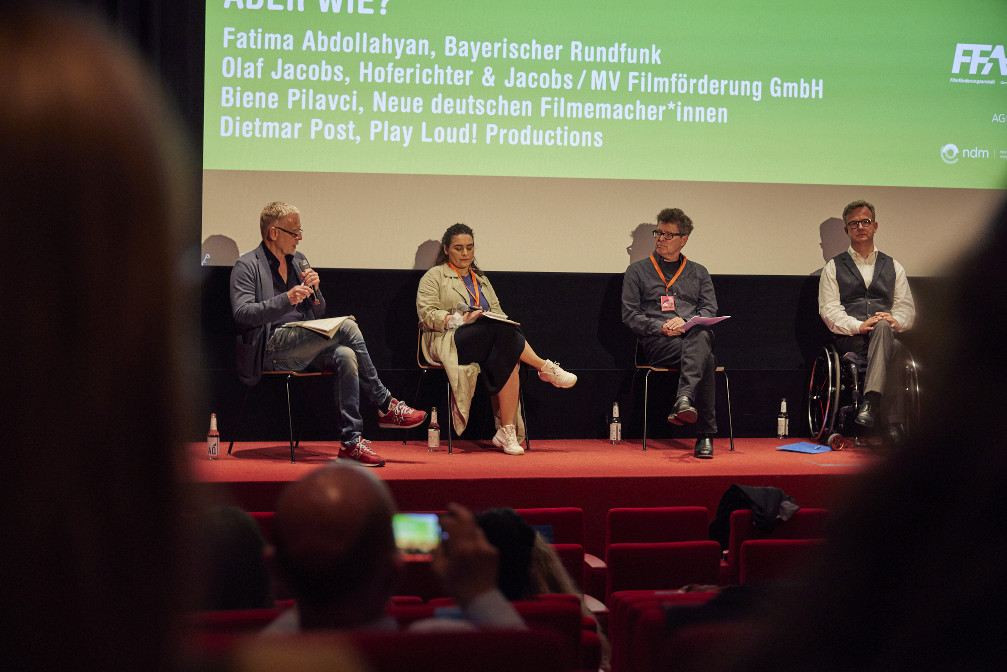 • Diversität im Dokumentarfilm! Aber wie?, Fatima Abdollahyan BR, Olaf Jacobs MV Filmförderung GmbH, Biene Pilavci Neue deutschen Medienmacher*innen, Dietmar Post Play Loud! Productions, Moderator Jochen Hick, (c) DOK.fest München.