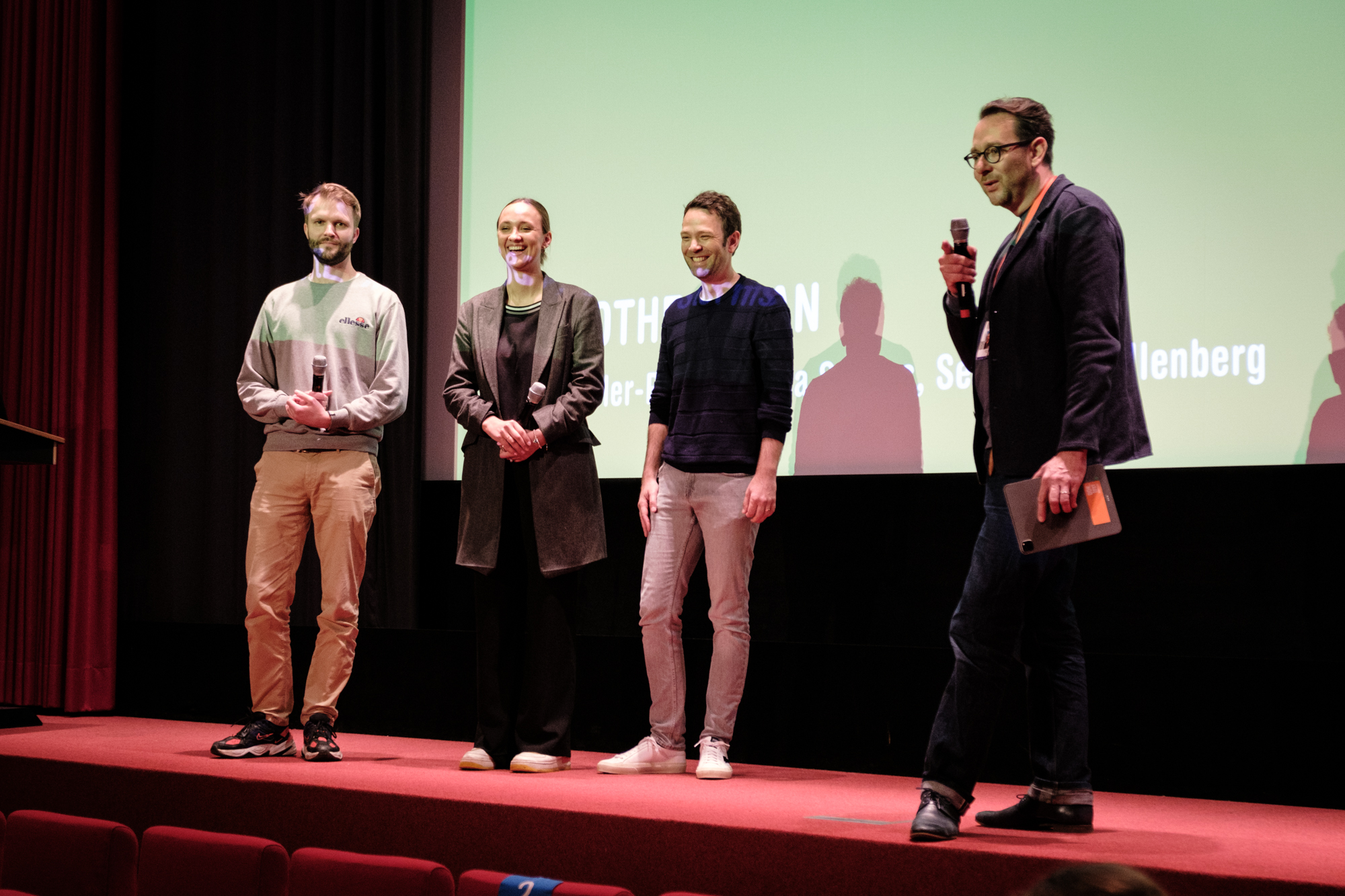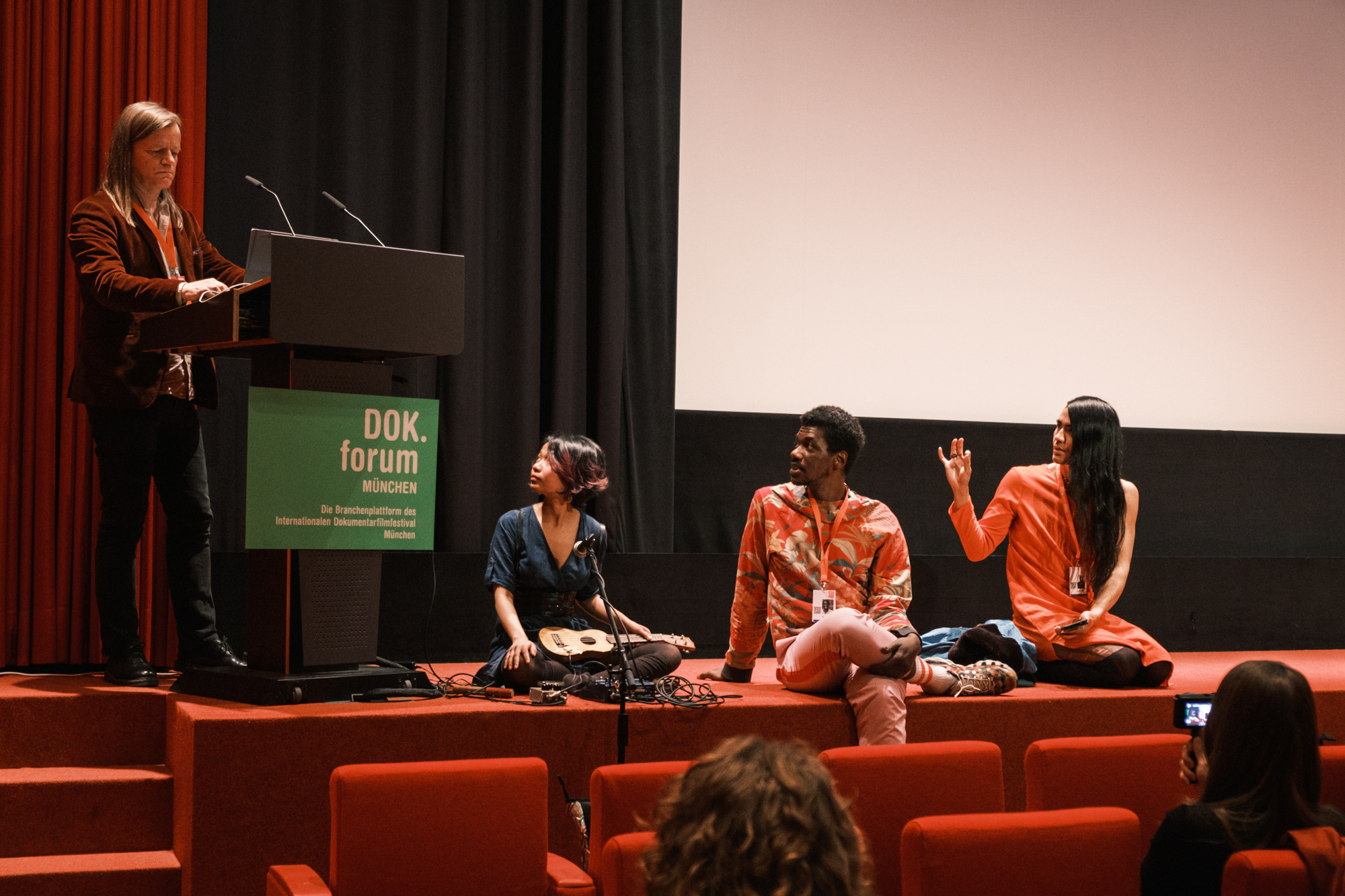 DOK.composition Award Pitchings, Moritz Müller-Preißer, Elsa Storms, Sebastian Fillenberg, Moderator Sebastian Sorg,(c) DOK.fest München.