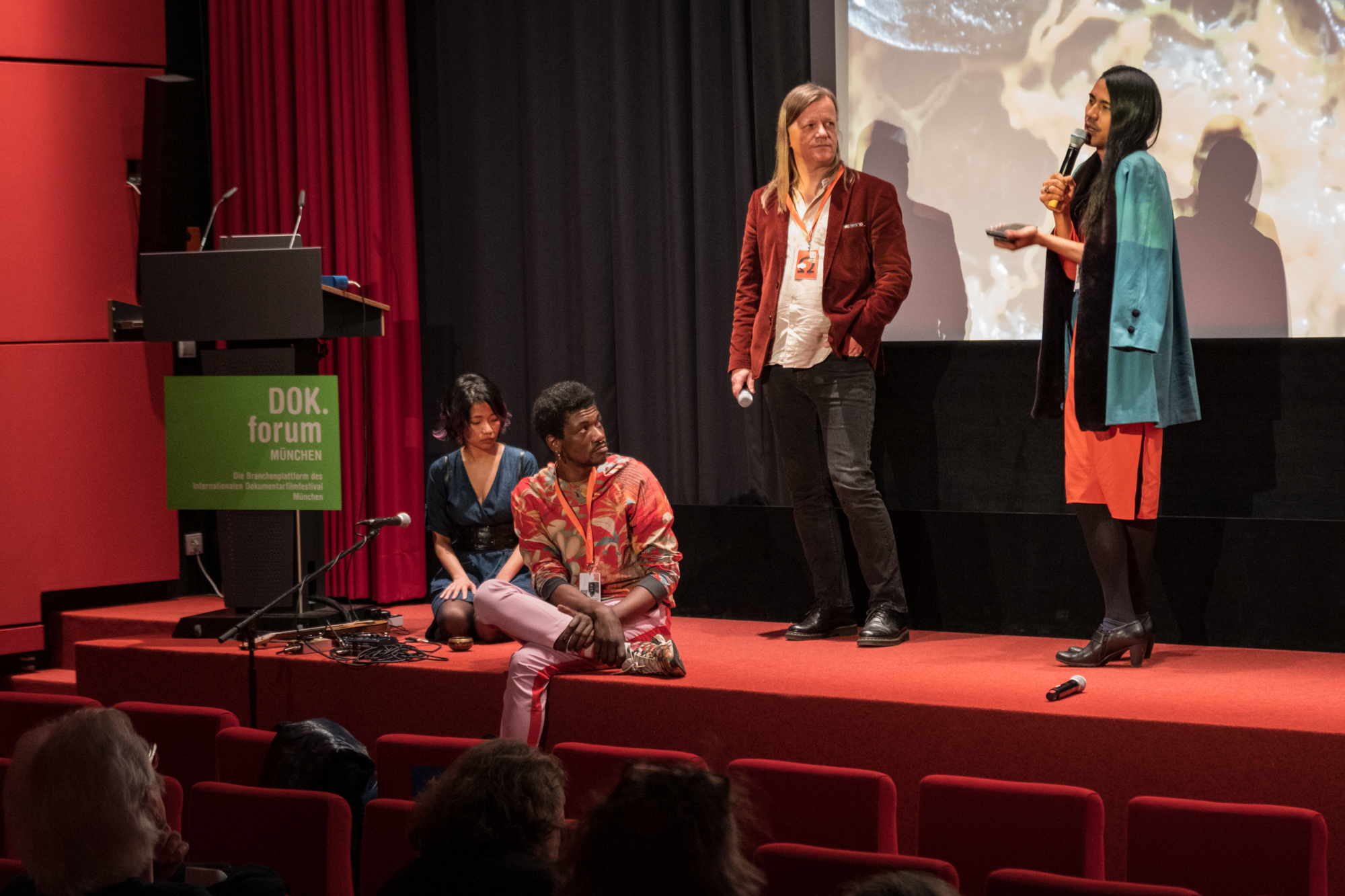 DOK.composition Award Pitchings, I DON'T WANT TO BE JUST A MEMORY Team, Sarnt Utamachote, Klaus Salminen, Kei Watanabe, Braulio Bandeira(c) DOK.fest München.