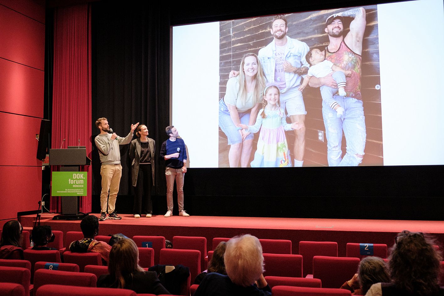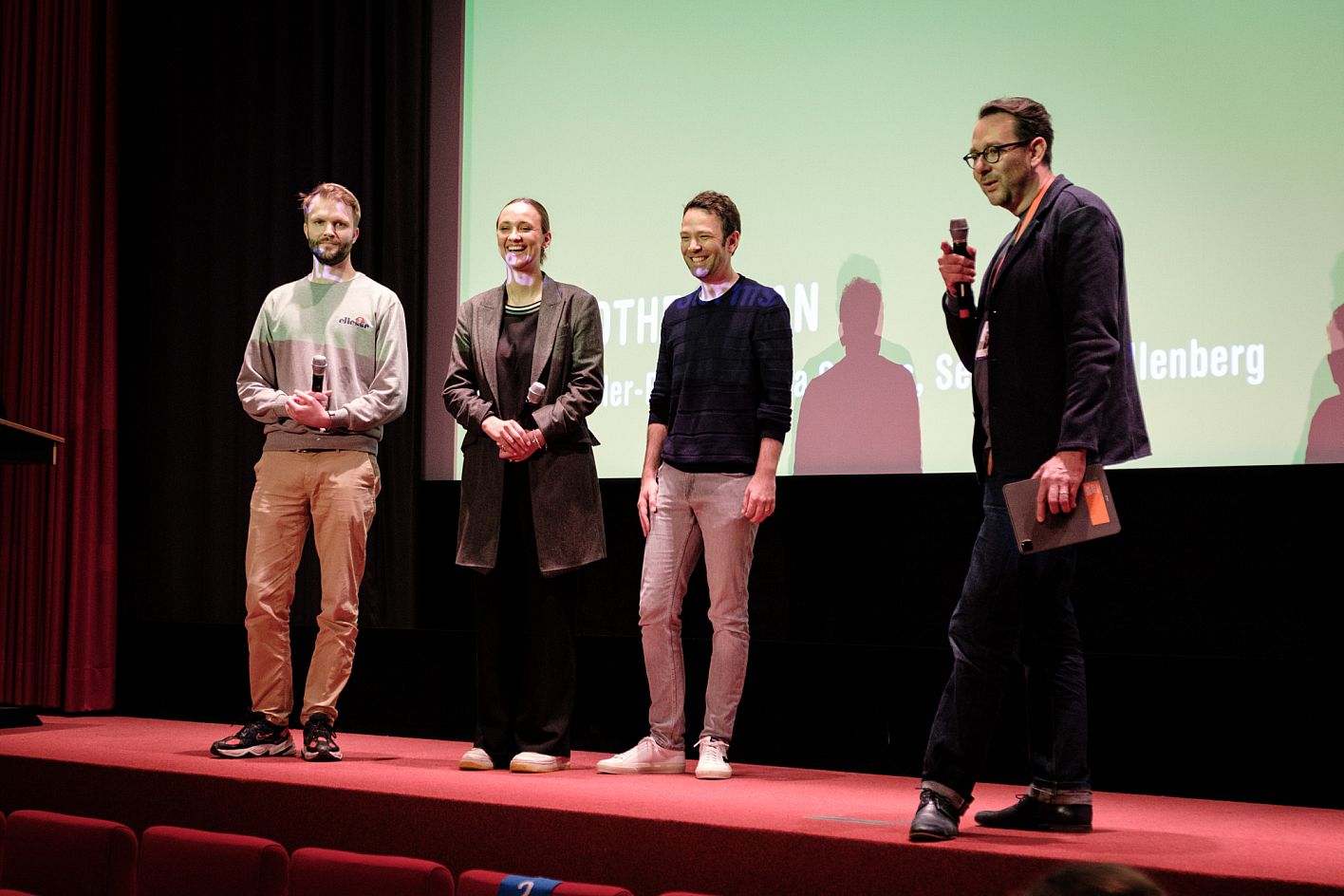 • DOK.composition Award Pitchings, Moritz Müller-Preißer, Elsa Storms, Sebastian Fillenberg, Moderator Sebastian Sorg,(c) DOK.fest München.