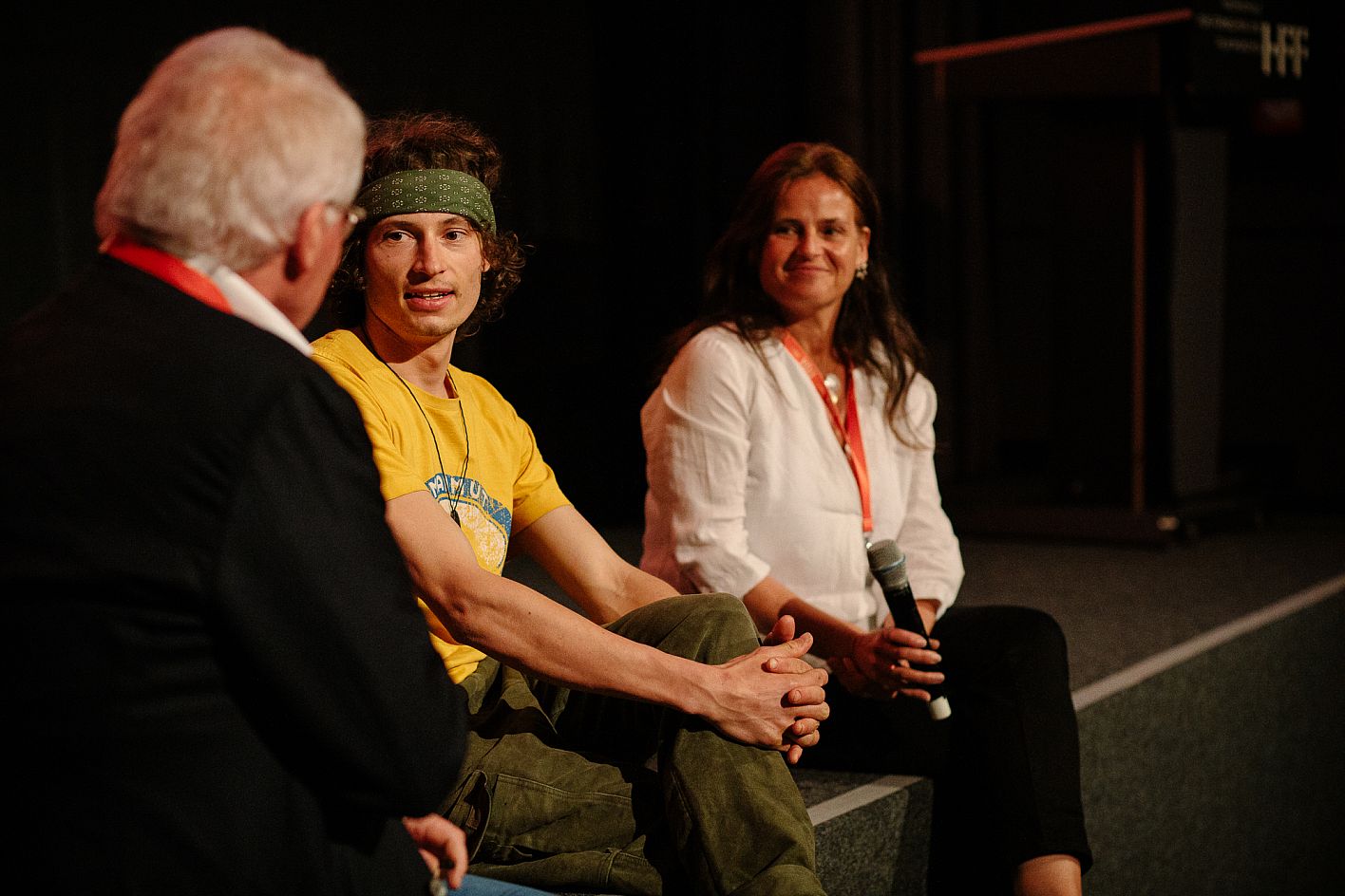 DOK.forum CLOSE UP: POLEN, Moderator Prof. Claus Richter, HFF Bereich Fernsehjournalismus, und Daniel Sponsel, (c) DOK.fest München.