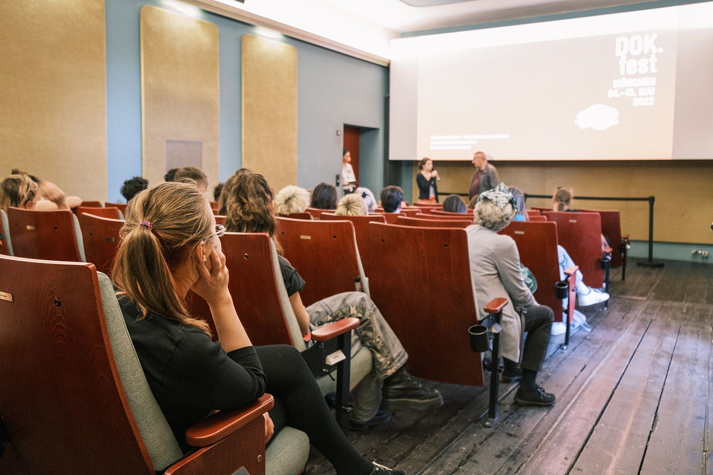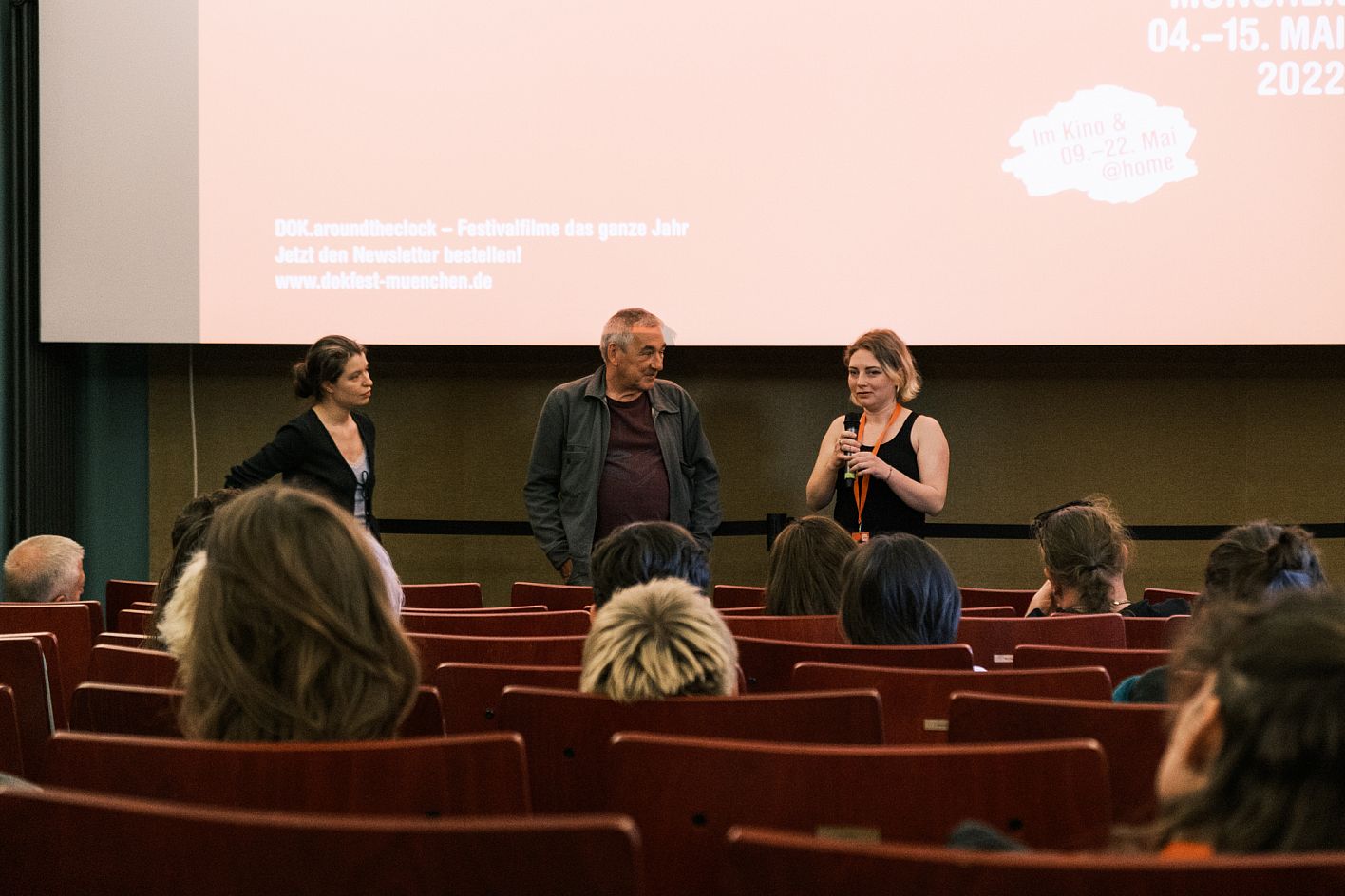 • Deutschlandpremiere HOW TO SAVE A DEAD FRIEND, Regisseurin Marusya Syroechkovskaya, Tonfrau Ada Laub und Moderator Roderich Fabian, (c) DOK.fest München.