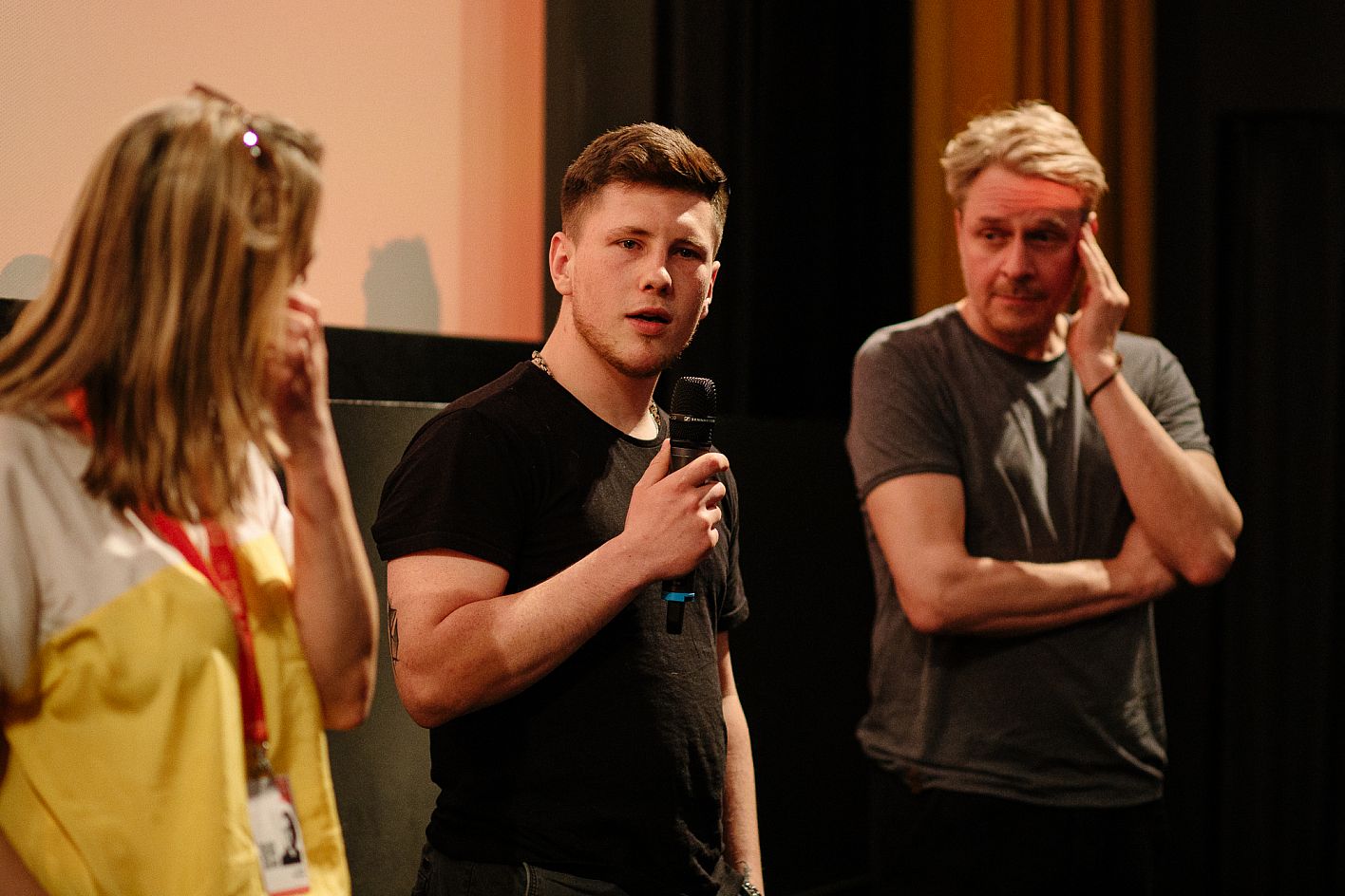 Best of Fests KALLE KOSMONAUT, Ina Borrmann (Moderation), Tine Kugler (Regie), Kalle (Protagonist) (c) DOK.fest München
