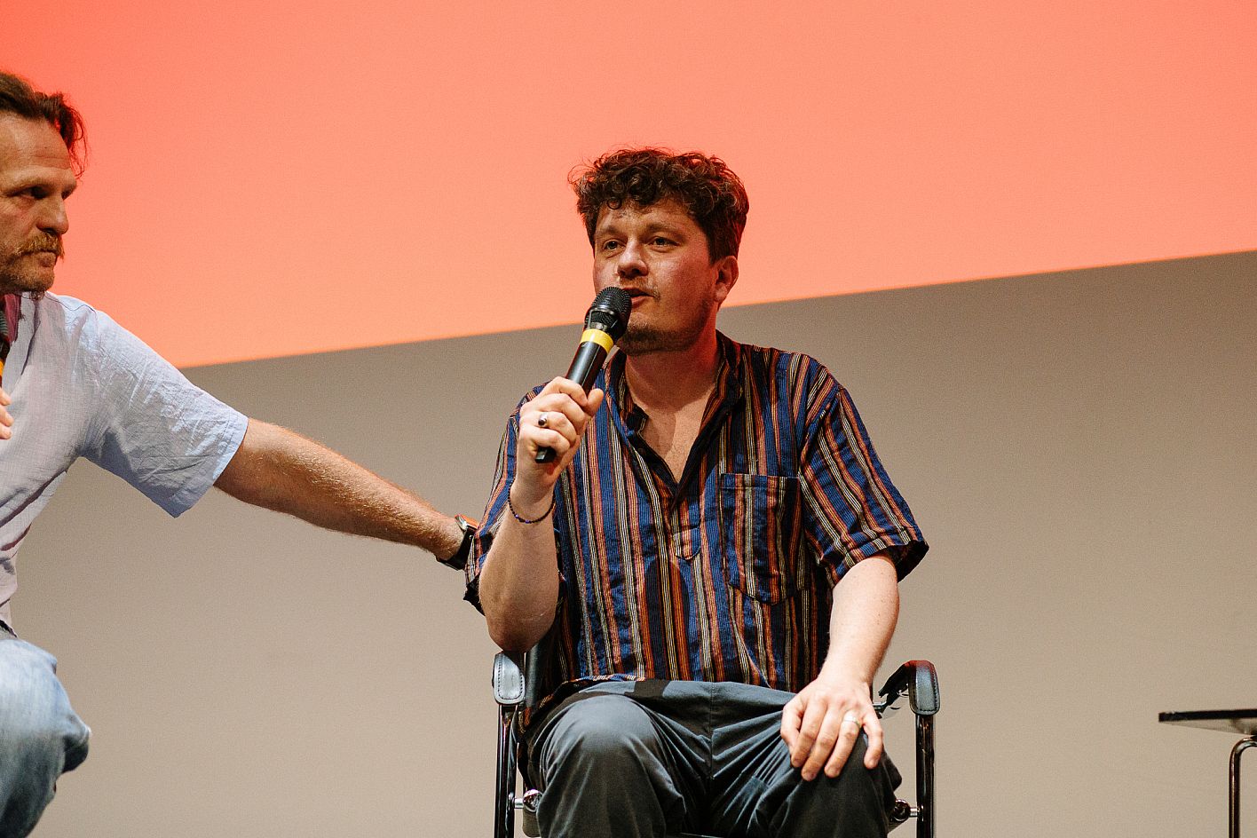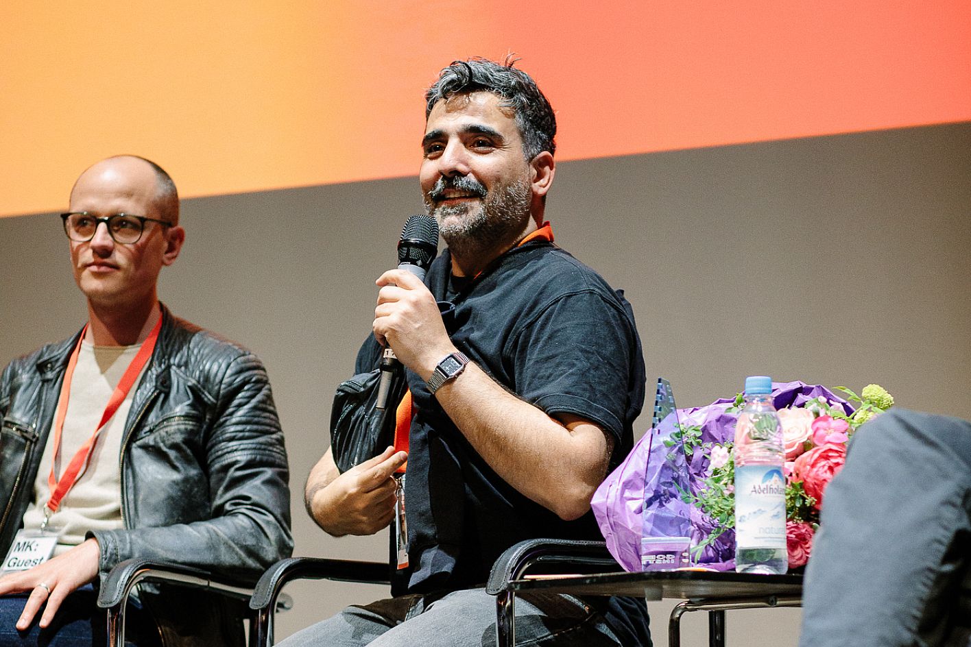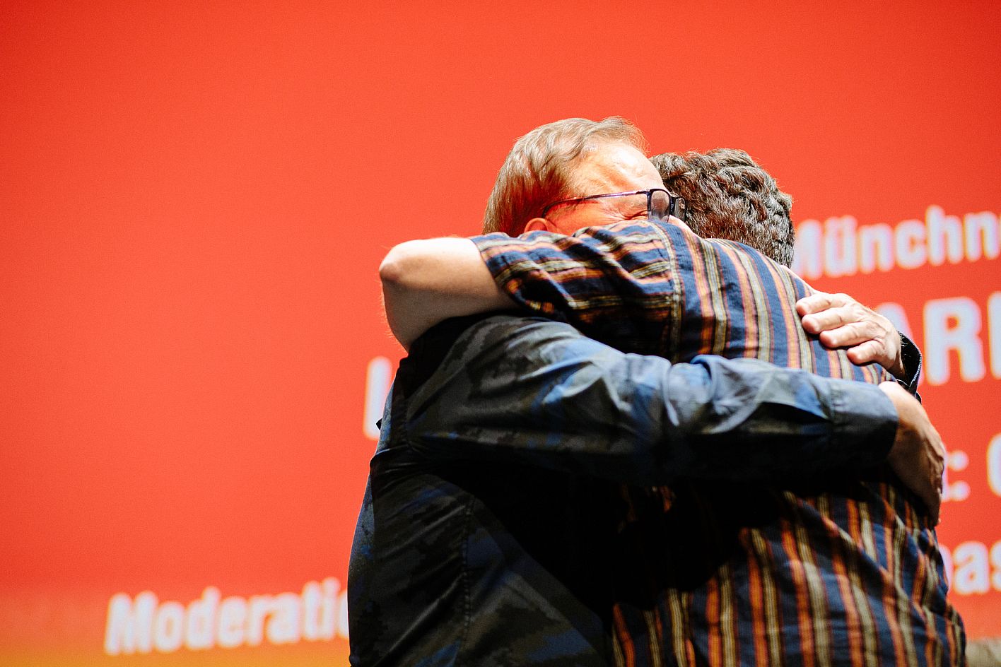 LIEBE, D-MARK UND TOD in den Münchner Kammerspielen, Cem Kaya (Regie, links), Sebastian Reier (Münchner Kammerspiele) (c) DOK.fest München