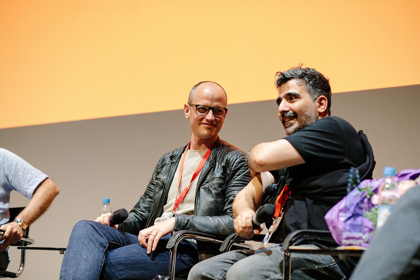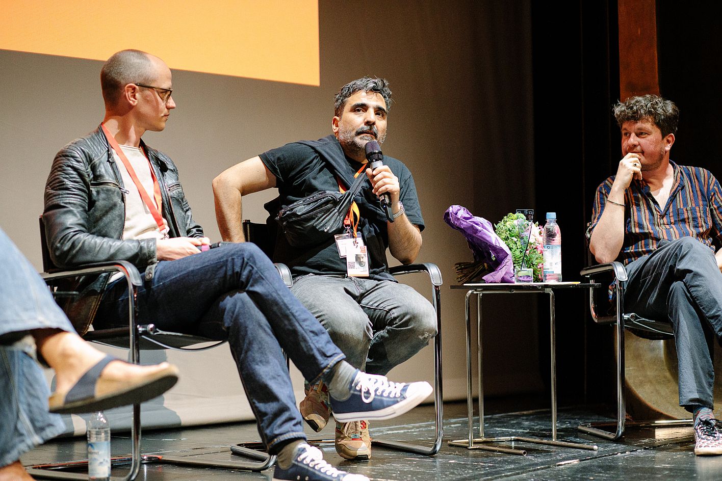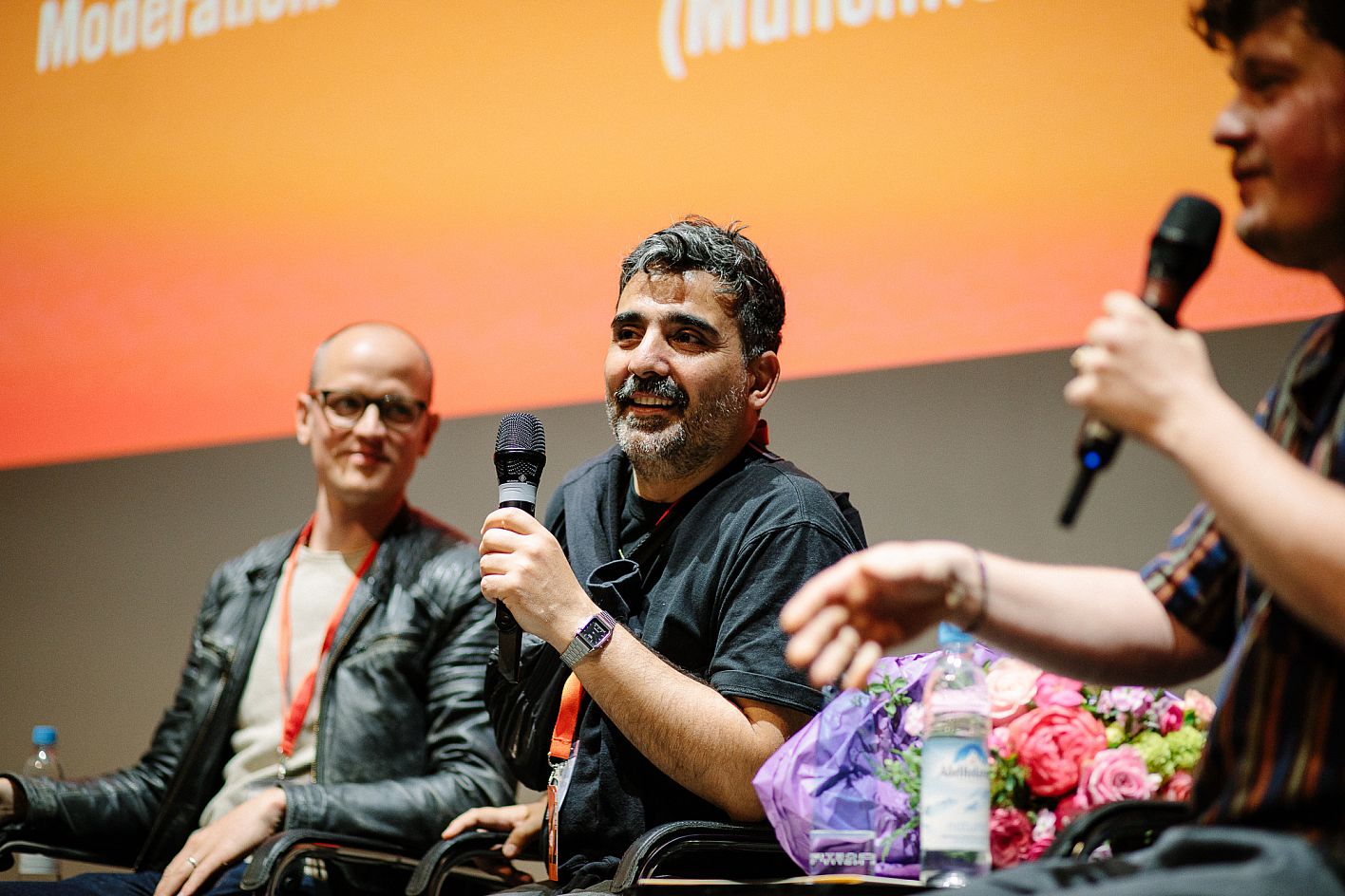 LIEBE, D-MARK UND TOD in den Münchner Kammerspielen, Cem Kaya (Regie, links), Sebastian Reier (Münchner Kammerspiele) (c) DOK.fest München