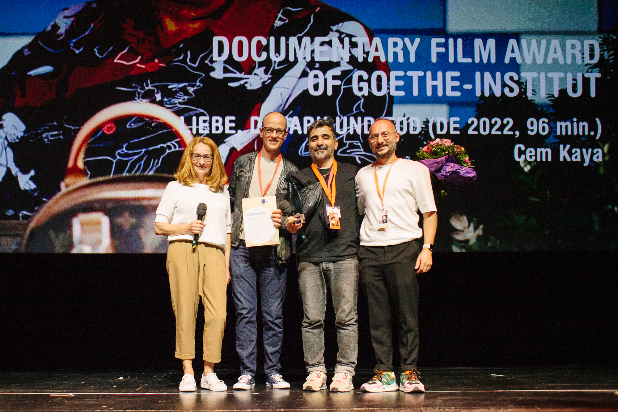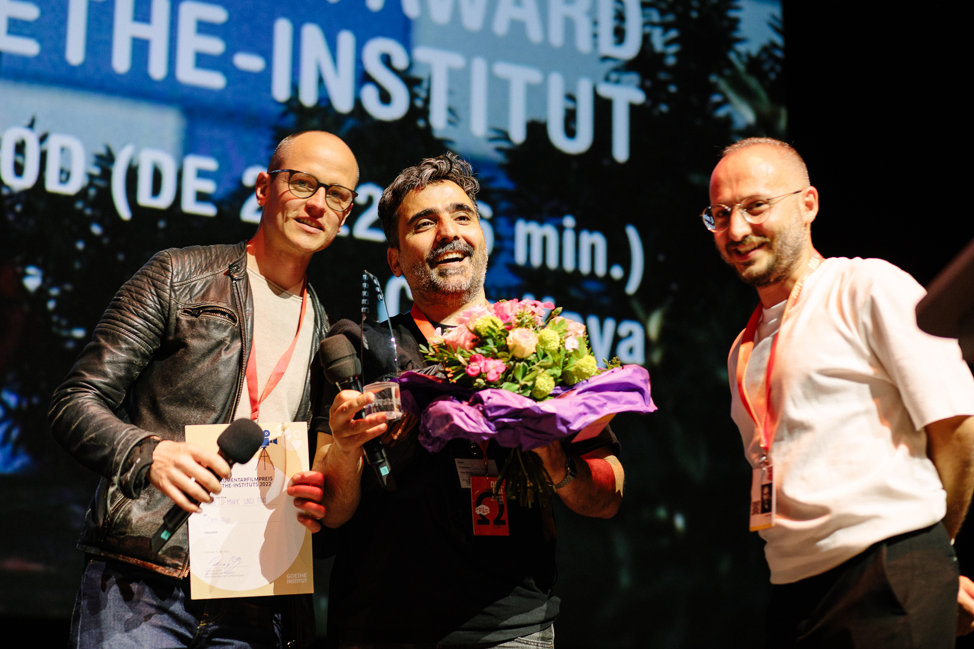 Hauptpreisverleihung 37. DOK.fest München, Cem Kaya (Preisträger Dokumentarfilmpreis des Goethe-Instituts, Mitte) (c) DOK.fest München