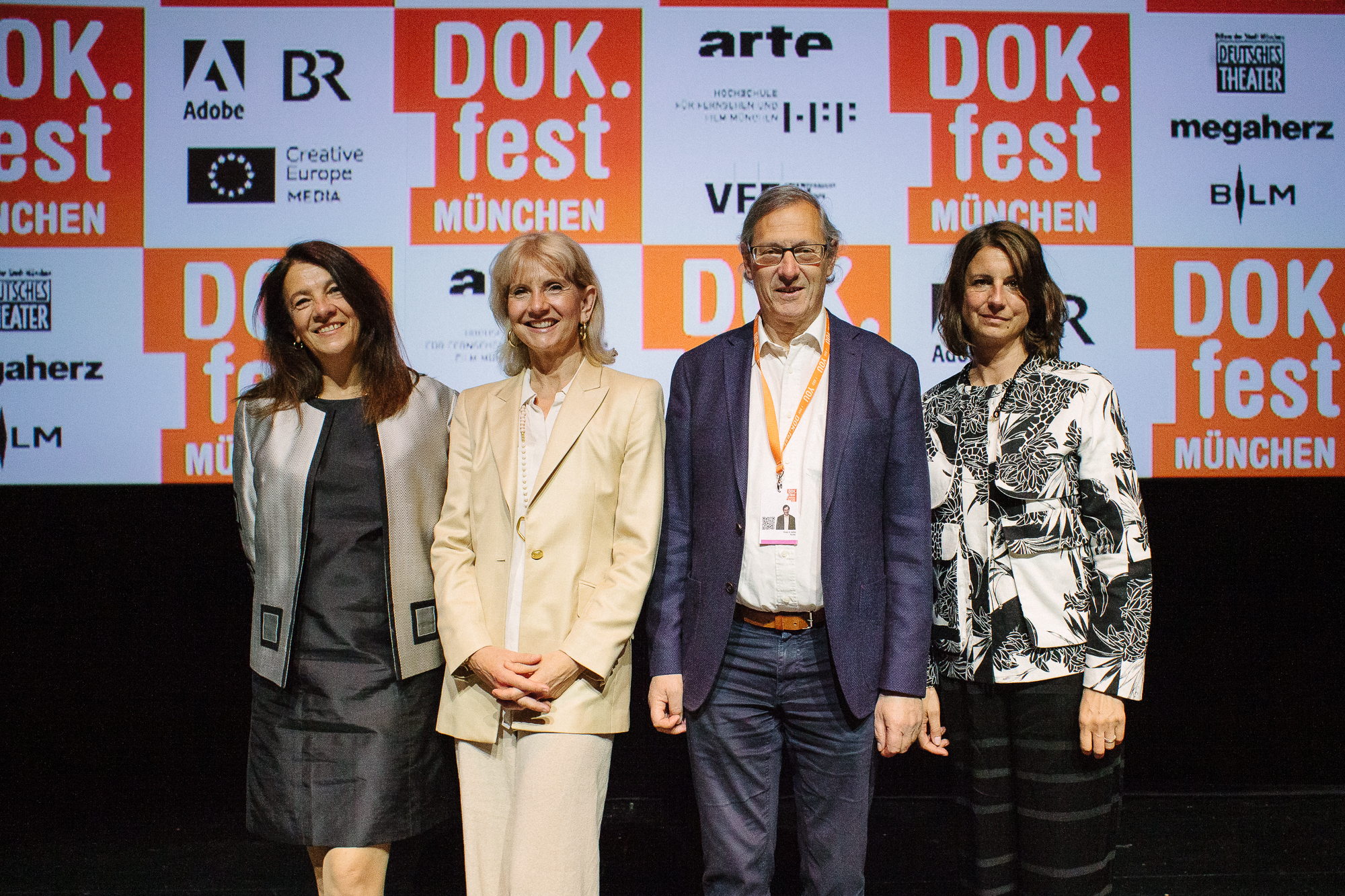 Hauptpreisverleihung 37. DOK.fest München, Saskia Wagner (FFF Bayern), Ina Borrmann (DOK.fest München), Petra Felber (BR), Daniel Sponsel (DOK.fest München) (c) DOK.fest München