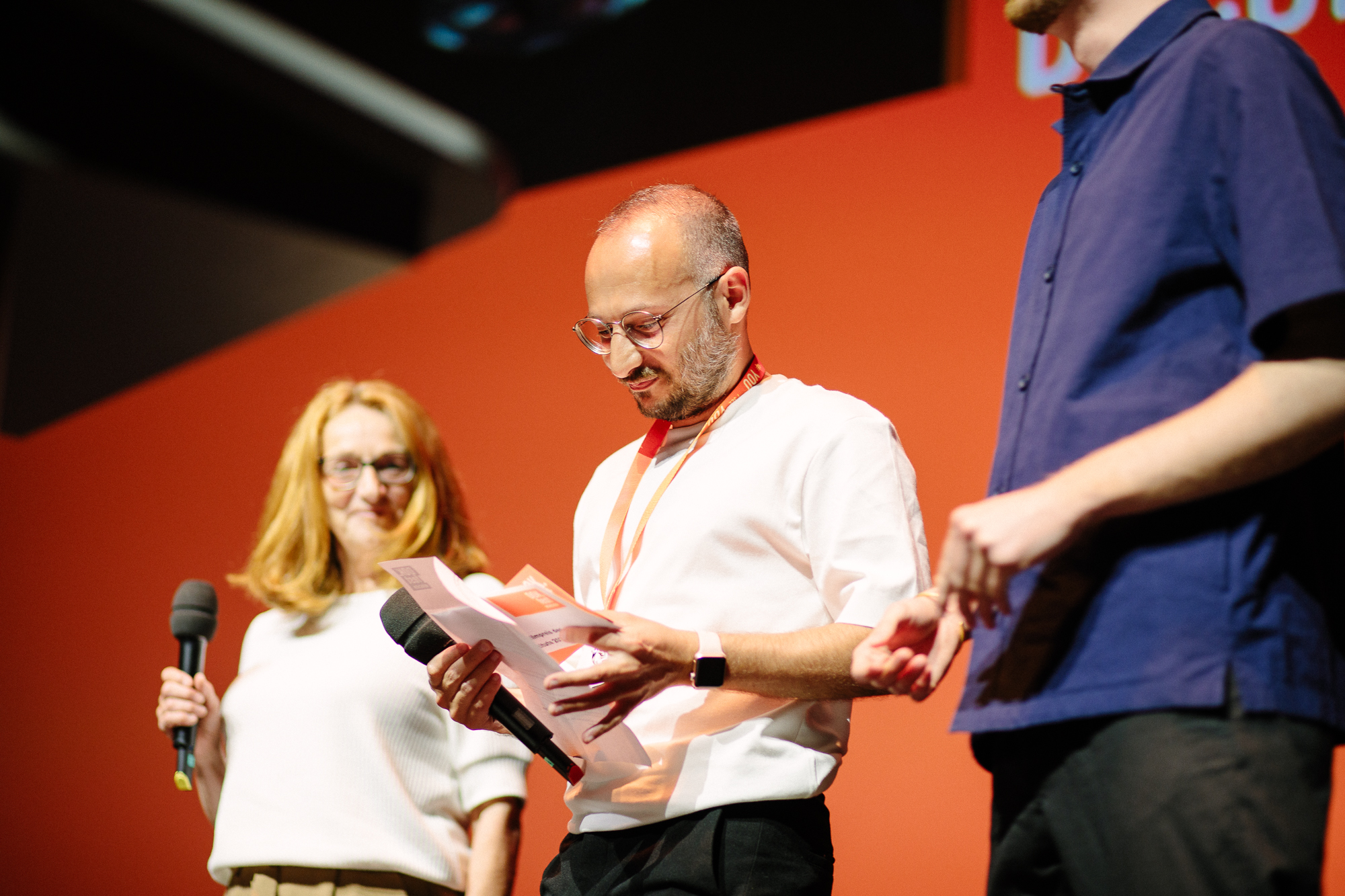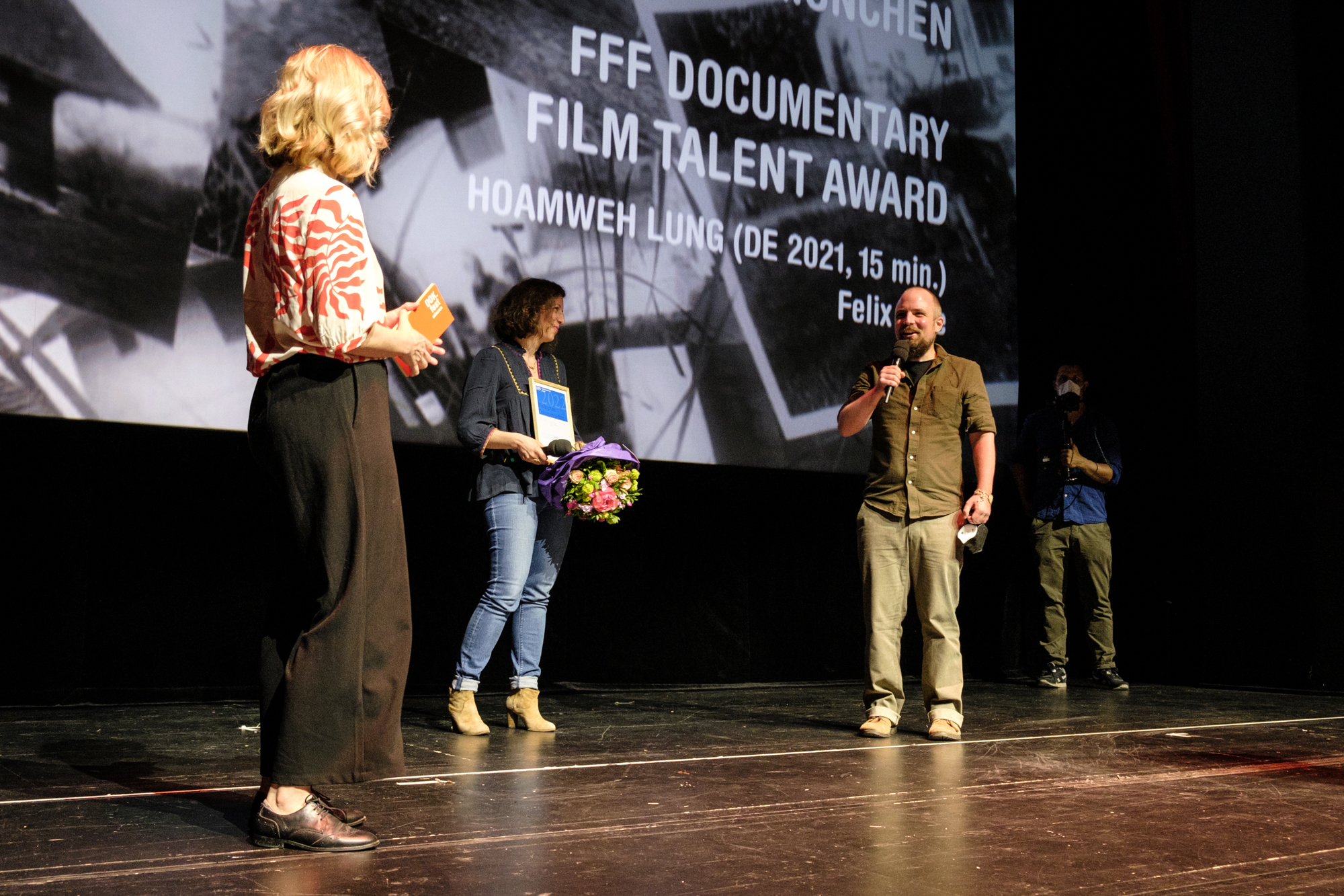 Hauptpreisverleihung 37. DOK.fest München, Daniel Sponsel (Festivalleiter), Thomas Fürhapter (Preisträger VIKTOR DOK.deutsch), Ina Borrmann (DOK.fest München) (c) DOK.fest München