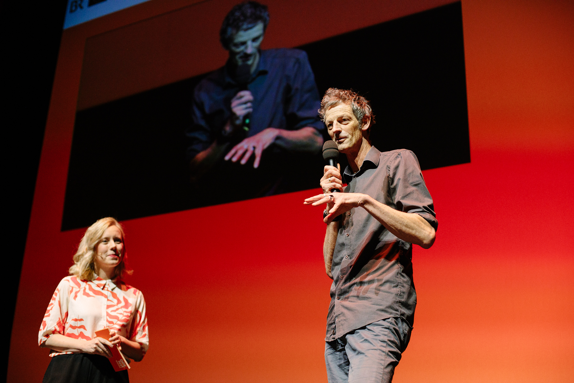 Hauptpreisverleihung 37. DOK.fest München, Christina Wolf (Moderatorin), Robert Mayer (megaherz) (c) DOK.fest München