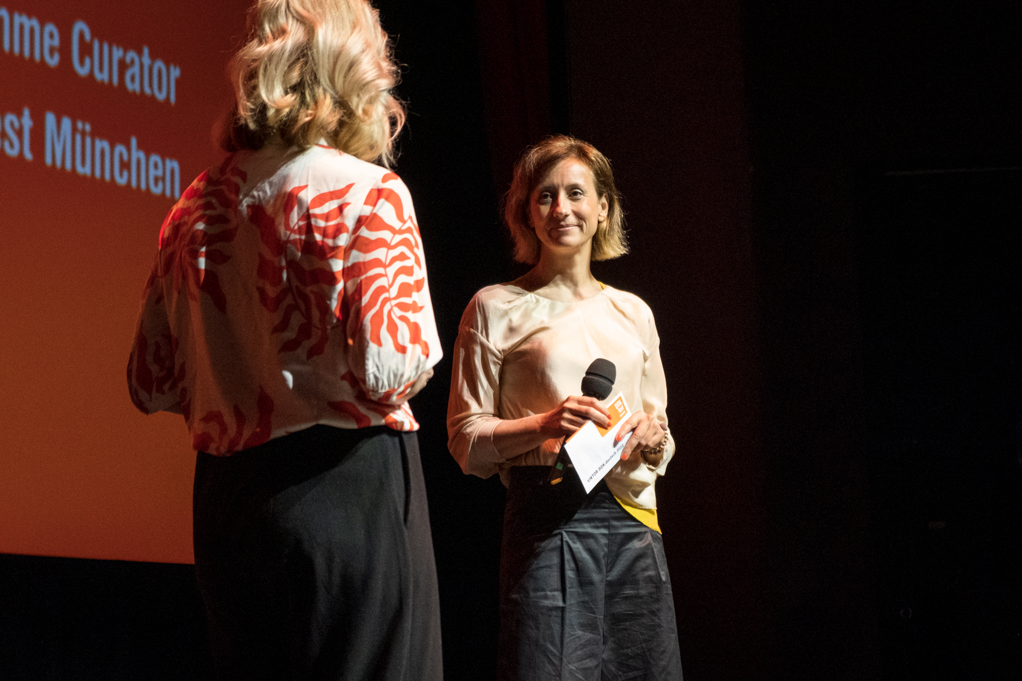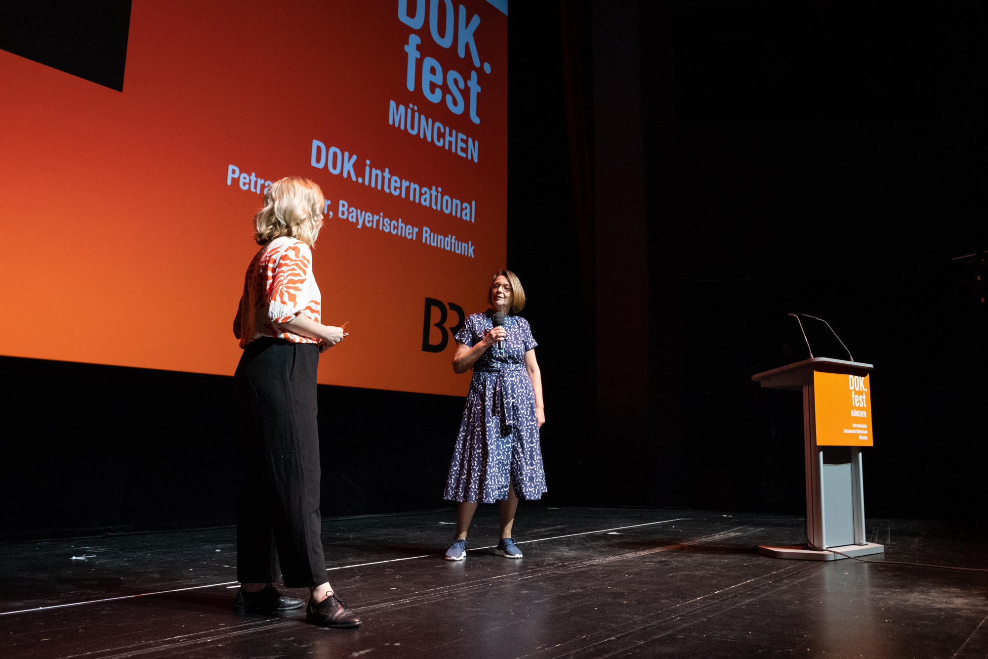 Hauptpreisverleihung 37. DOK.fest München, Christina Wolf (Moderatorin), Petra Felber (BR) (c) DOK.fest München