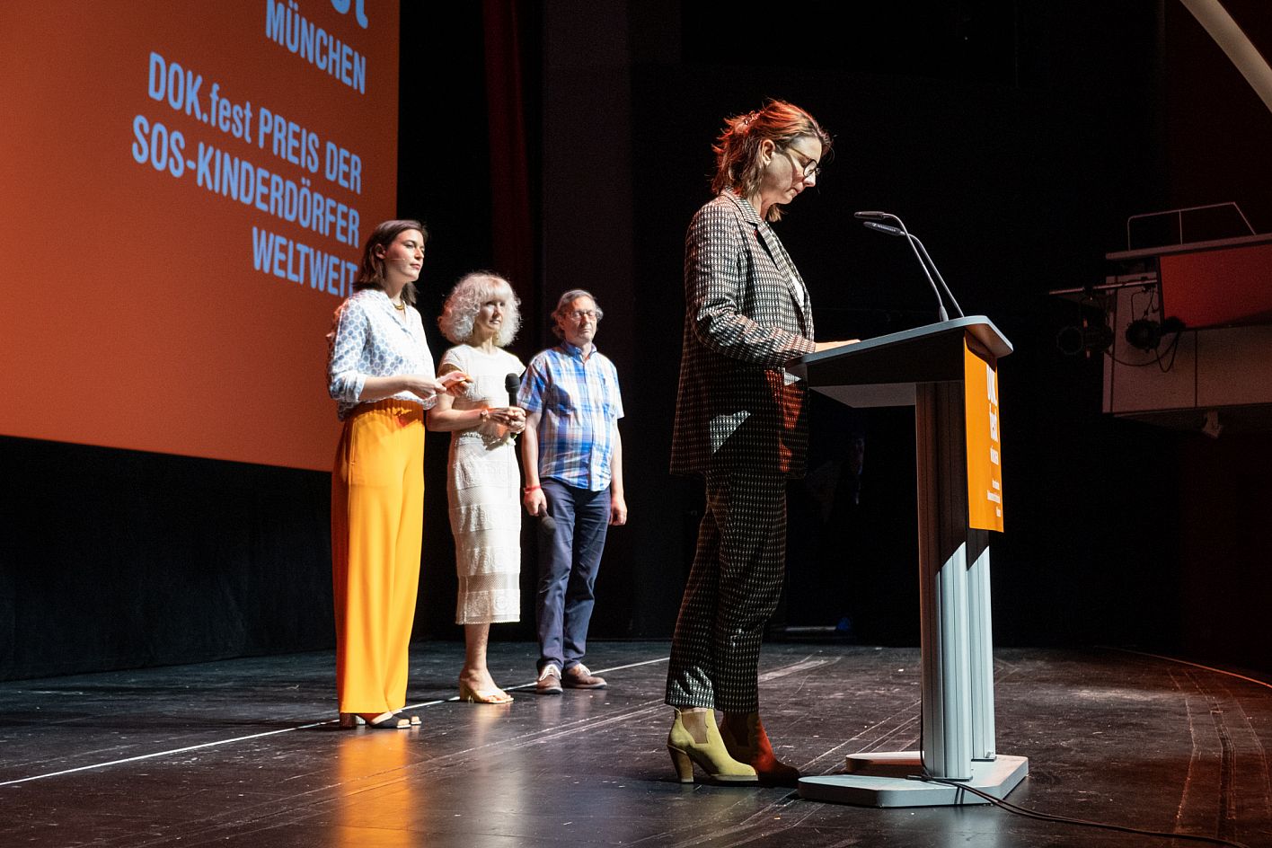 • Preisverleihung DOK.fest Preis der SOS-Kinderdörfer weltweit, Sophie von Uslar (Juryvertretung), Adele Kohout (DOK.fest München), Daniel Sponsel (DOK.fest München), Prof. Michaela Braun (Aufsichtsrat SOS-Kinderdörfer weltweit) (c) DOK.fest München