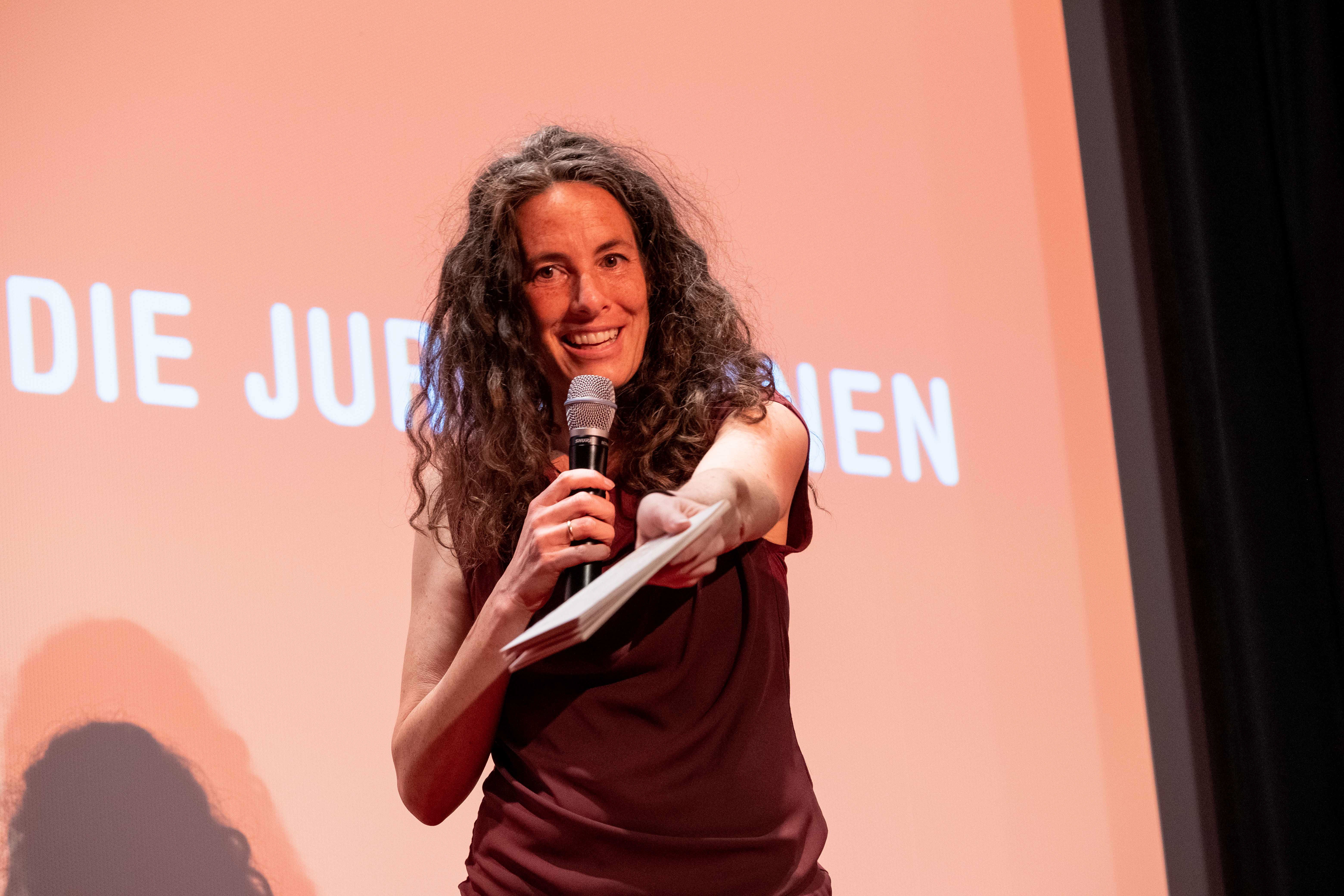Preisverleihung Jugendfilmwettbewerb 2022, Maya Reichert (Moderatorin, Leitung DOK.education) (c) DOK.fest München/ Jan Roeder