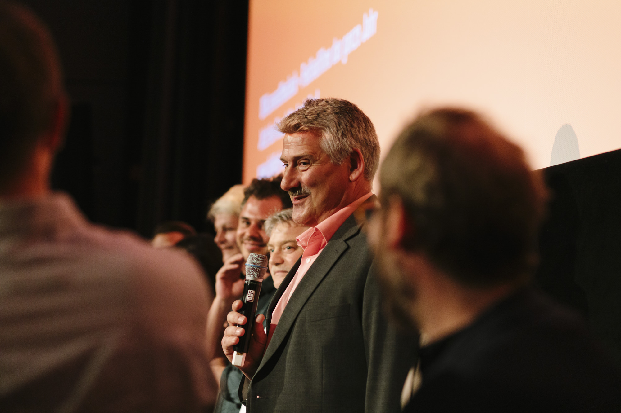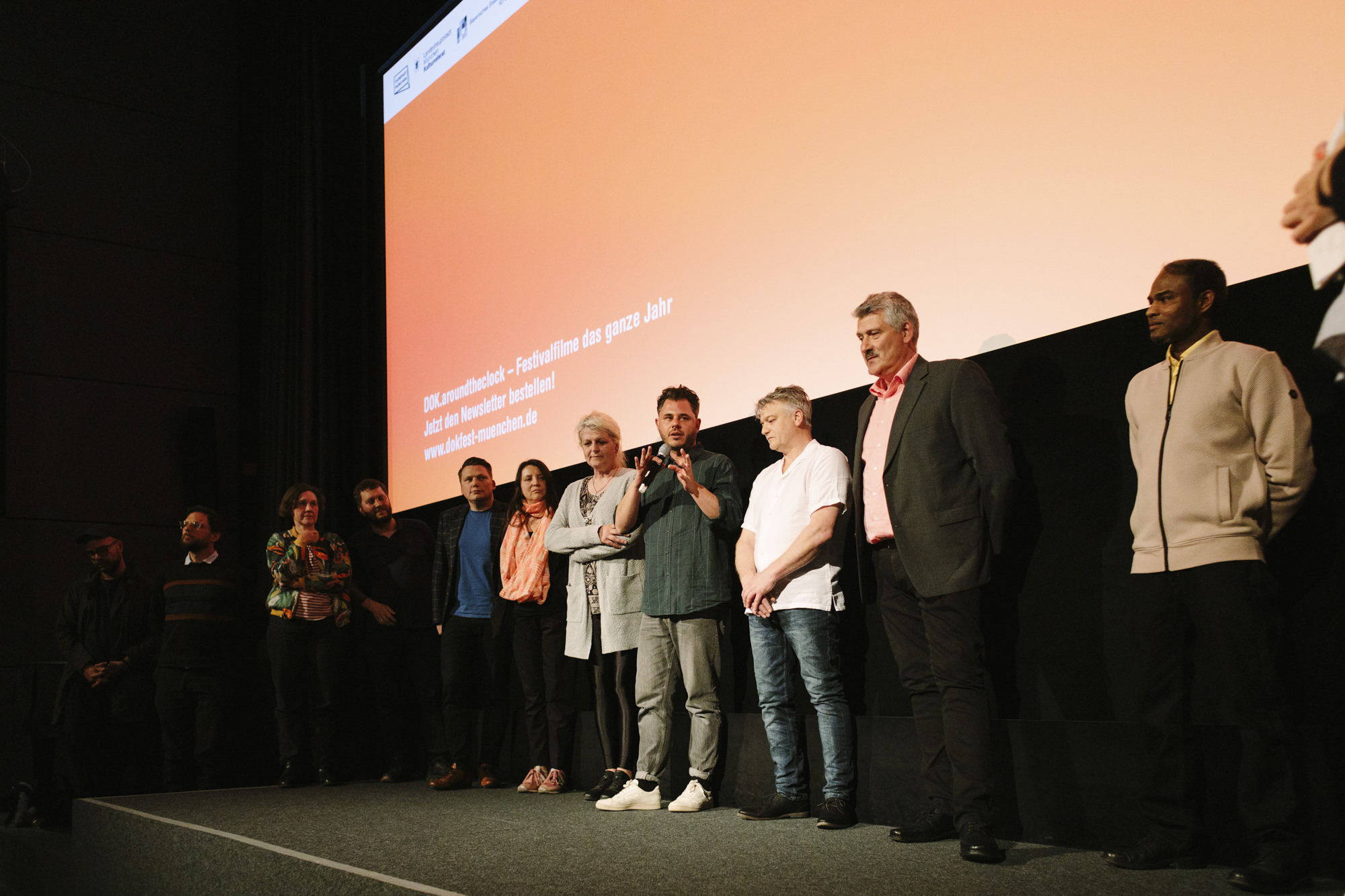 • WIR WAREN KUMPEL in der HFF, Christian Koch, Jonas Matauschek (Regisseure) mit Filmteam und Protagonist*innen (c) DOK.fest München 2023