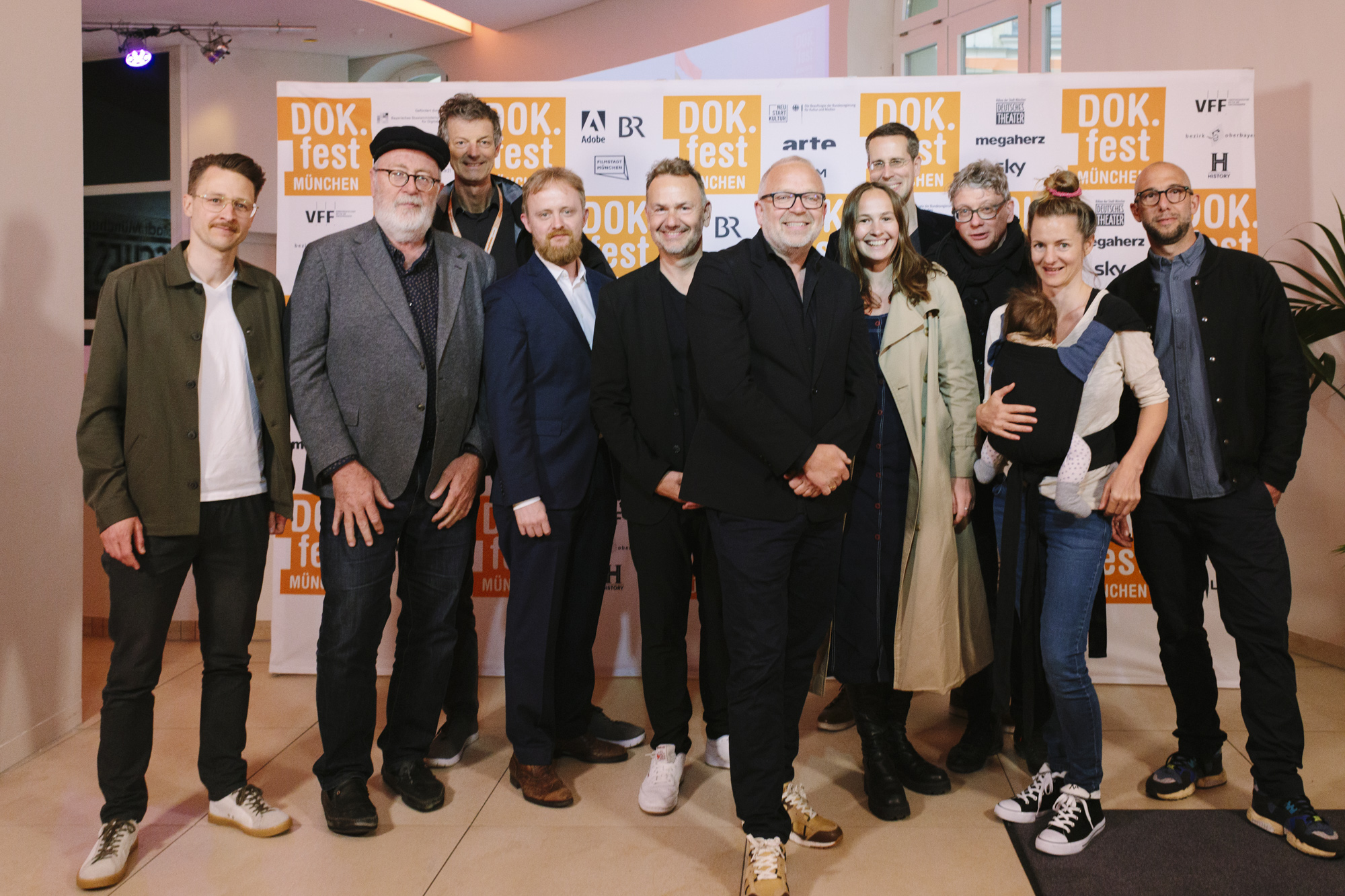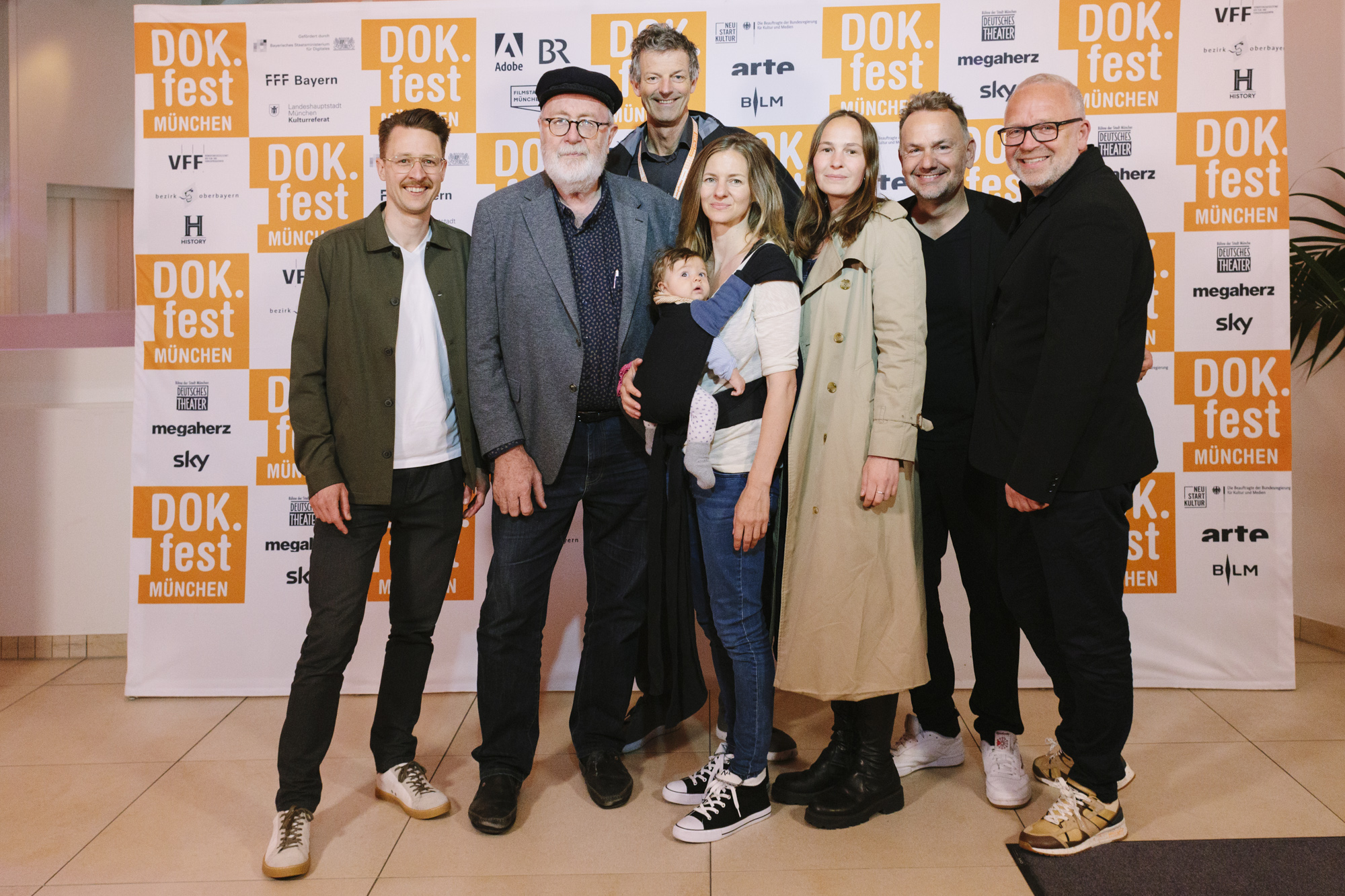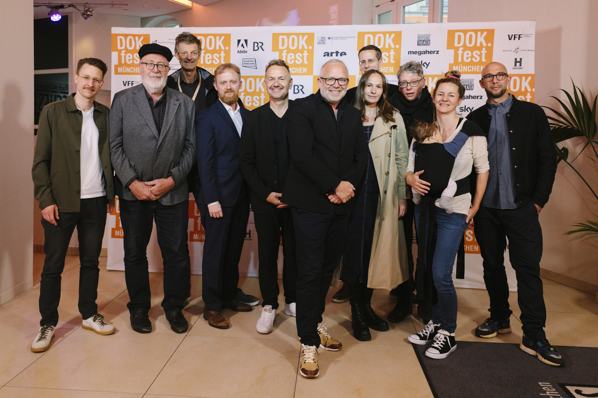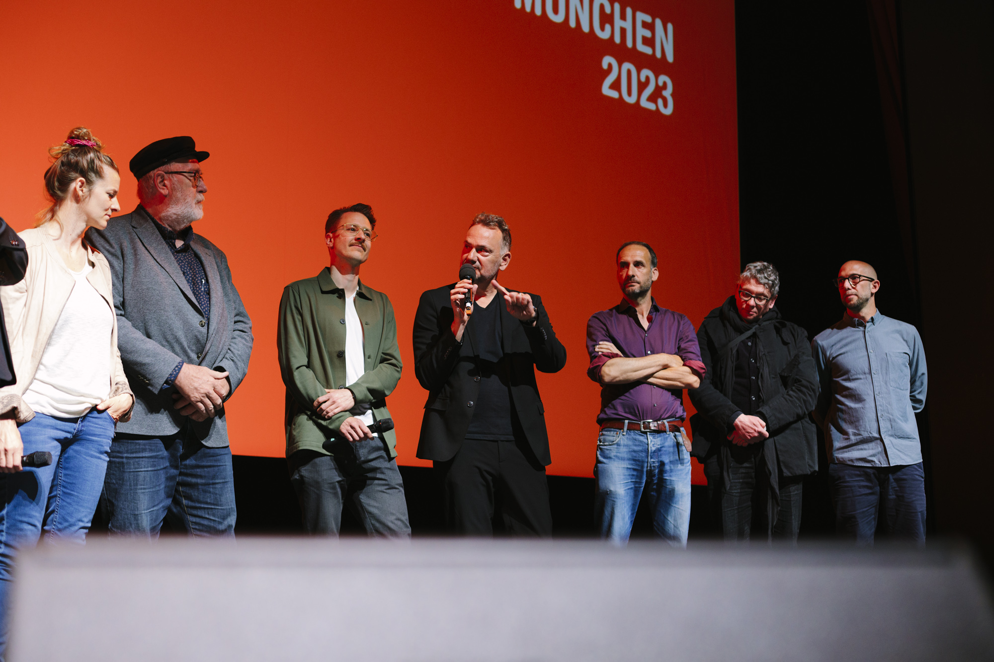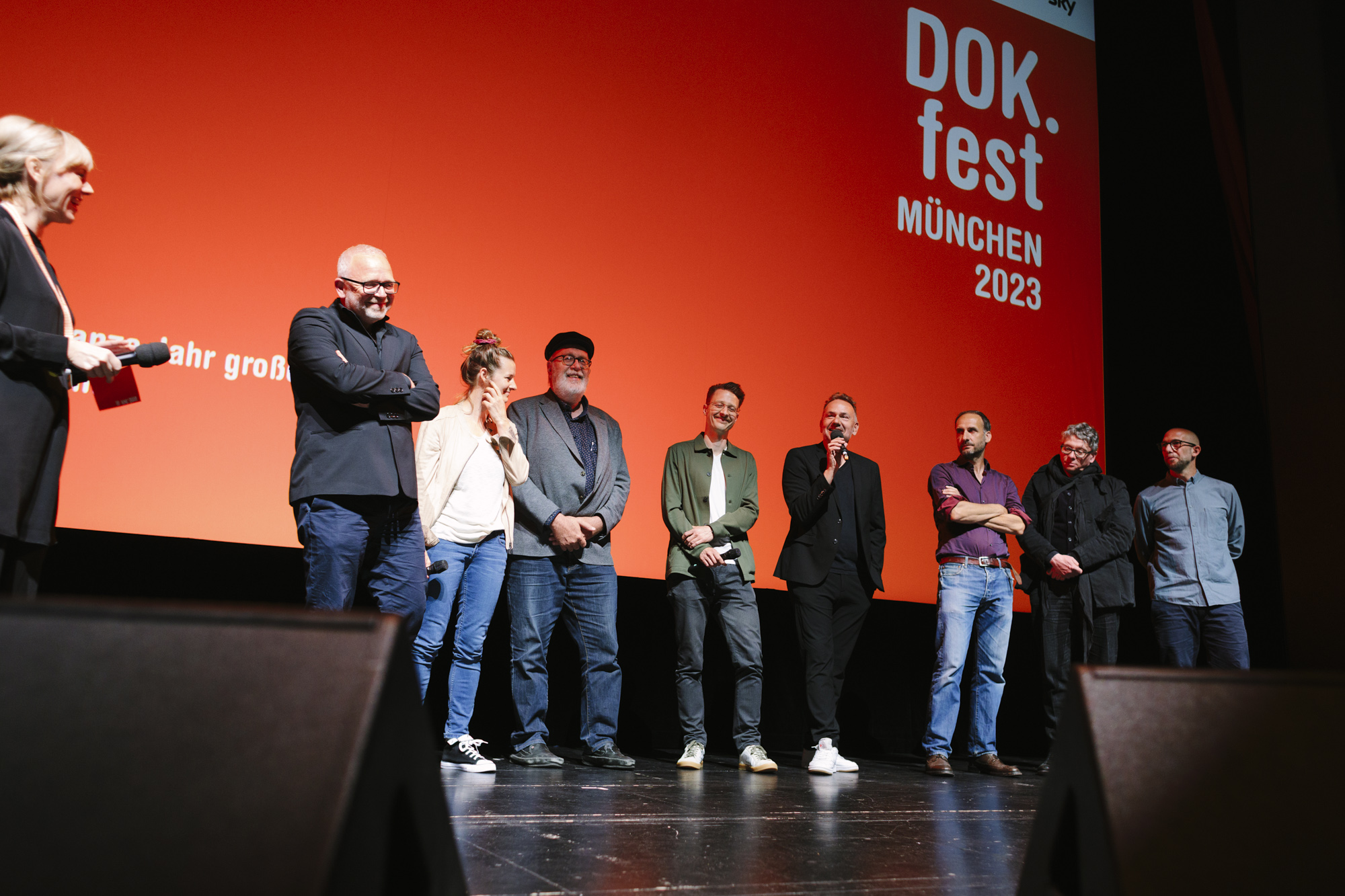 JUAN CARLOS – LIEBE, GELD, VERRAT im Deutschen Theater: Felix Kempter (ganz links, Sky), Pedro Barbadillo (2.v.r. Autor JUAN CARLOS), Daniel Sponsel (2.v.l. Festivalleiter), Christian Asanger (5. v.l. Vice President Sky Deutschland), Christian Beetz (6. v.r., gebrüder beetz filmproduktion), Lea Körner (Produktion), Jürgen Rehberg (Kamera), Anne von Petersdorff (2.v.r. Regisseurin JUAN CARLOS), Yannick Bonica (ganz rechts, Kamera JUAN CARLOS (c) DOK.fest München 2023(c) DOK.fest München 2023
