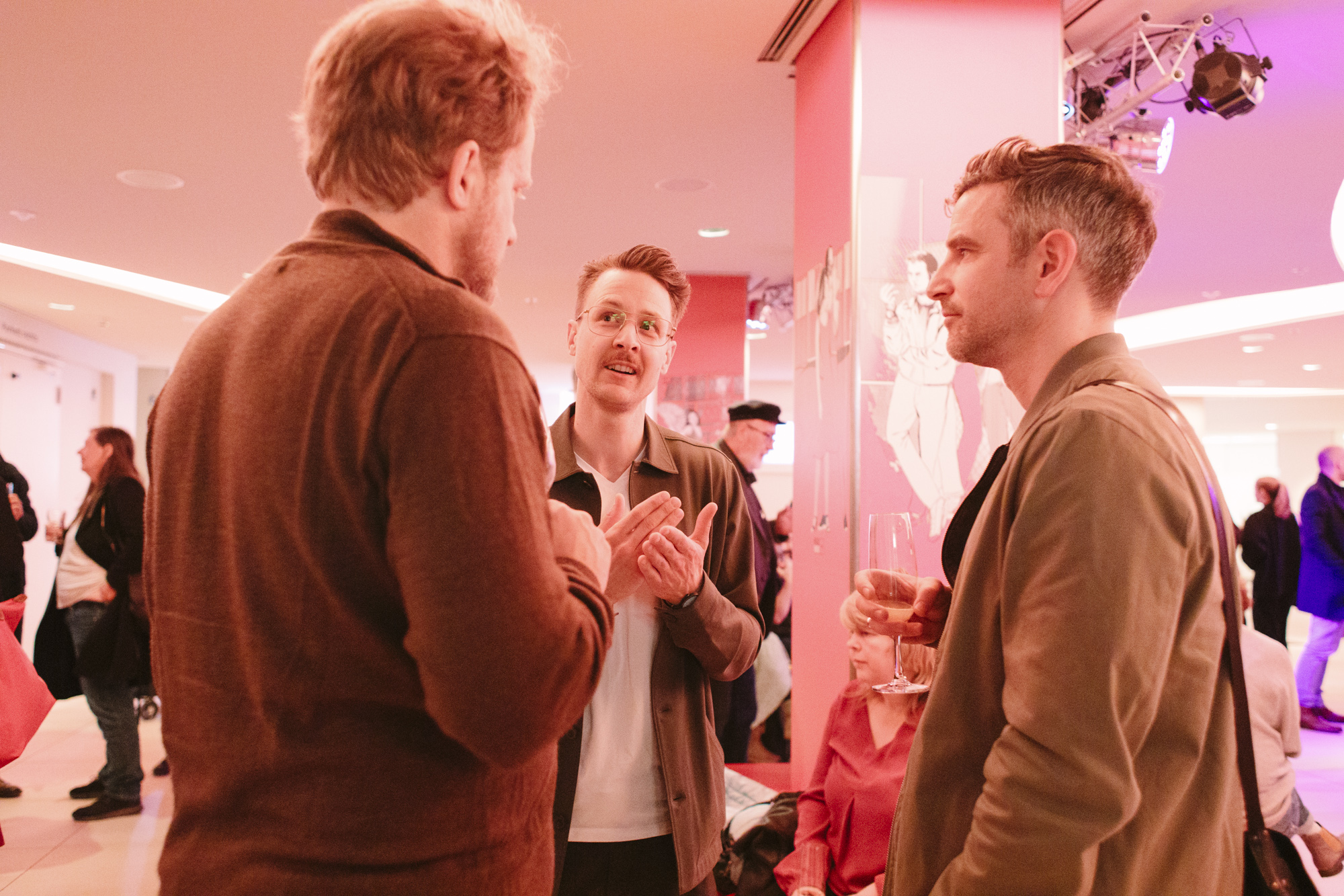 JUAN CARLOS – LIEBE, GELD, VERRAT im Deutschen Theater: Devesch Raj (ganz links CEO of Sky), Christian Beetz (2. v.l. christian beetz filmproduktion), Christian Asanger (ganz rechts, Vice President Sky Deutschland) (c) DOK.fest München 2023(c) DOK.fest München 2023