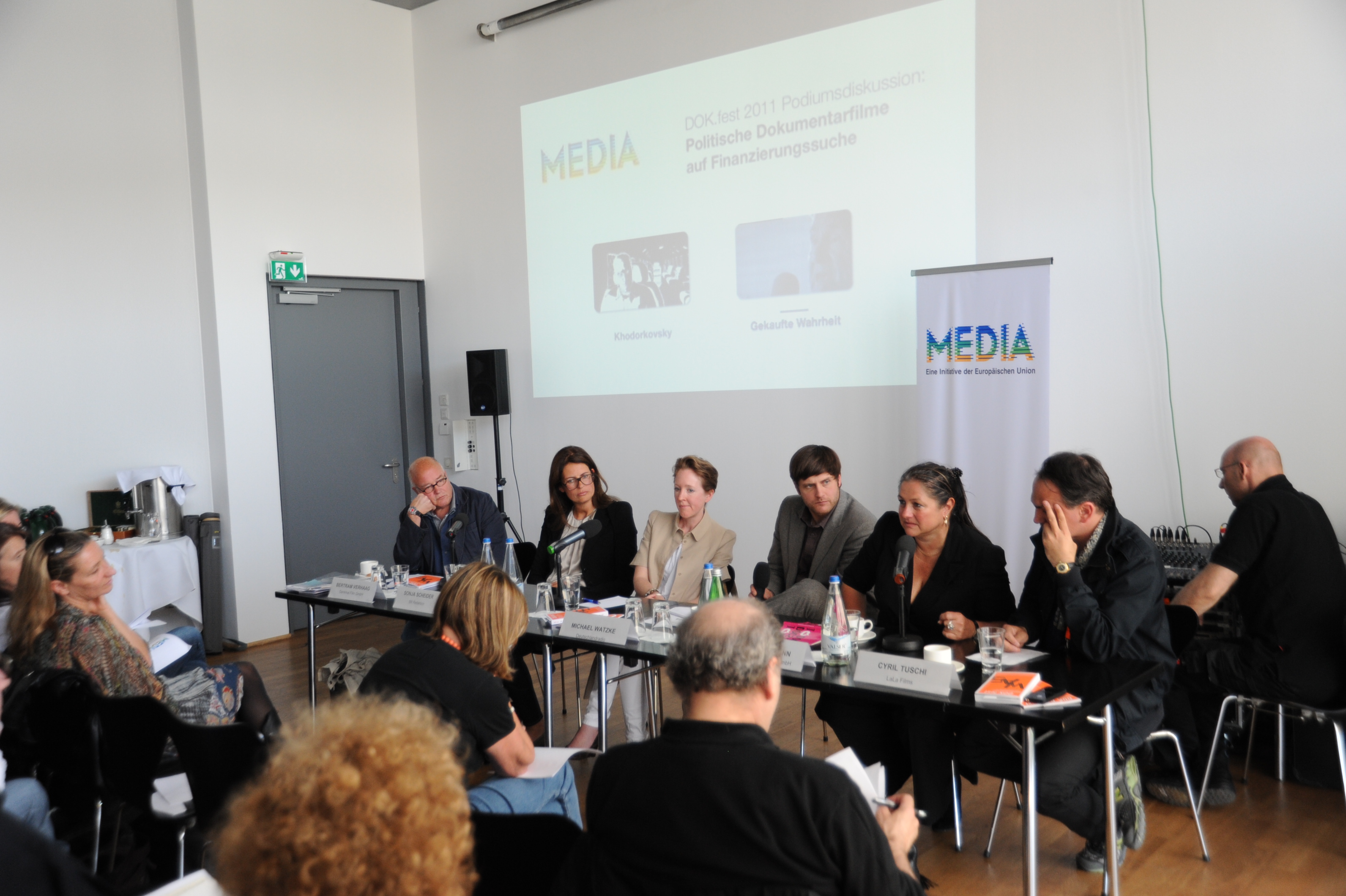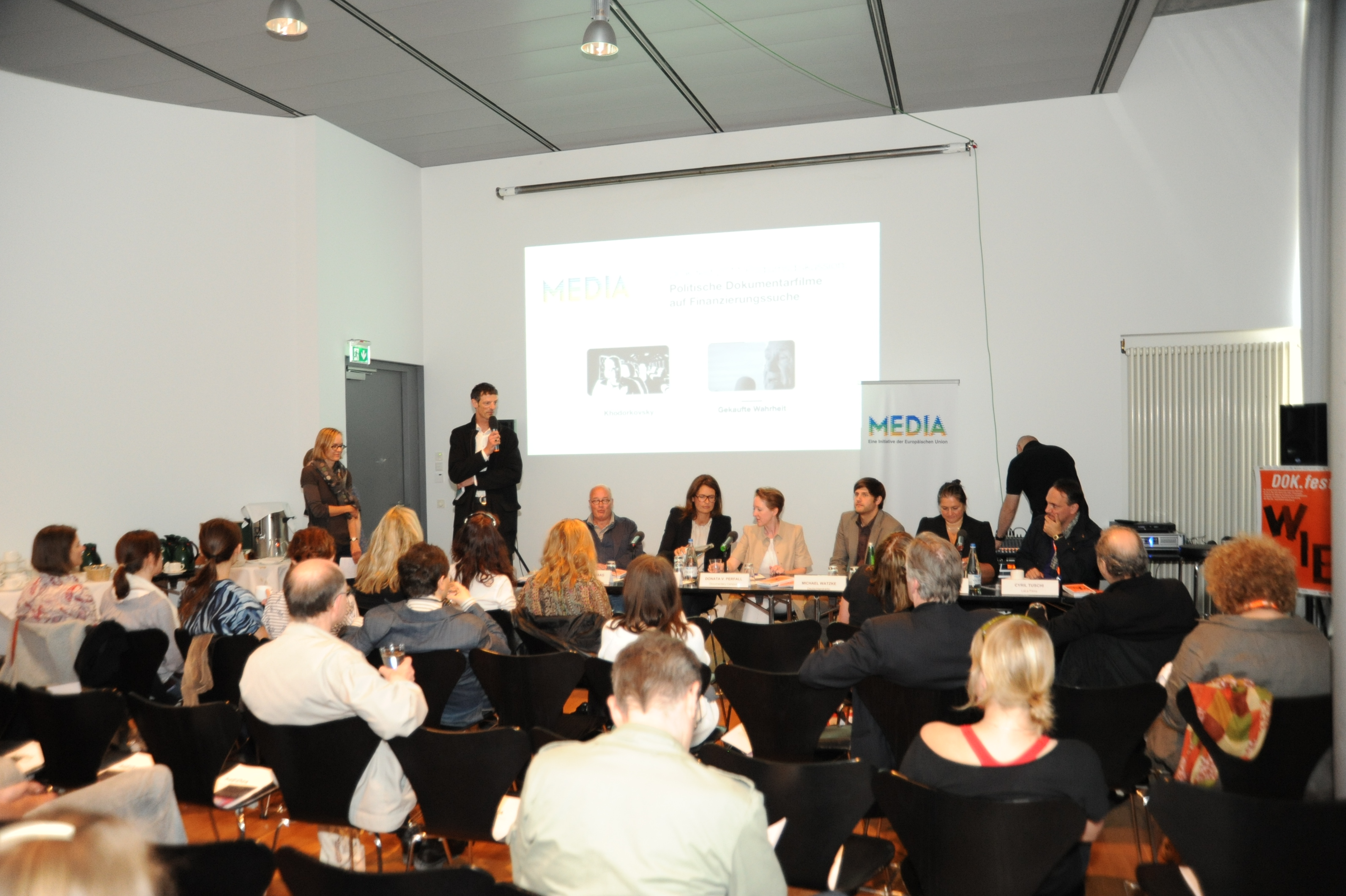 ganz rechts: Cyril Tuschi (Regisseur KHODORKOVSKY) / Copyright DOK.fest - Lucius Grossheim