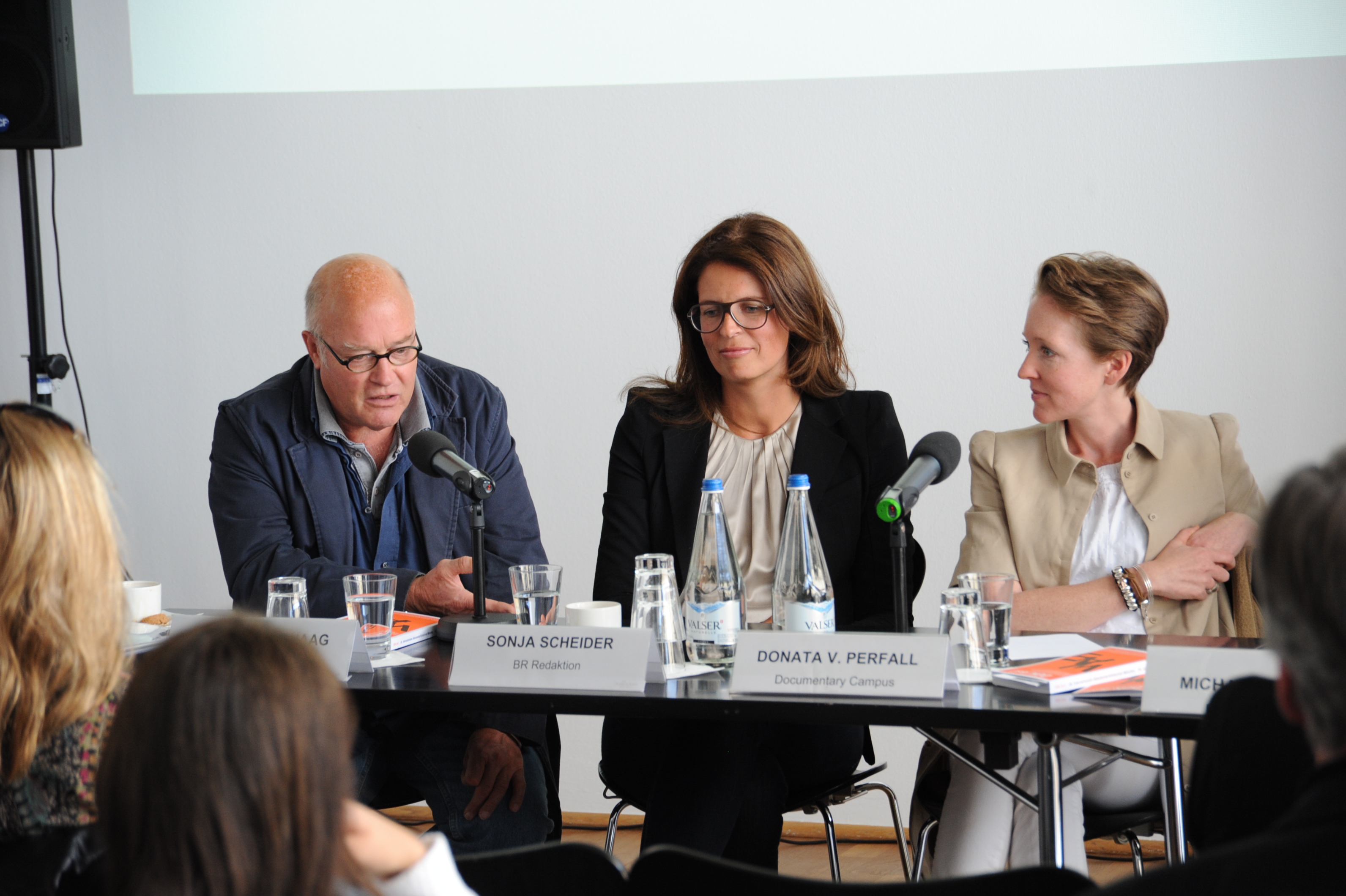 v.l.n.r.: Bertram Verhaag (Denkmal Film), Sonja Scheider (BR) und Donata v. Perfall (Documentary Campus) / Copyright DOK.fest - Lucius Grossheim
