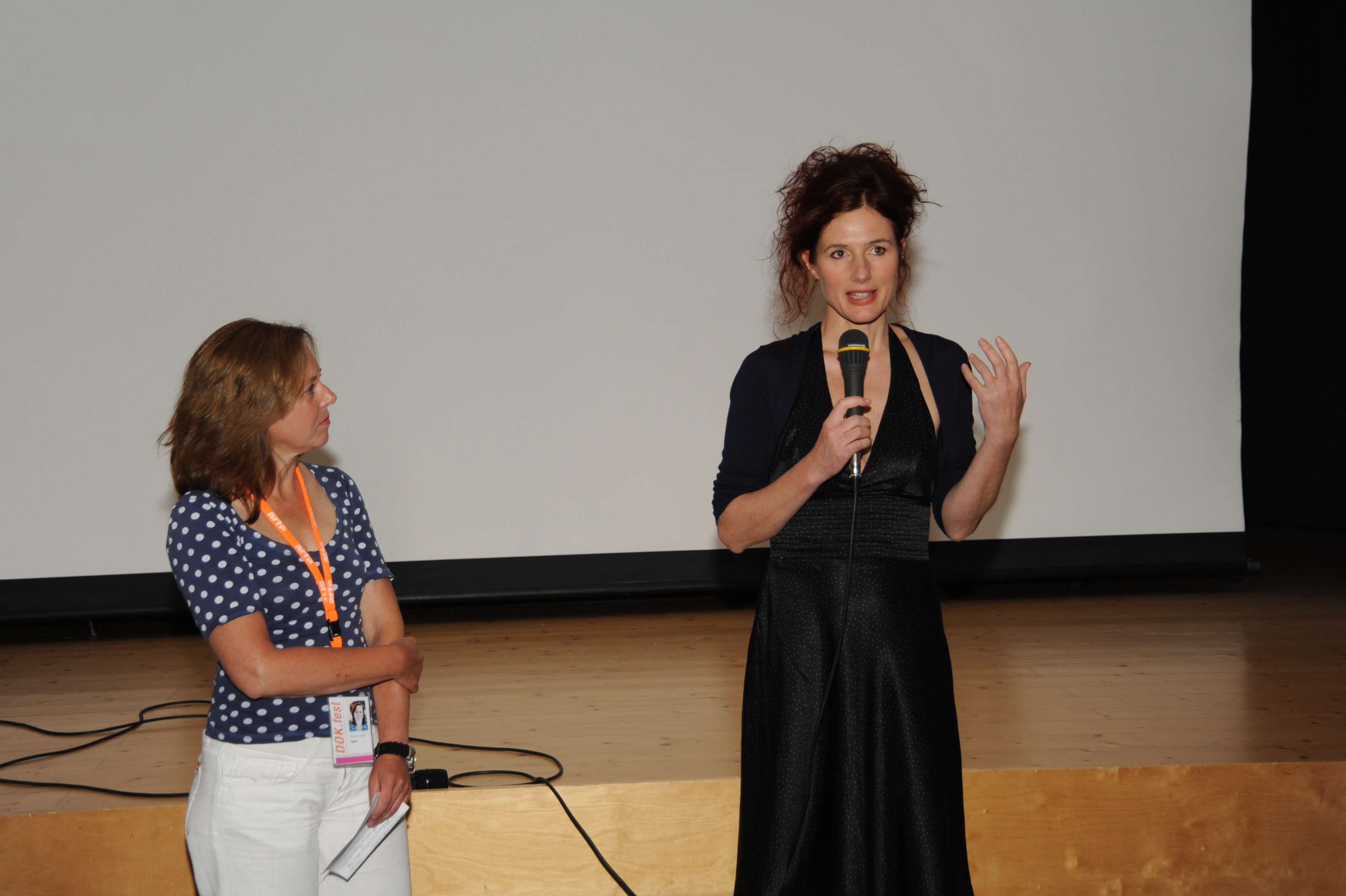 Moderatorin Eleonore Daniel im Gespräch mit Regisseurin Maria Blumencron (GOOD BYE TIBET) / Copyright DOK.fest - Lucius Grossheim