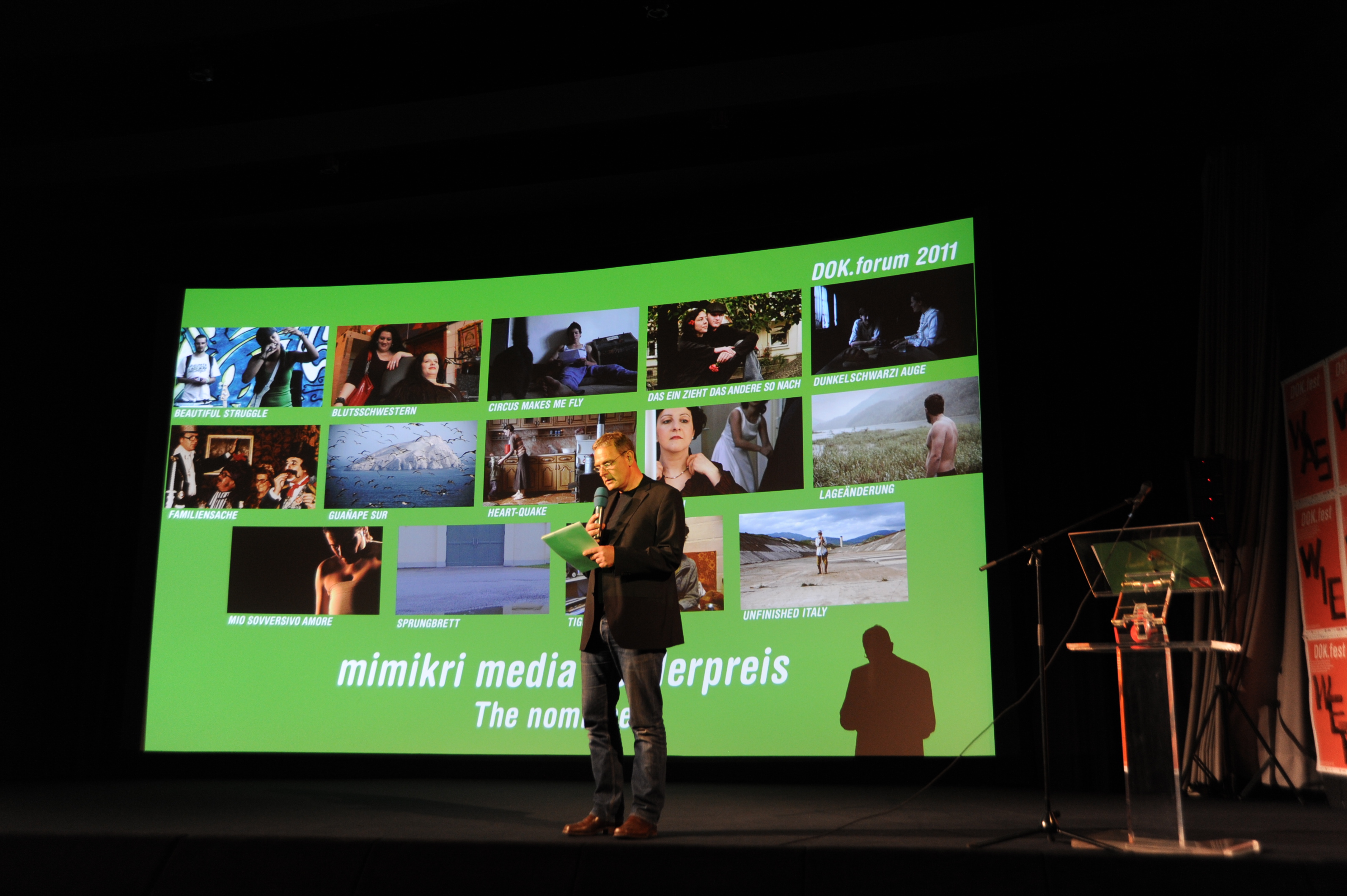Preisvergabe des mimikri media Förderpreises mit Moderator Moritz Holfelder bei der DOK.fest Preisverleihung am 10. Mai im Arri Kino / Copyright - DOK.fest Maren Bornemann