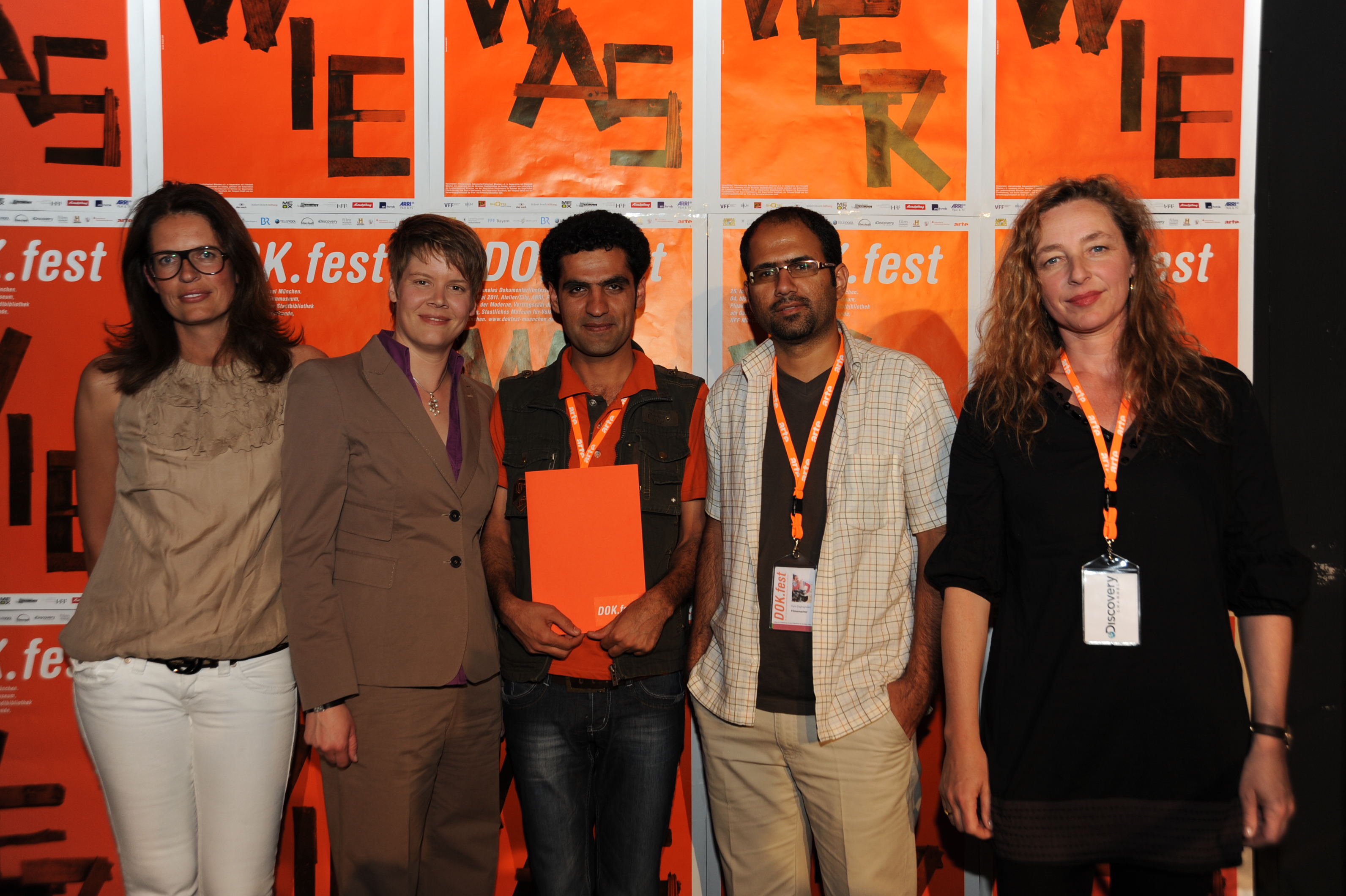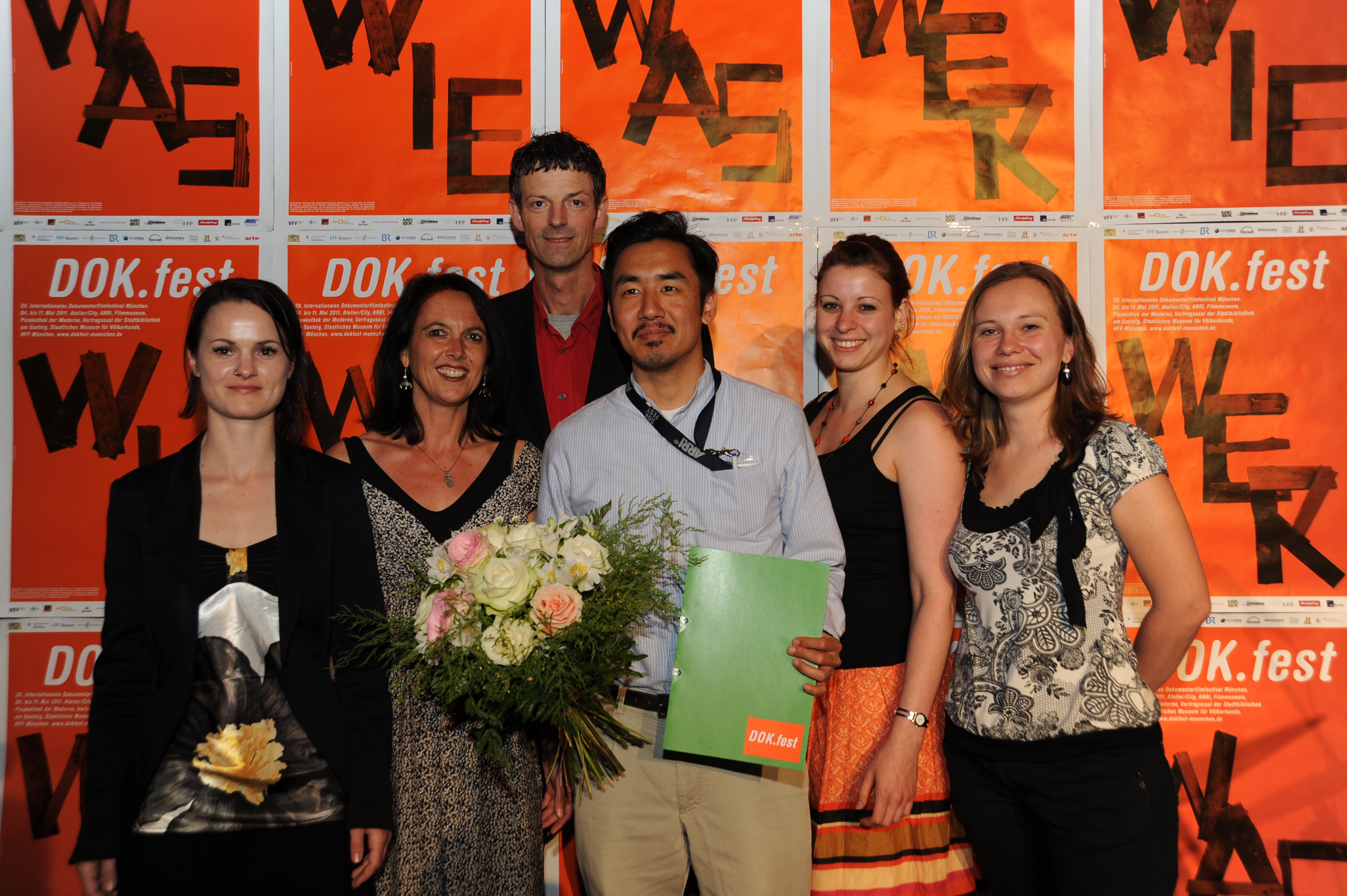 v.l.n.r.: Andrea Kuhn (Jury DOK.international), Gewinner DOK.international Regsisseur Cyril Tuschi (KHODORKOVSKY), Dr. Thomas Weymar (Telepool), Diana Iljine (Jury DOK.international), Sonja Scheider (Jury DOK.international) und Hubert von Spreti (BR Film und Teleclub) / Copyright DOK.fest - Maren Bornemann