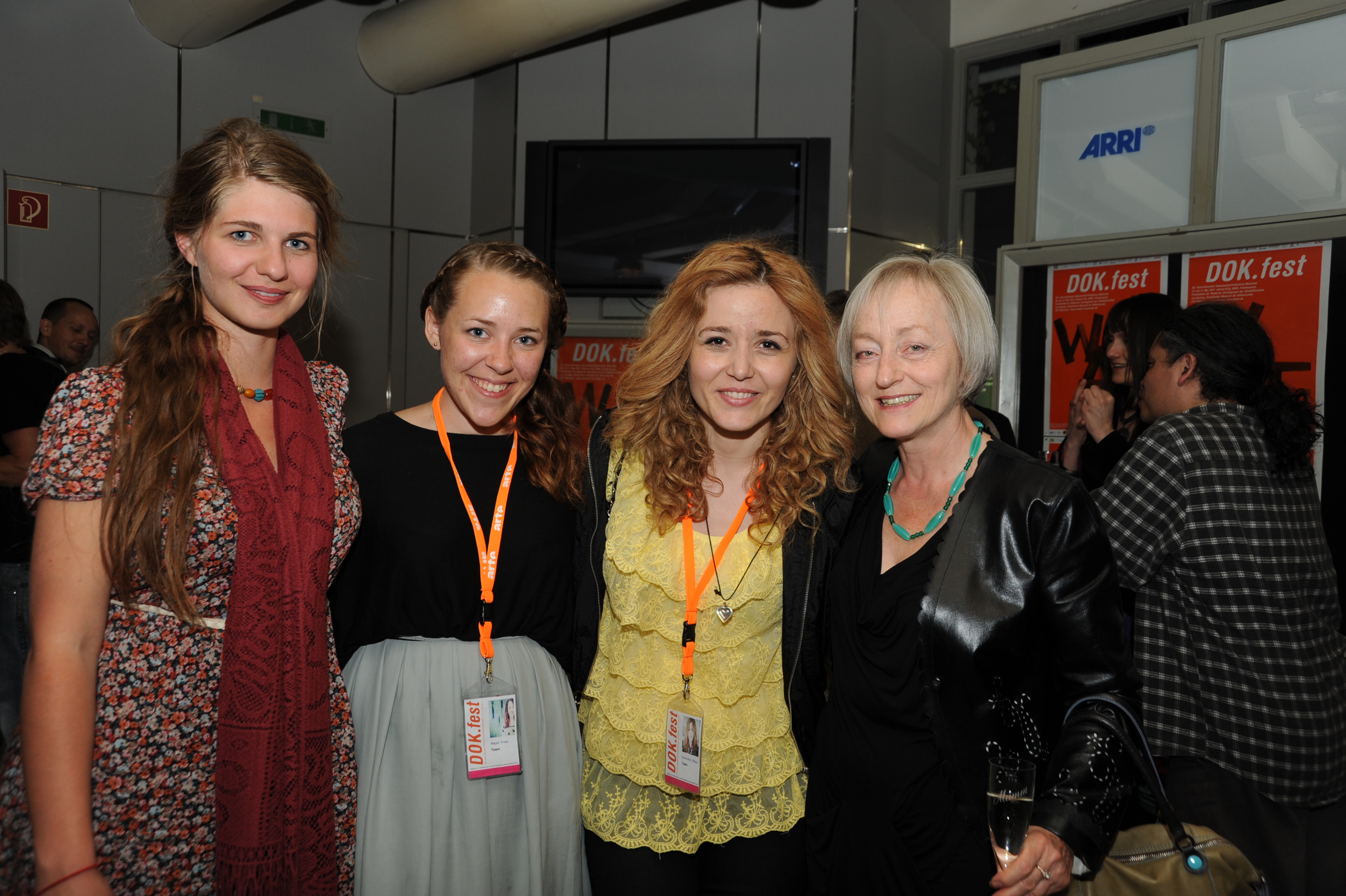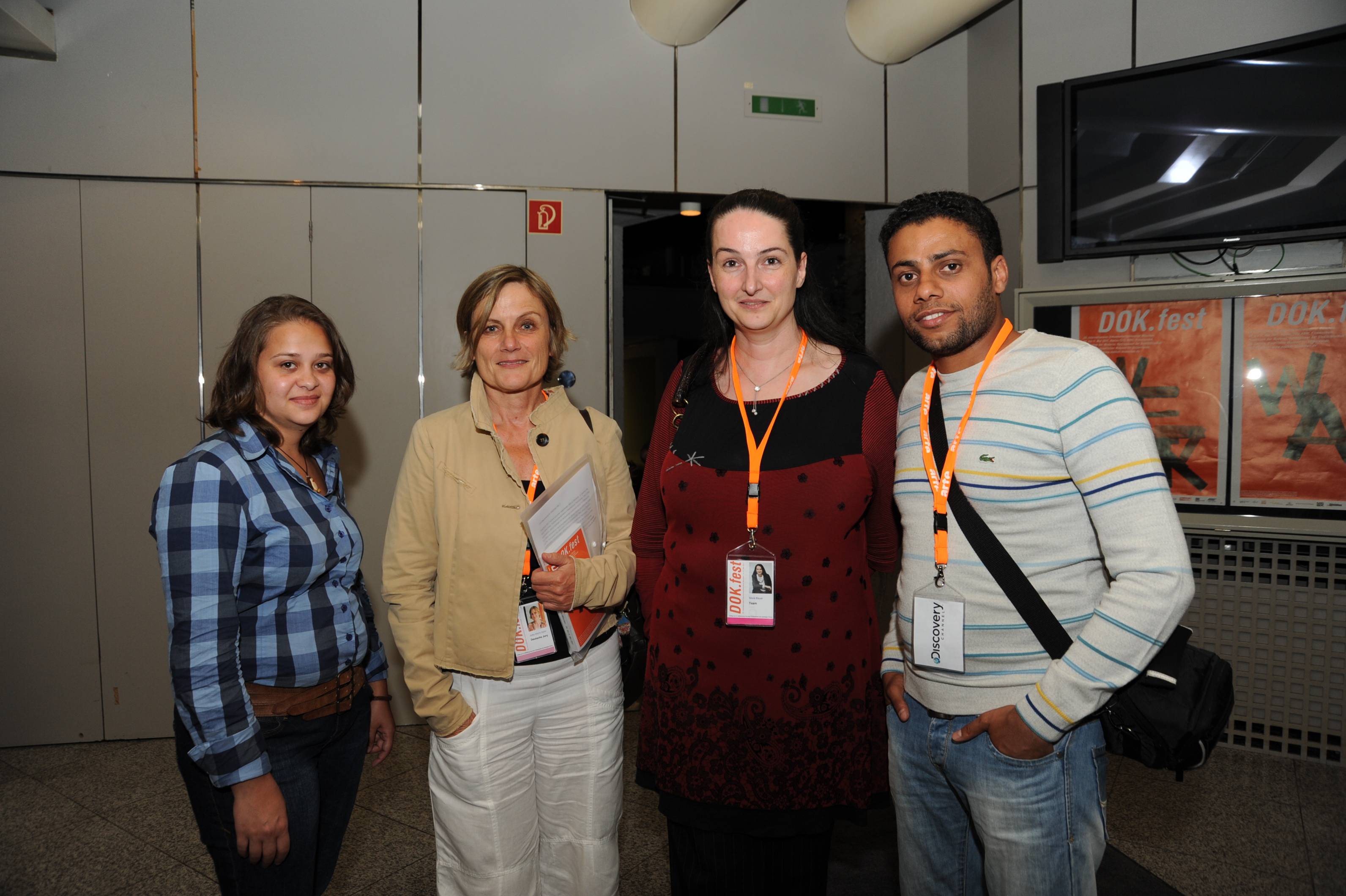 v.l.n.r. Clarissa Leopold (DOK.fest), Abigail Press (DOK.fest), Esmeralda Shkjau (Robert Bosch Stipendiatin) und Barbara Grokenberger (BLM) / Copyright DOK.fest - Maren Bornemann