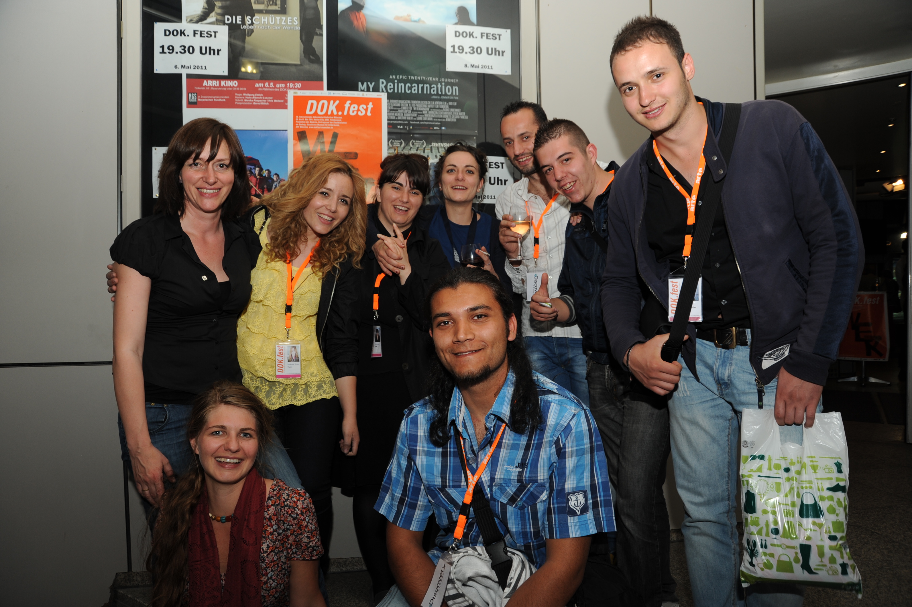 hinten 1.&2.v.l.: Micol Krause (DOK.fest) und Esmeralda Shkjau (Robert Bosch Stipendiatin) mit ihren Filmstudenten aus Albanien / Copyright DOK.fest - Maren Bornemann