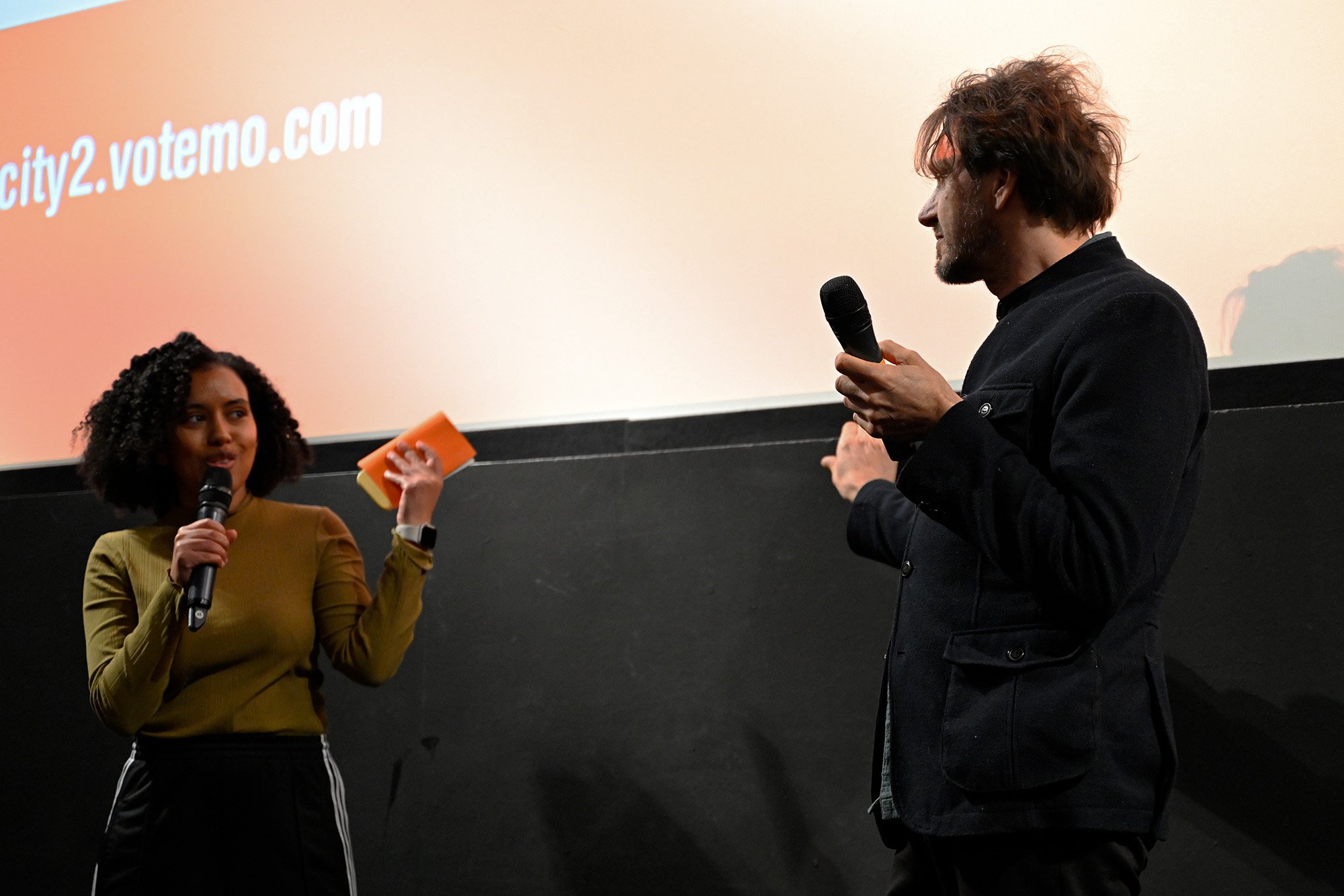 • Moderatorin Seggen Mikael und Filmemacher Igor Gerald Hauzenberger / Screening ON THE BORDER (c) DOK.fest München