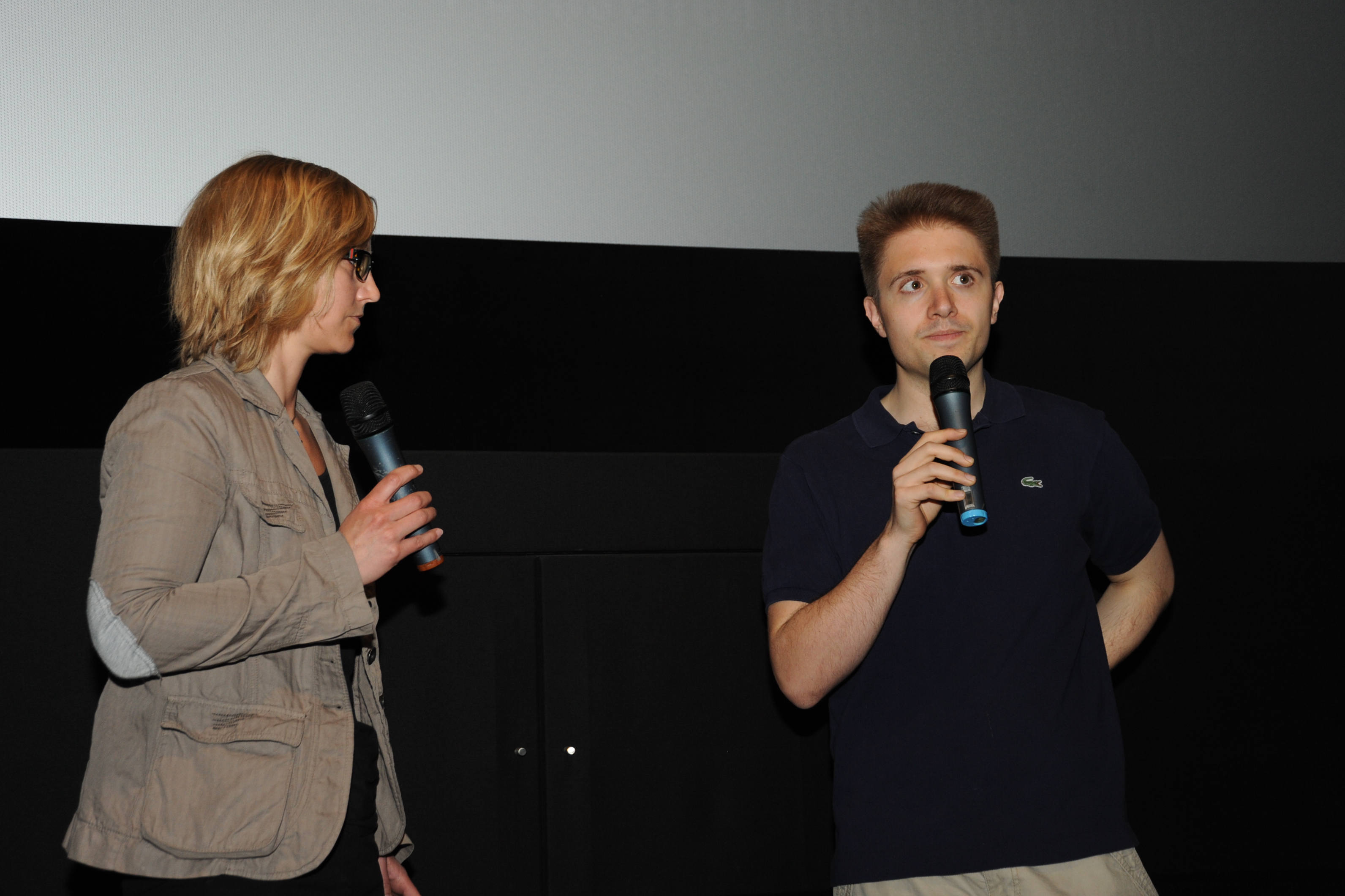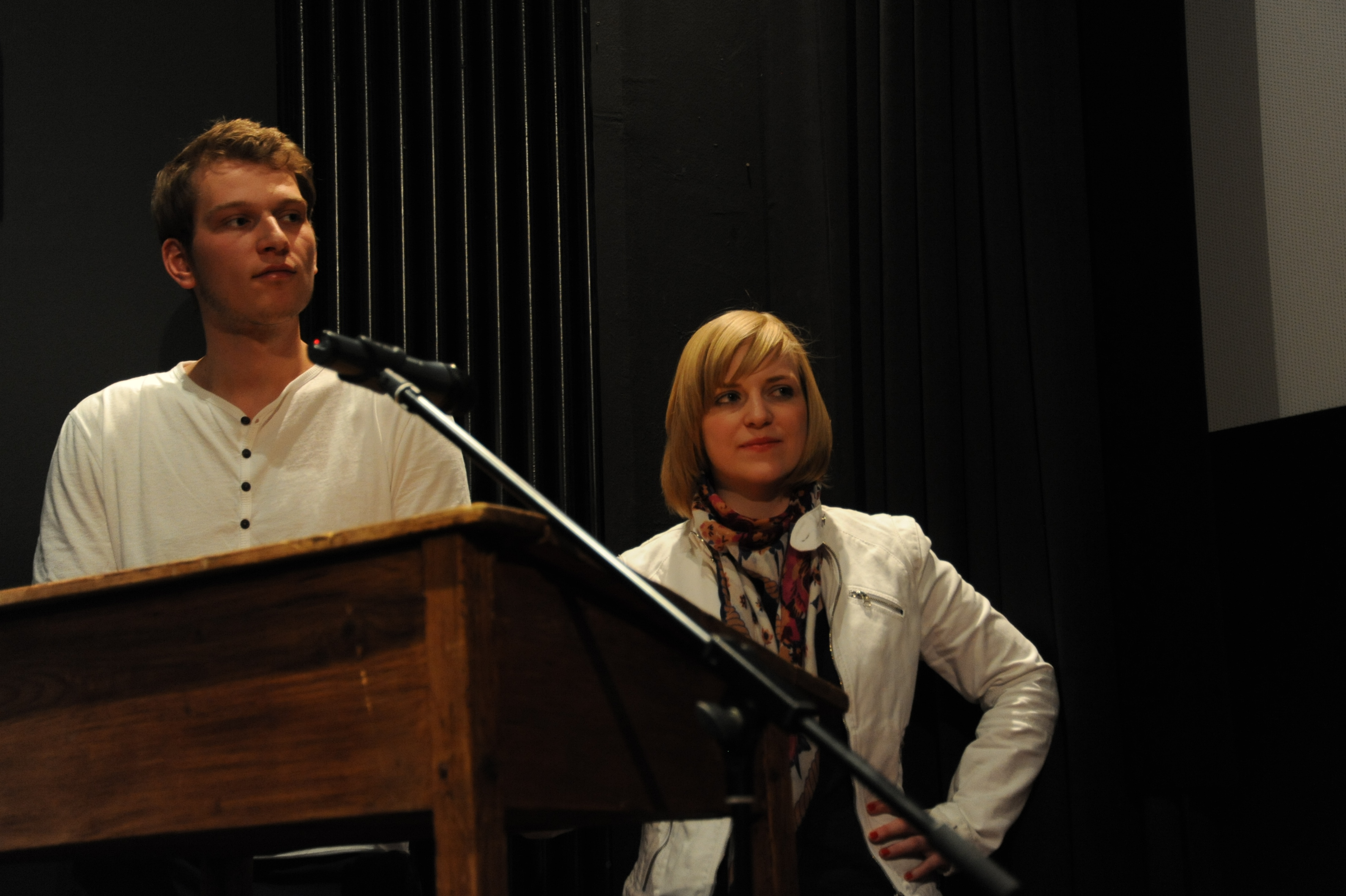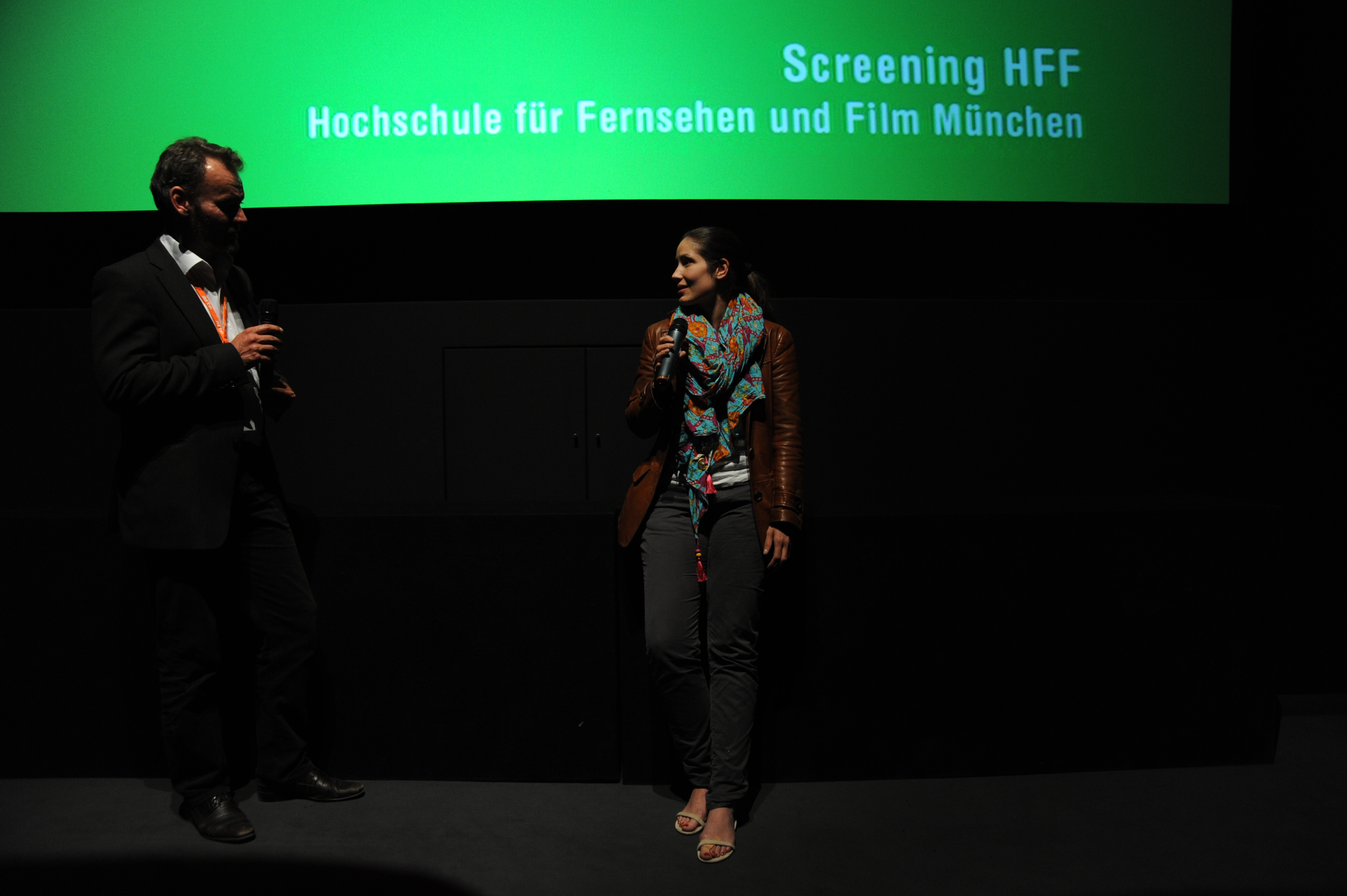Moderatorin Kathrin John (DOK.fest) und Regisseur Simon Weber (DAS EINE ZIEHT DAS ANDERE SO NACH) beim filmschool.forum HFF-Screening / Copyright DOK.fest - Maren Bornemann