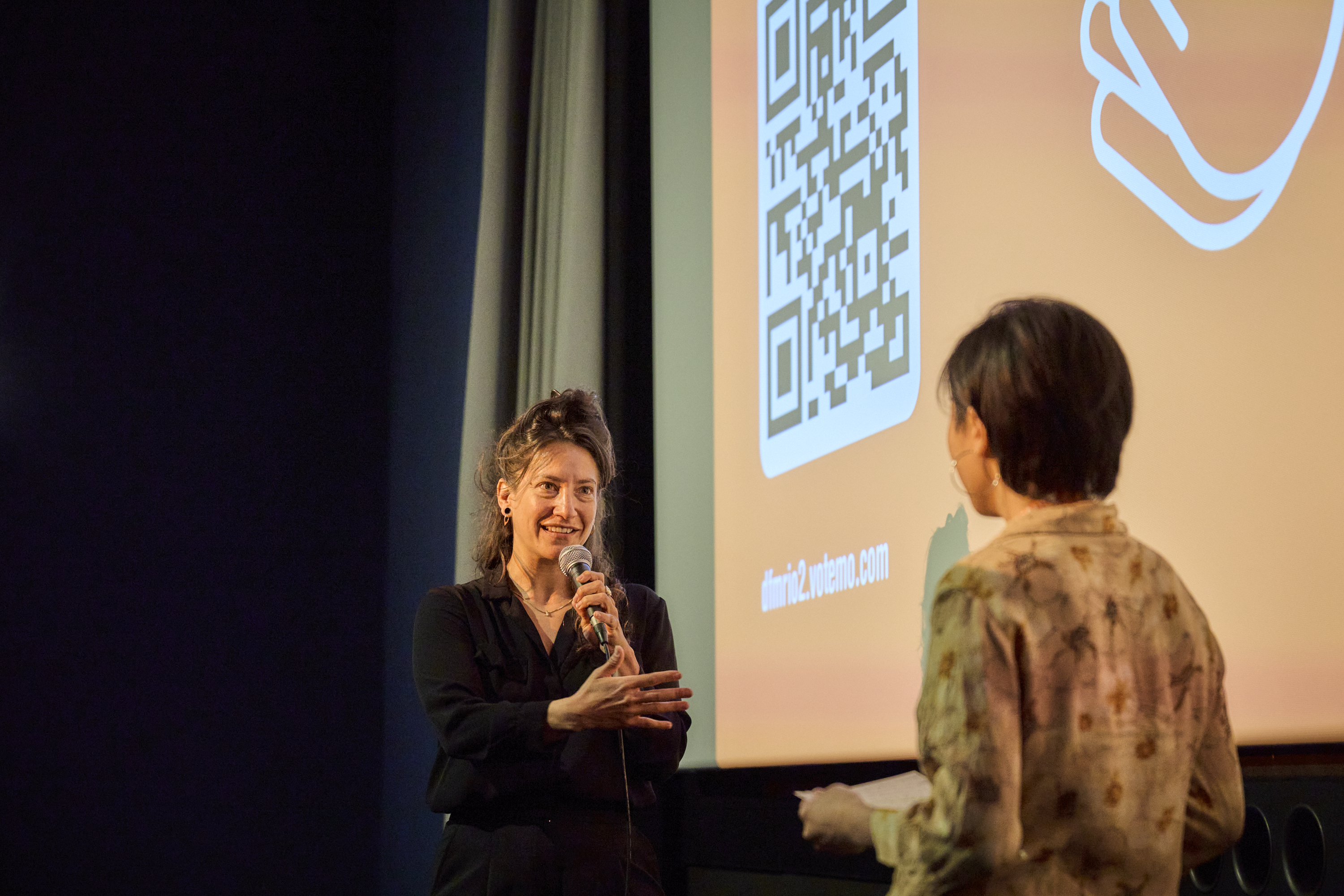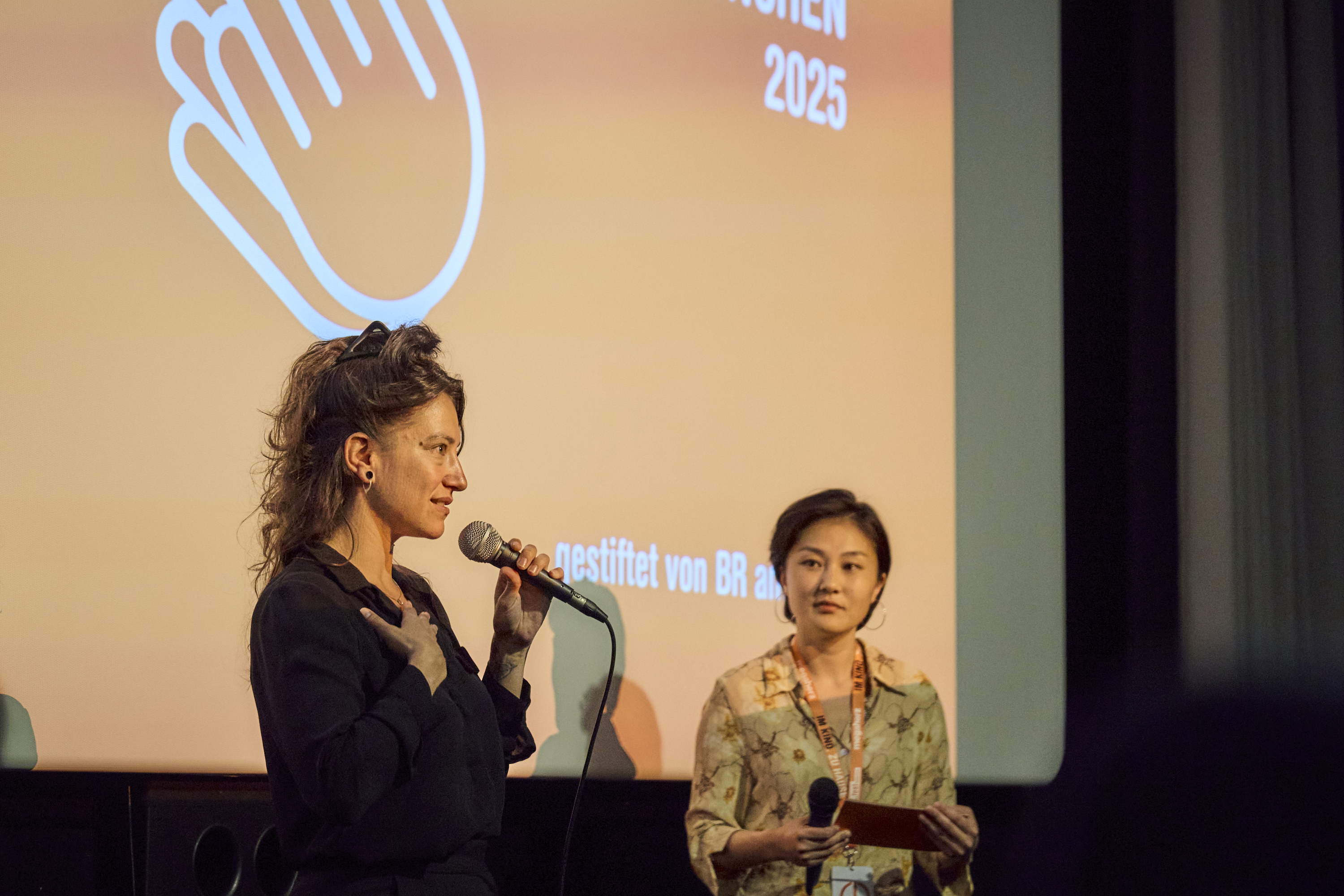 Filmemacherin Shakked Auerbach und Moderatorin Azem Bekturova / (c) Screening STRANGE BIRDS DOK.fest München 2025