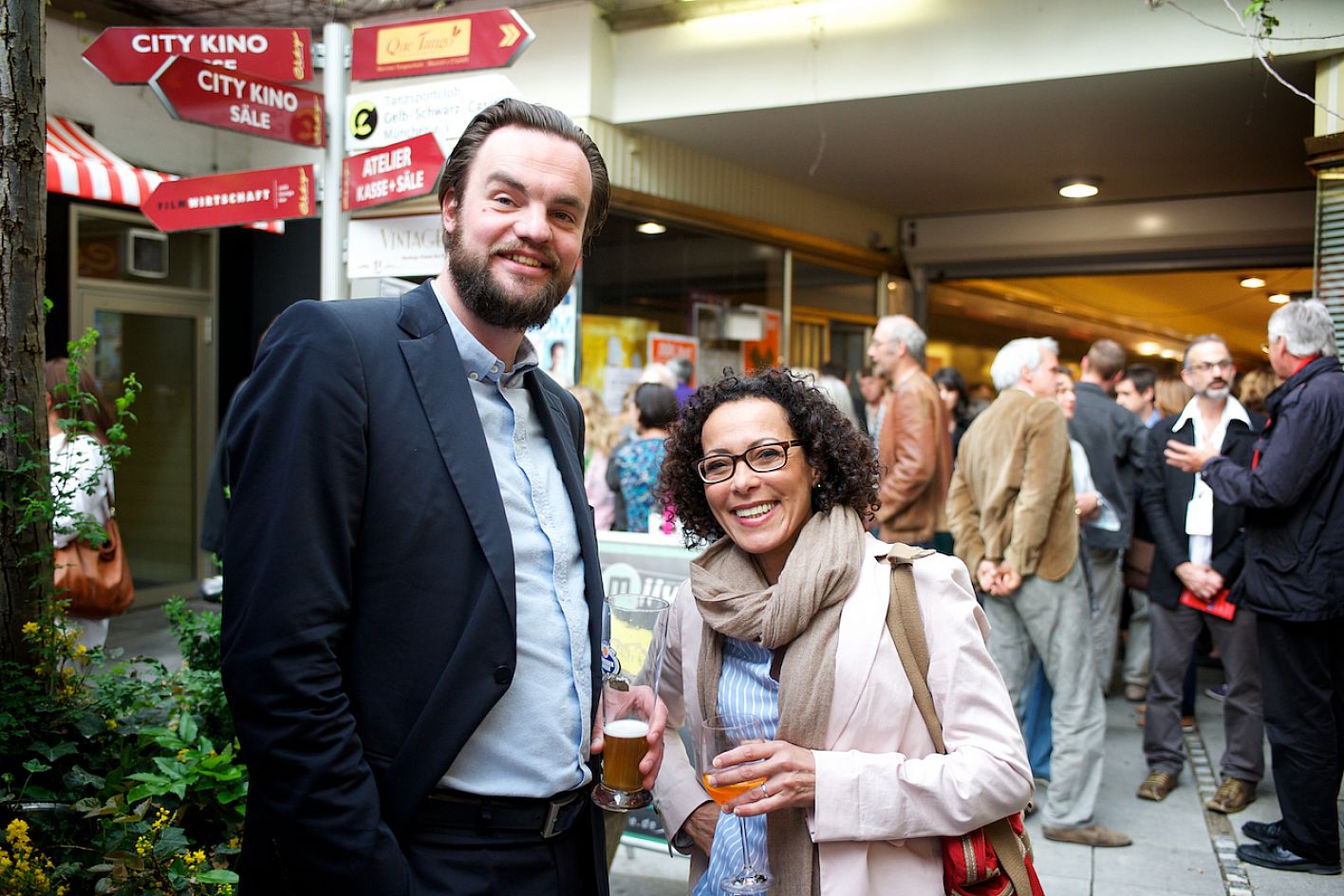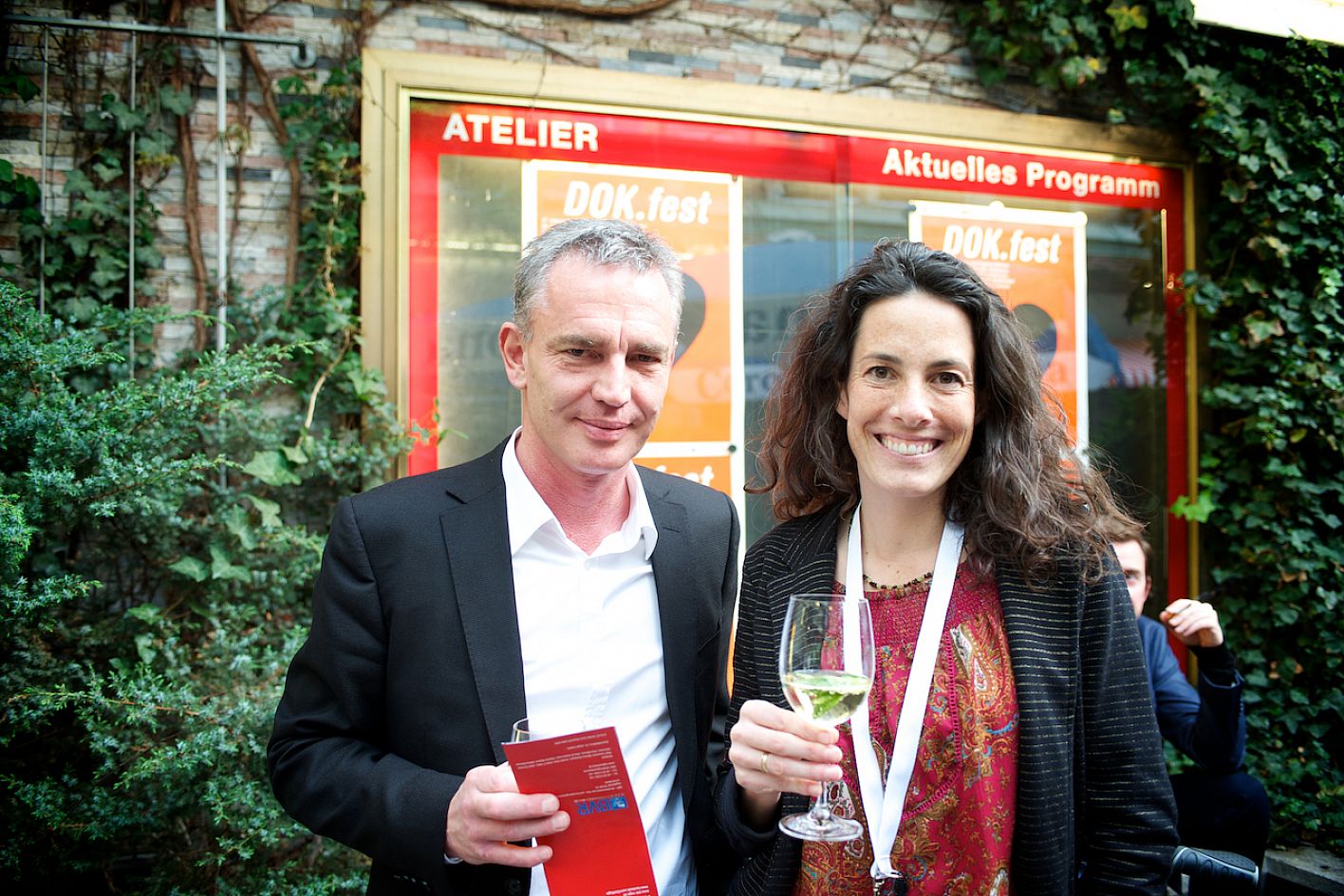 Eröffnung DOK.fest 2012, Innenhof City Kinos, v.l.n.r.: Susane Petz (AG DOK, Produzentin), Christoph Schwarz (Kulturreferat) / Copyright DOK.fest - Rainer Möller