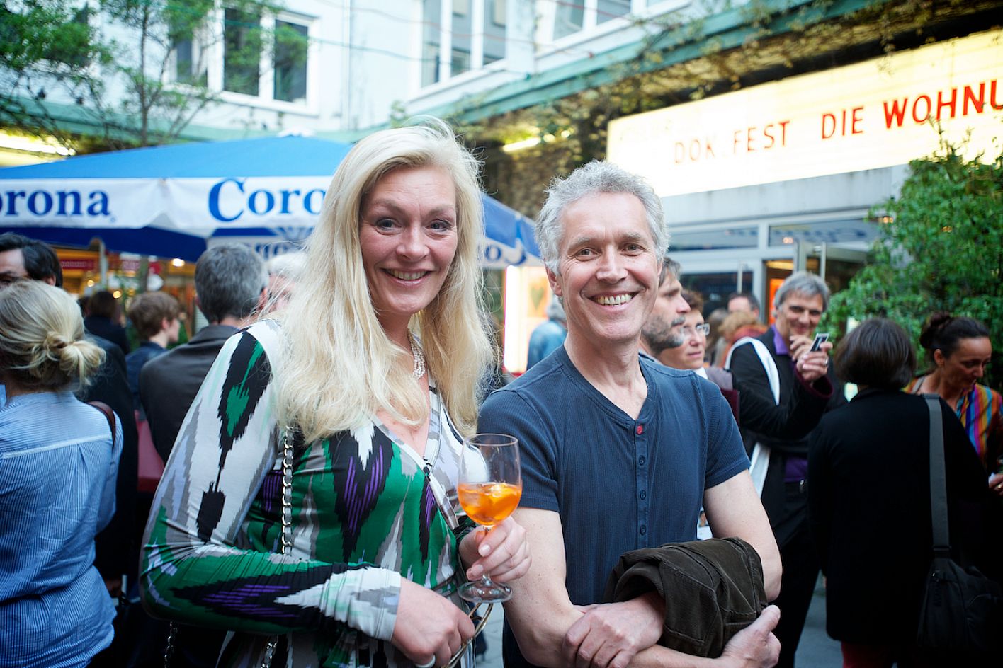 Eröffnung DOK.fest 2012, Innenhof City Kinos: Silke Kraus und Matti Bauer (Filmemacher) / Copyright DOK.fest - Rainer Möller
