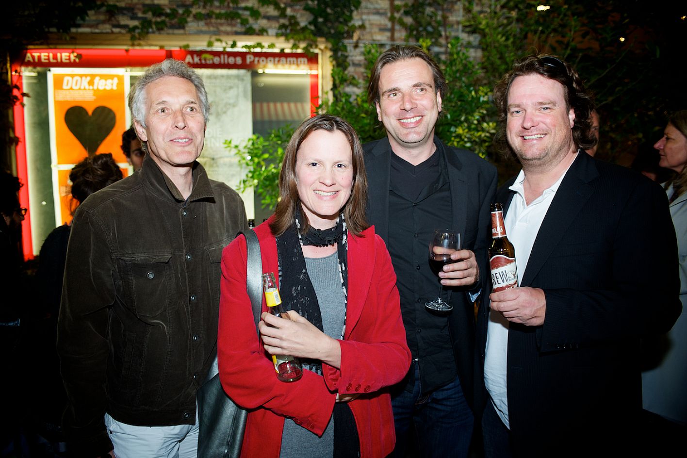 Eröffnung DOK.fest 2012, Innenhof City Kinos, Marcus Morlinghaus (DOK.fest), Maya Reichert (DOK.fest), Daniel Sponsel (Festivalleitung DOK.fest) und Michael Leitner (mhdk) / Copyright DOK.fest - Rainer Möller