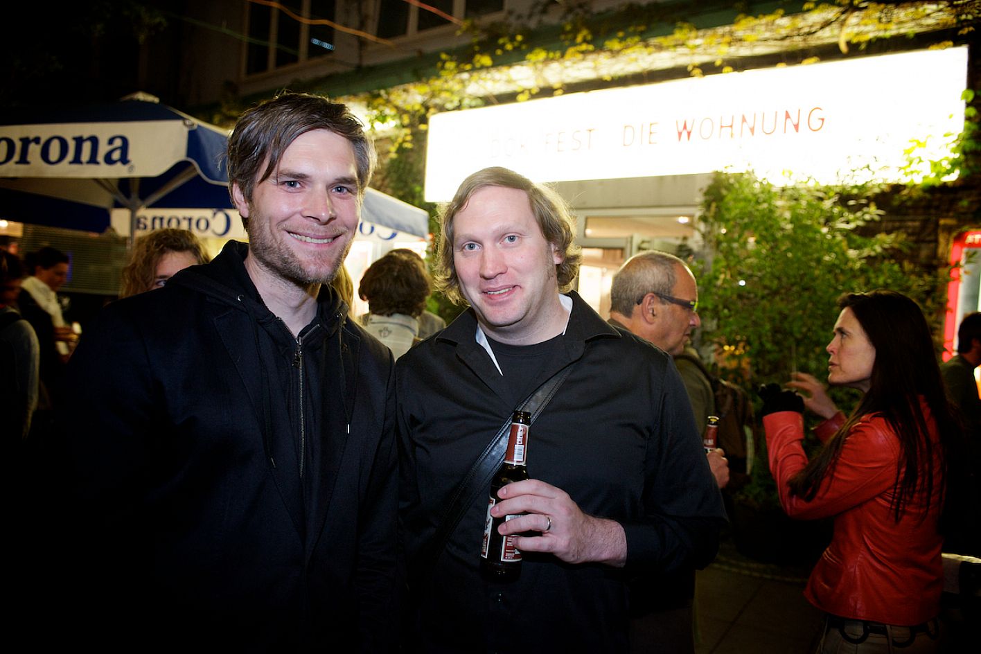 Eröffnung DOK.fest 2012, Innenhof City Kinos, v.l.n.r.: Sabine Kastius (BR), Martin Gessecker (Bildender Künstler) / Copyright DOK.fest - Rainer Möller