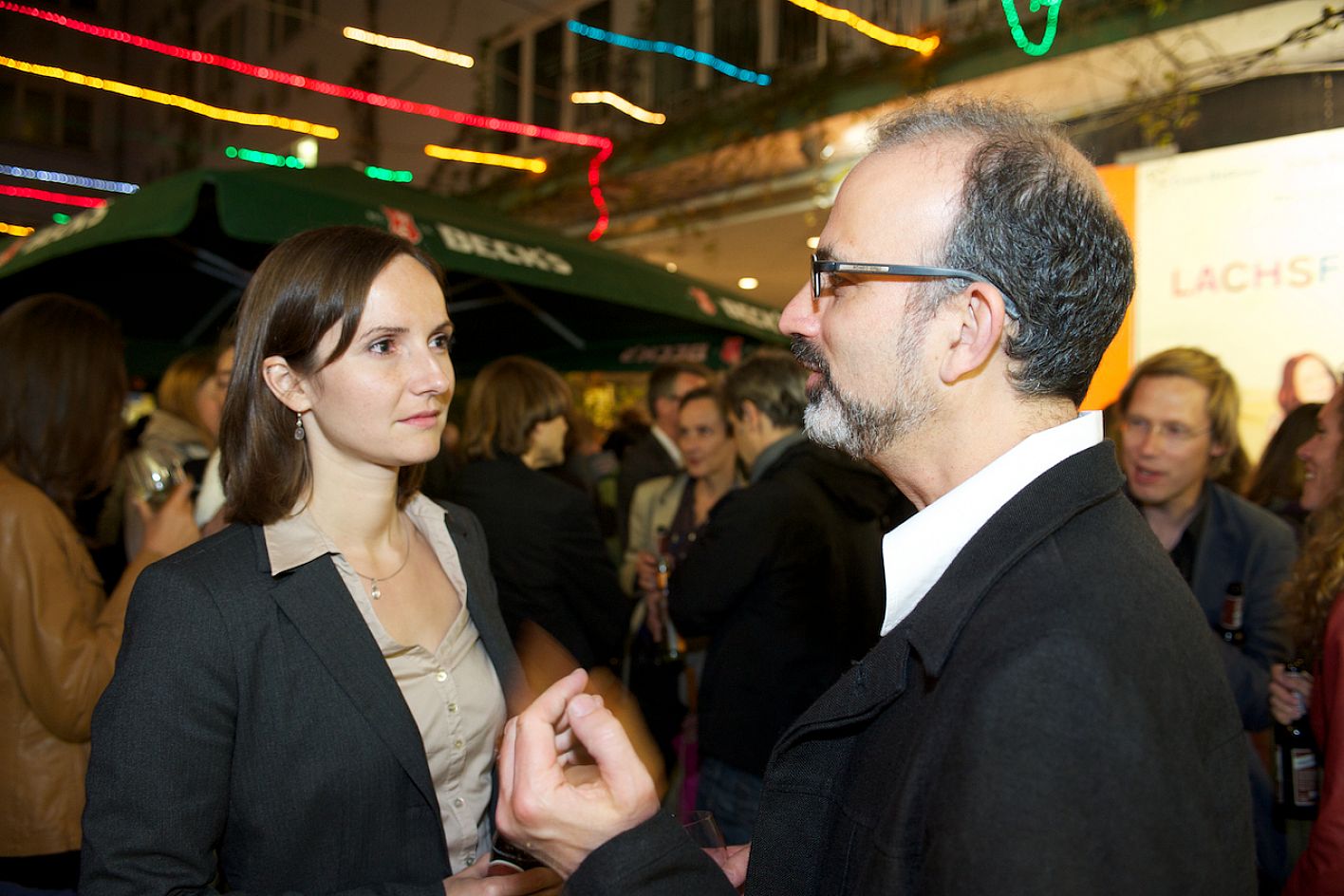 Eröffnung DOK.fest 2012, Innenhof City Kinos: Diana Iljine (Filmfest München Festivalleitung) und Daniel Sponsel (Festivalleitung DOK.fest) / Copyright DOK.fest - Rainer Möller