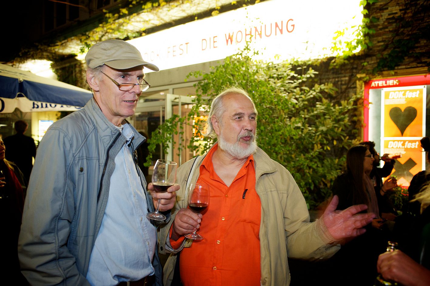 Eröffnung DOK.fest 2012, Innenhof City Kinos, Klaus Dexel (AG DOK) und Peter Gödel (Regisseur) / Copyright DOK.fest - Rainer Möller